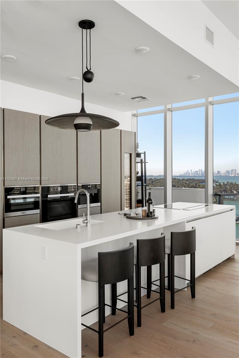 The Penthouse at Monaco Yacht Club redefines luxury living in Miami Beach. Accessible via a private elevator, this stunning residence boasts 13-foot ceilings and is bathed in natural light throughout. Its expansive 3, 085-square-foot wraparound terrace offers breathtaking 270-degree views of the Atlantic Ocean and the downtown skyline. Inside, the penthouse showcases wide oak plank flooring, sleek quartz countertops, and premium appliances, including a Miele induction cooktop, Sub-Zero refrigerator, wine wall, and built-in espresso machine. The generously sized primary suite features captivating intracoastal views, abundant closet space, and a luxurious oversized soaking tub. Residents enjoy exclusive amenities such as a fitness center, a rooftop pool with a jacuzzi, and a private marina.