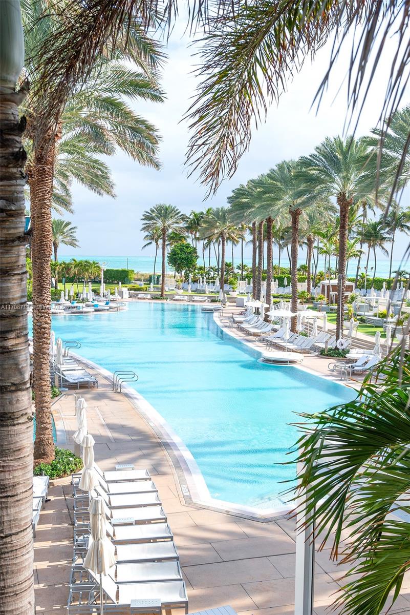Stunning studio on the 9th floor of the iconic Fontainebleau, offering breathtaking views of the hotel pool, beach & ocean. Recently remodeled and fully furnished, this turnkey unit provides effortless, vacation-style living. The unit features a king bed, a living area with a sleeper sofa, and a kitchenette equipped with a stovetop & small fridge. There is also a safe, iron equipment, coffee machine.