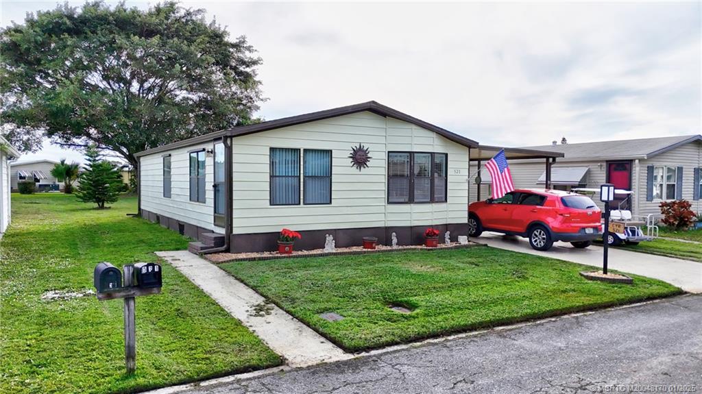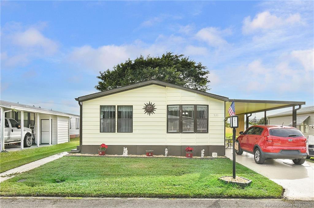 La Buona Vita is A Beautiful 55+ Community located in desirable Port St Lucie. Situated close to Shopping, Restaurants, Civic Center, Medical facilities and more. This unit Includes Land Share (NO LOT RENT). Nice 2 Bed/2 Bath Home, furnished and ready for your touches. Updated in 2020 includes PEX plumbing, Hot Water Heater, Roof, 10'X12' Shed, Stove, Refrigerator, Window Screens, and Flooring. Amenities include Community Pool, Clubhouse, Rv/Boat storage and More. Enjoy the low HOA of $197 and Own Share in the Community, $197/Month includes basic cable/Wifi and trash removal.