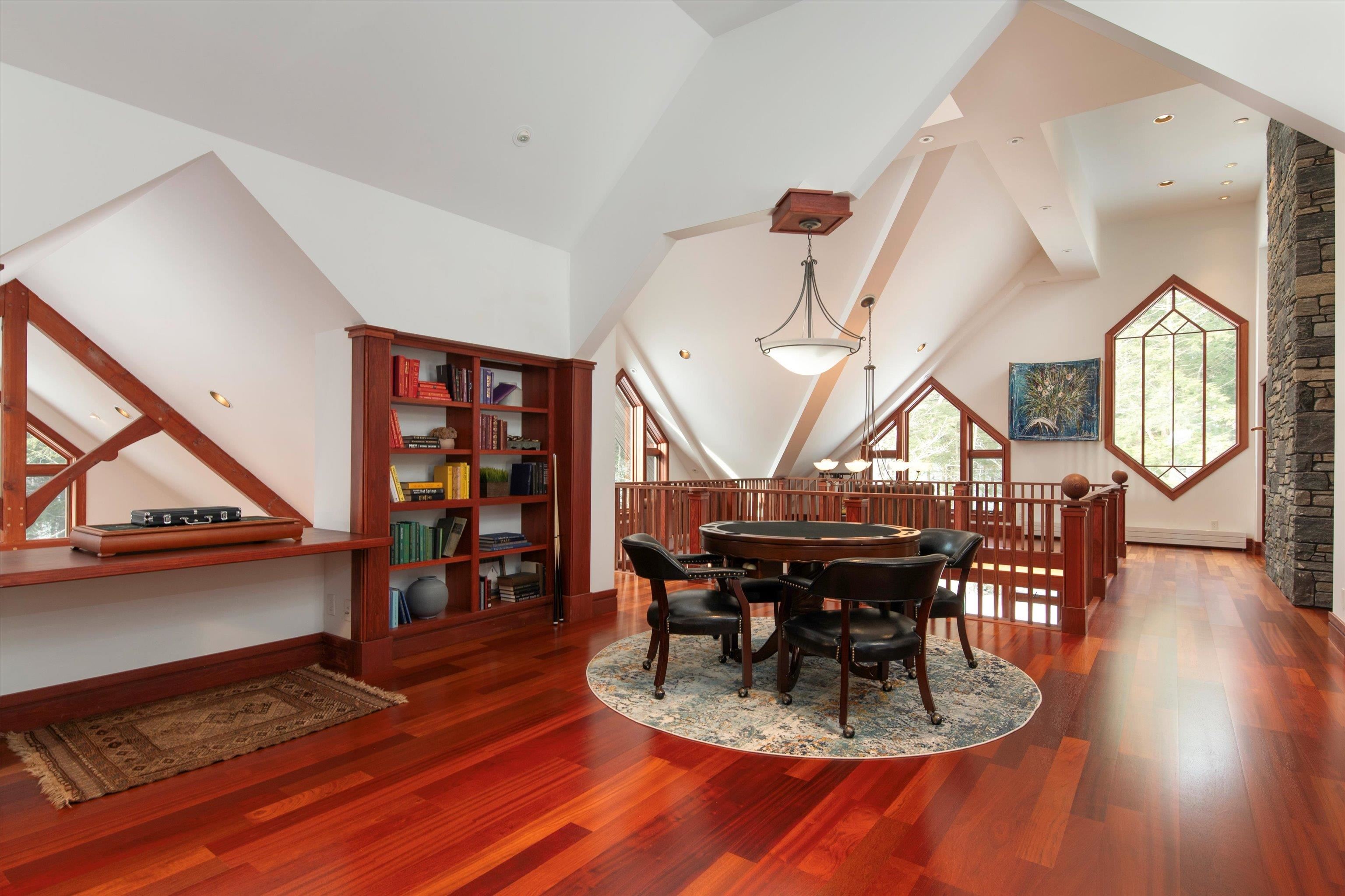 Welcome to Eureka House. This 7 bedroom Robert Carl Williams designed home is the ultimate in Vermont luxury and privacy. Enjoy unparalleled amenities like a 14-seat theater with stage, drive-through portico entrance, 2 story living room with gallery, 2 laundries, bedrooms are all en suite, and a 2 1/2-story carriage house with 3-car garage as well as living space above. The property is framed with beautiful stonework, patios, gardens, and a gently babbling stream. Exceptional craftsmanship coupled with the very finest materials makes this one of the nicest homes in the Hawk Resort community. Need to work remotely - the generous office suite provides what is needed to stay connected and affords some very nice views too. Game time is easy with a 2nd living room with billiards, an arcade game on the lower level, and a gaming/puzzle space on the top level. There's even a fun bunk room with a kid-sized bathroom. The carriage house is perfect for a private guest house or caretaker. The home has recently undergone system and mechanical upgrades to bring it up to date for easy living. Being sold fully finished makes it a true turn-key residence. Okemo Ski Resort is about 10 minutes away, Rutland Regional Airport is about 30 minutes away, and lots of hiking, biking, shopping, and fly fishing are close by. You must see it in person to appreciate this quality home in the Okemo Valley. Visit the Okemo real estate community today. Taxes are based on current town assessment.