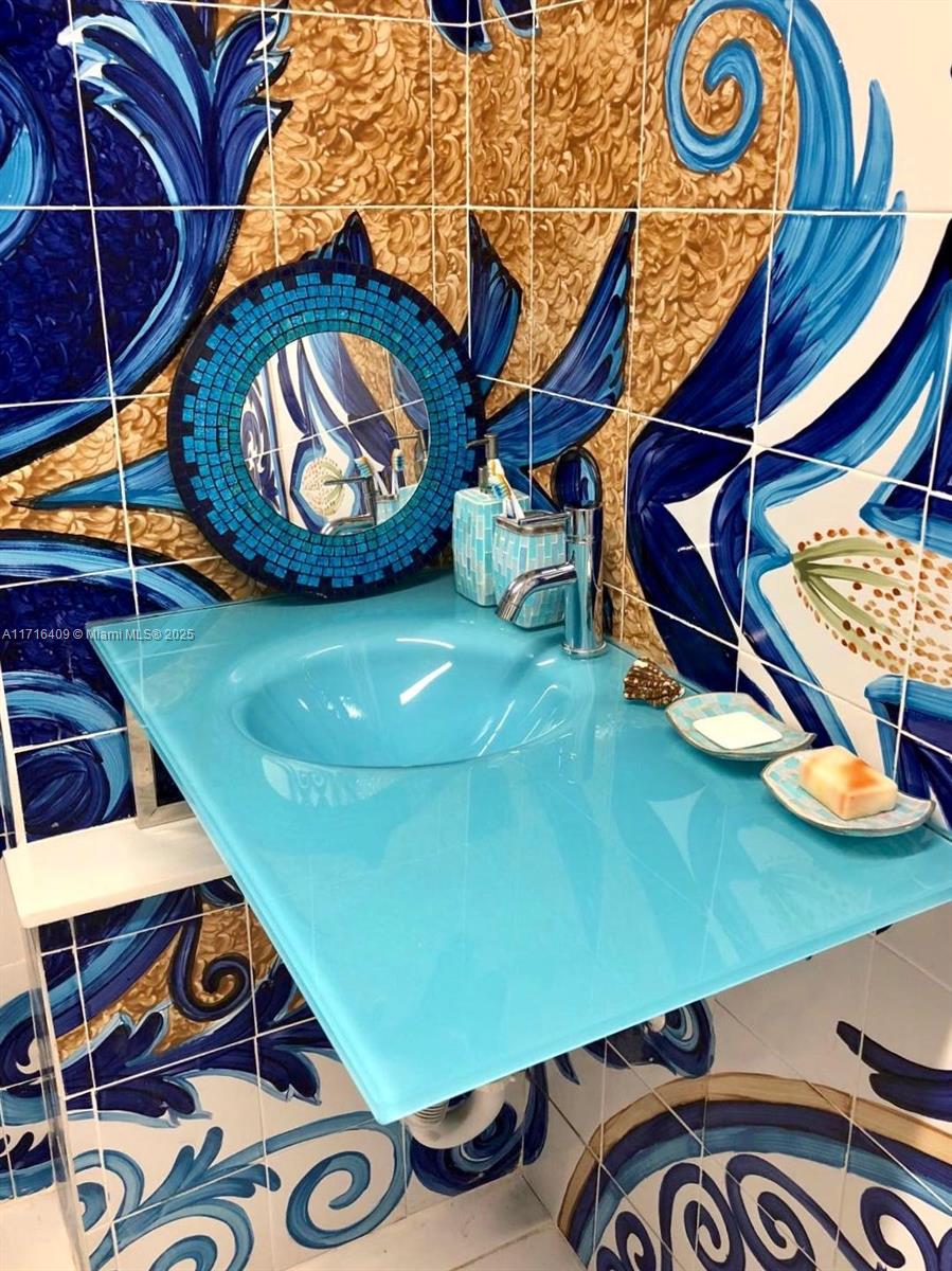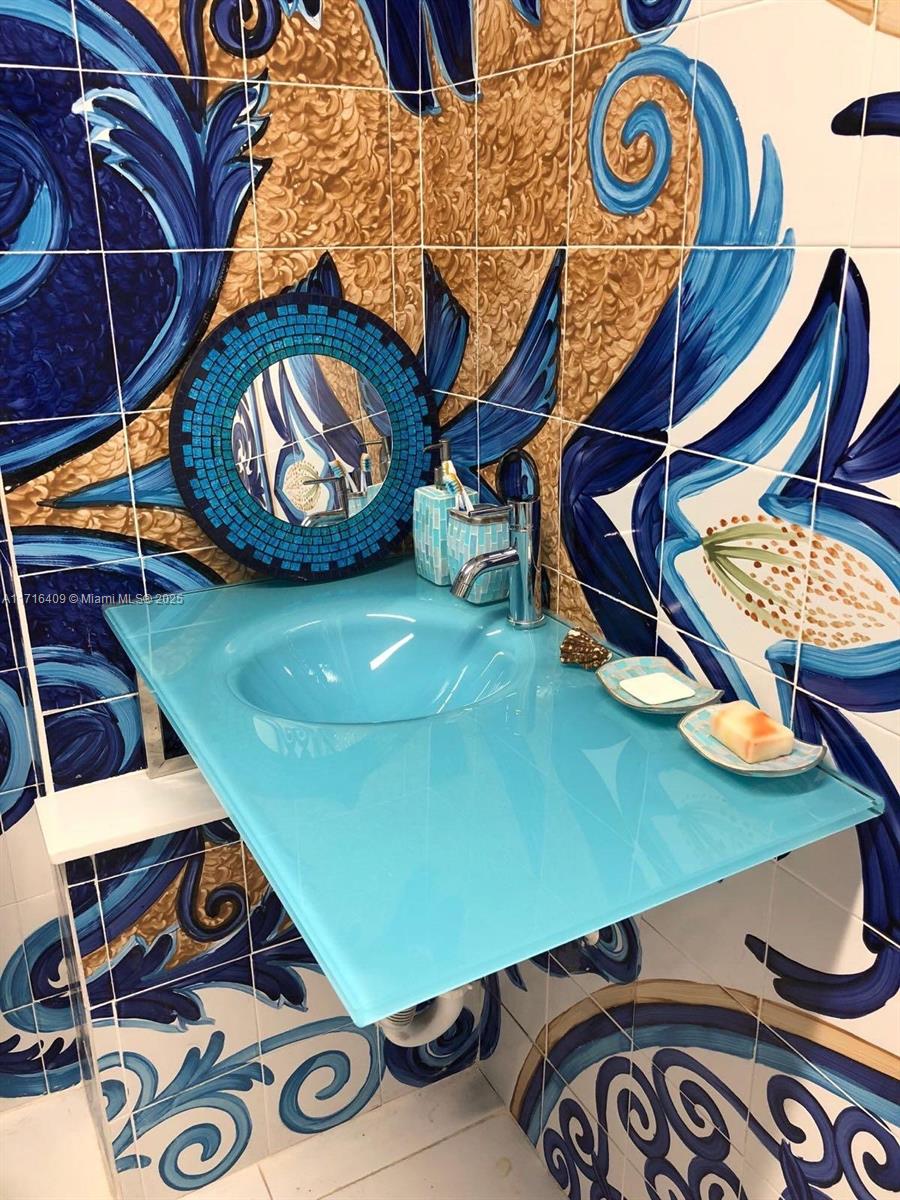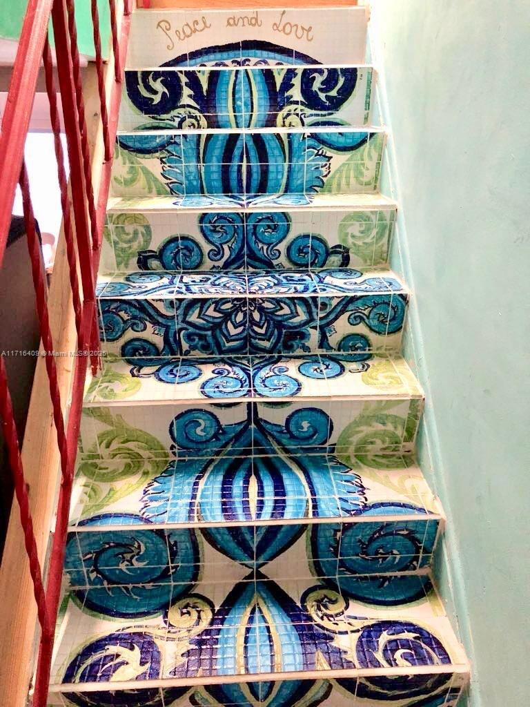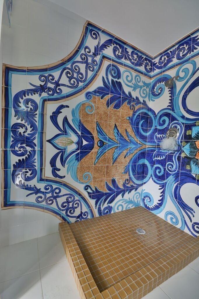 Own a living masterpiece crafted by renowned sculptor and painter Sergio Funari. This one-of-a-kind Miami duplex, renovated by Funari in 2015, is a true gallery in itself. The bathroom and shower feature hand-painted ceramic tiles, while a resurfaced 1930s bathtub, encased in custom mosaics, becomes a striking centerpiece in the bedroom. The terrace tiles evoke the charm of the Amalfi Coast, and the staircase showcases exquisite hand-painted details. A floating table suspended from the ceiling adds a bold artistic statement. Beyond its creative flair, the duplex offers modern upgrades, including a renovated kitchen, new floors, and breathtaking views of the pool and park. Additional amenities include two covered parking spots—exceptional feature in this building. The apt. is art to be lived in and admired.