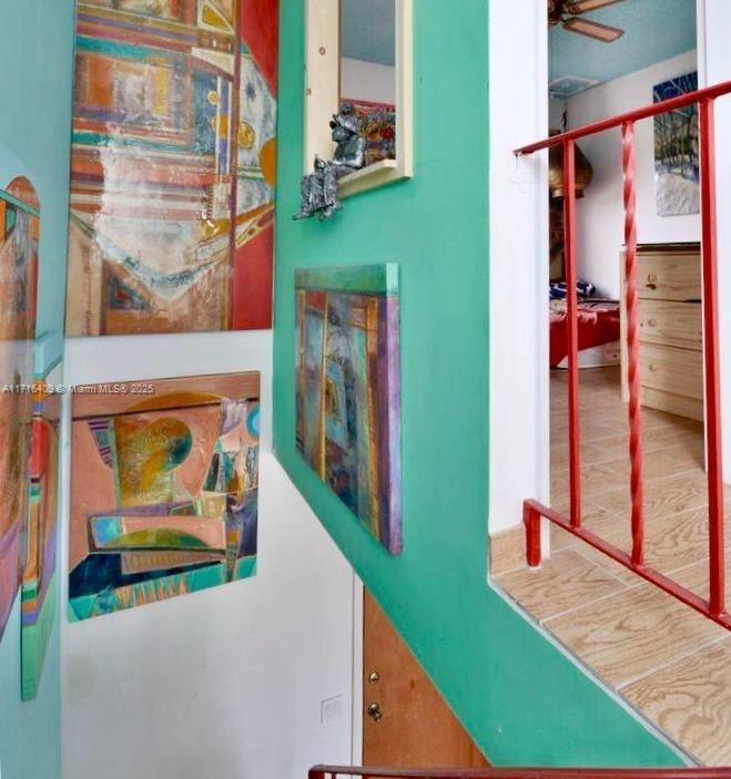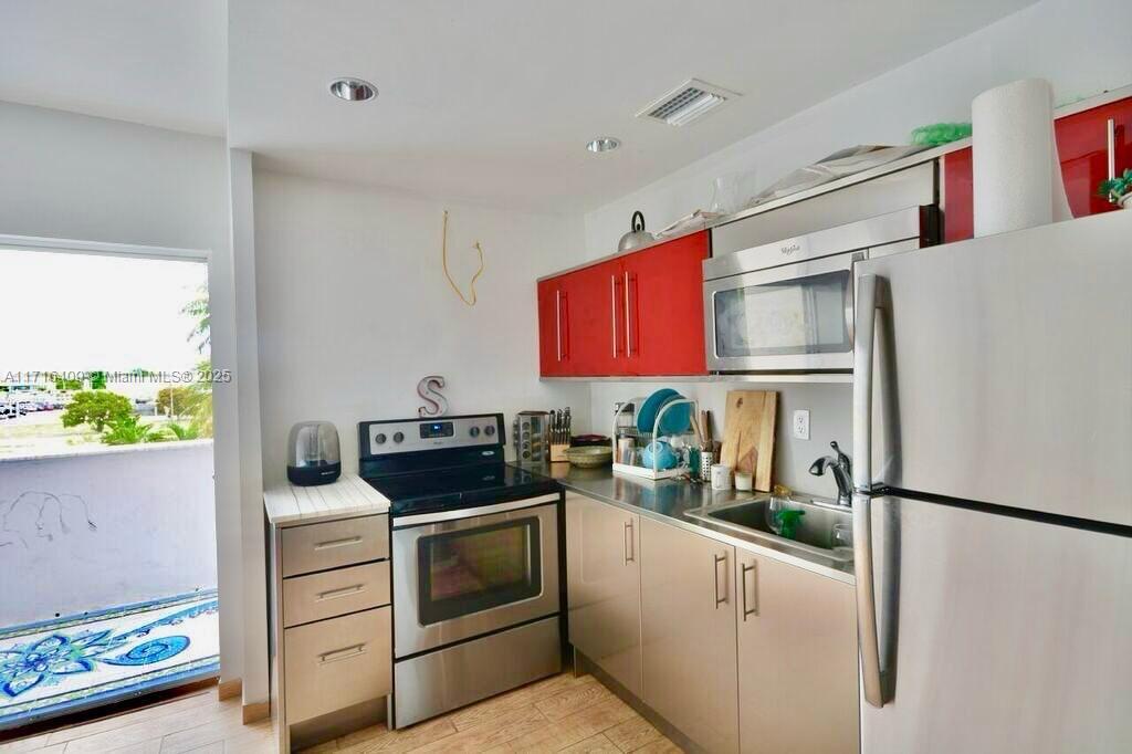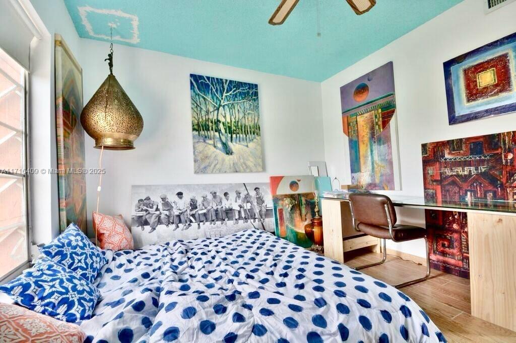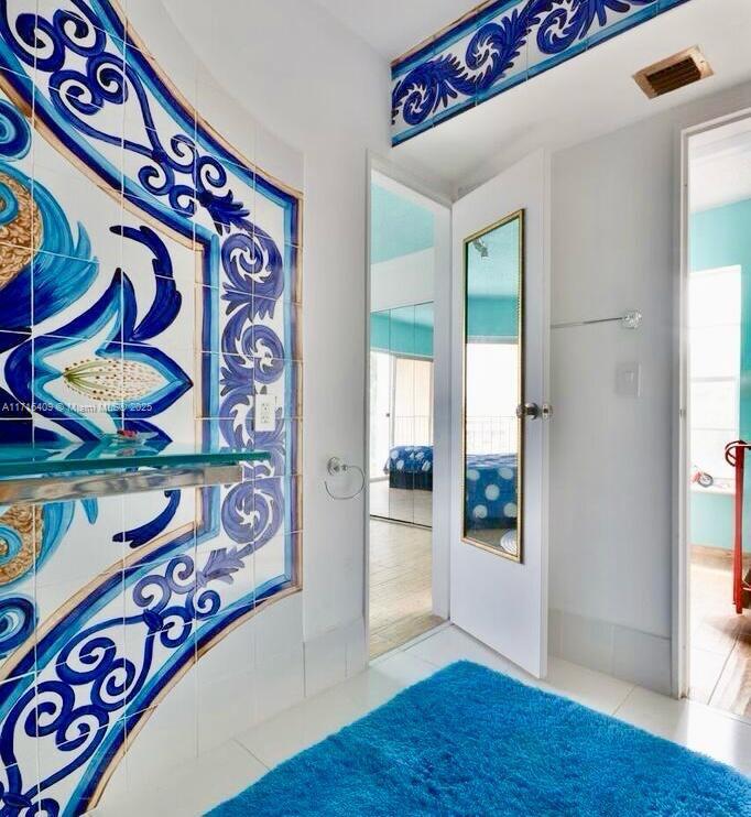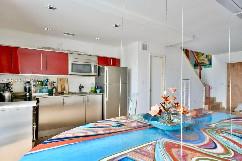 Own a living masterpiece crafted by renowned sculptor and painter Sergio Funari. This one-of-a-kind Miami duplex, renovated by Funari in 2015, is a true gallery in itself. The bathroom and shower feature hand-painted ceramic tiles, while a resurfaced 1930s bathtub, encased in custom mosaics, becomes a striking centerpiece in the bedroom. The terrace tiles evoke the charm of the Amalfi Coast, and the staircase showcases exquisite hand-painted details. A floating table suspended from the ceiling adds a bold artistic statement. Beyond its creative flair, the duplex offers modern upgrades, including a renovated kitchen, new floors, and breathtaking views of the pool and park. Additional amenities include two covered parking spots—exceptional feature in this building. The apt. is art to be lived in and admired.