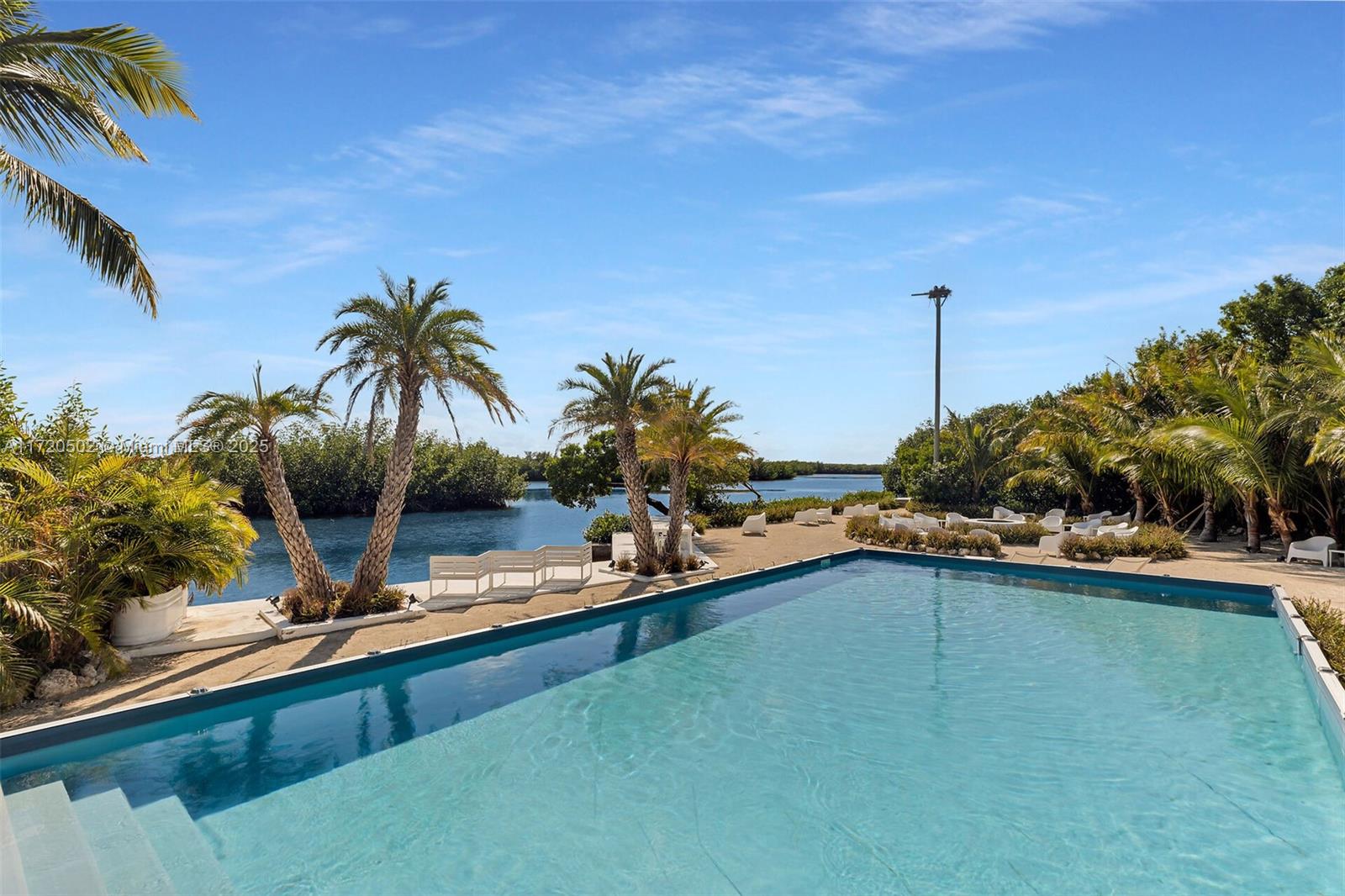 A Secluded Waterfront Paradise in the Heart of the Florida Keys. Step into a world of minimalistic elegance and tranquility at this one-of-a-kind coastal oasis. Tucked away on over an acre of lushly landscaped, private property stretching from highway to water, this architecturally unique home offers serene luxury and endless possibilities. Arrive via a tree-lined driveway to discover a striking three-story coastal retreat. Featuring four private en suite bedrooms, each with its separate entrance, the home is designed to provide privacy and relaxation for family and guests alike, great rental property for corporate retreat.
