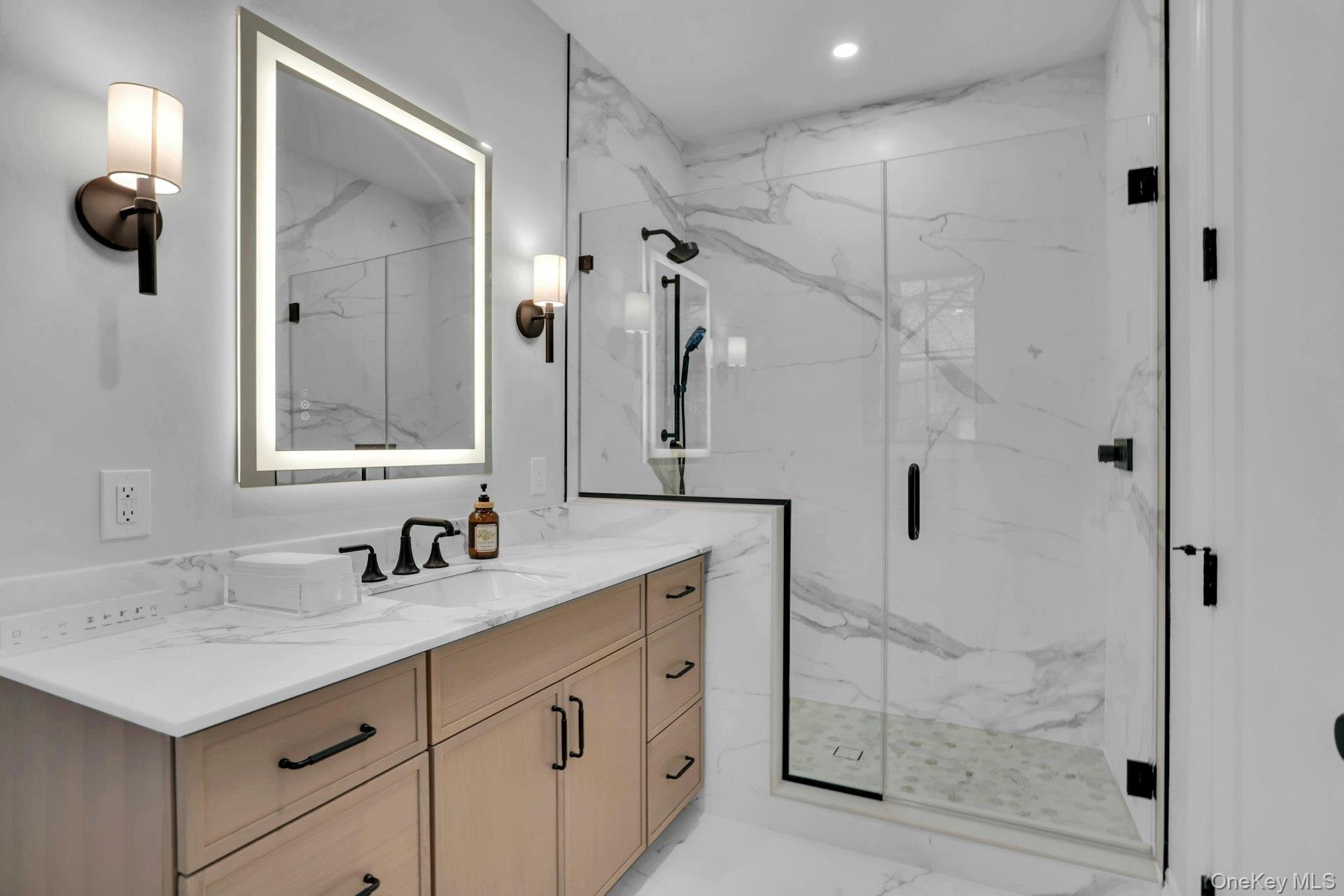 Welcome to Tiziana Estates at Dix Hills, staged and ready to show, this stunning new construction community combines elegance and modern innovation. These custom-built homes feature 9’ ceilings in living spaces, 10’ basement ceilings with steel I-beams for open layouts, and TJI floor joists for superior construction. The gourmet kitchens boast high-end custom cabinetry, Thermador appliances, and quartz countertops. At the same time, every bedroom includes an en suite bath with Kohler fixtures, large-format tiles, and spa-inspired details. Enjoy large-format white oak flooring, Andersen 400 Series windows, GAF roofing shingles, James Hardie siding, and cultured stone accents. Advanced systems include a Combi Navian Boiler, recirculating pumps for instant hot water, spray foam insulation, and hydronic forced hot air systems that share ducts with central AC. Located in the award-winning Half Hollow Hills School District, these homes offer unparalleled luxury and convenience. Schedule your private tour today!