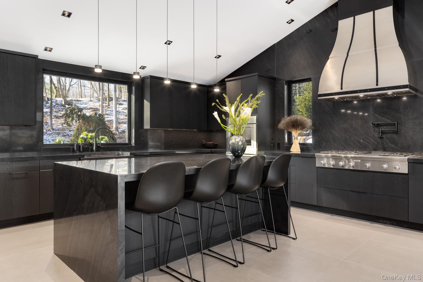 MAGNIFICENT CONTEMPORARY MASTERPIECE A Fully Renovated/Rebuilt Perfectly Scaled Sanctuary with Indoor Swimming Pool & Exquisite Gardens Inspired by Japanese Design, Just 1 Hour From Manhattan Elevated on a gentle rise and approached by a long private drive, this modern classic estate offers complete privacy and tranquility in a serene, wooded setting. Placed quietly in the company of tall, whispering trees this thoughtfully renovated home masterfully blends contemporary architecture with natural materials, creating warmth and a welcoming atmosphere throughout. Oversized floor-to-ceiling windows flood each room with natural light and frame stunning views of curated gardens inspired by traditional Japanese design, each vista composed like a living painting. Massive boulders and stone slabs—carefully placed throughout both the landscape and the home—create a sense of harmony from the first approach. The stone path leads to the front door and into a unique architectural oasis. Inside, soaring beamed ceilings and extensive custom millwork define the interiors, beginning with a gracious entry that opens to a generously proportioned living room centered on a monumental, two-story marble-clad fireplace. A formal dining room overlooks the gardens and connects seamlessly to the heart of the home: a striking, expansive kitchen ideal for intimate gatherings or large-scale entertaining. Anchored by a custom range hood and wrapped in dramatic black marble, the kitchen features professional-grade appliances and sleek cabinetry that merge function with sculptural design. The principal bedroom suite is perfectly positioned on the main level for effortless living, complete with a beautiful wood-burning fireplace. The lower level offers two additional guest bedrooms, a full kitchen, and a private living room—well separated yet connected by a chic stairway bathed in natural light. The “pièce de résistance” a stunning 60-foot indoor heated lap pool with jets and a private sauna, housed in a contemporary pavilion with walls of glass on three sides and an illuminated ceiling. Sliding doors open to an expansive stone terrace accented with sculptural boulders, an ideal setting for alfresco entertaining or quiet reflection. Each window throughout the home was designed to frame artful views into the surrounding landscape—gardens deeply influenced by Japanese aesthetics. From winding stone paths to a hand-built stream and solid stone bridge, every element is shaped to evoke calm and contemplation. Designed for low maintenance, the garden becomes both sanctuary and spectacle—inviting moments of stillness, beauty, and connection to nature. The property is bordered by two protected preserves—the Goldfine Preserve and the Hale Ravine—offering direct access to peaceful woodlands and scenic trails. Whether entertaining guests or embracing solitude, this expertly engineered, move-in ready home delivers a lifestyle of elegance, privacy, and wellness. Located just minutes from Bedford Village, Pound Ridge, Katonah, and North Salem—and only an hour from Manhattan—this is a rare opportunity to experience design and nature in perfect harmony.