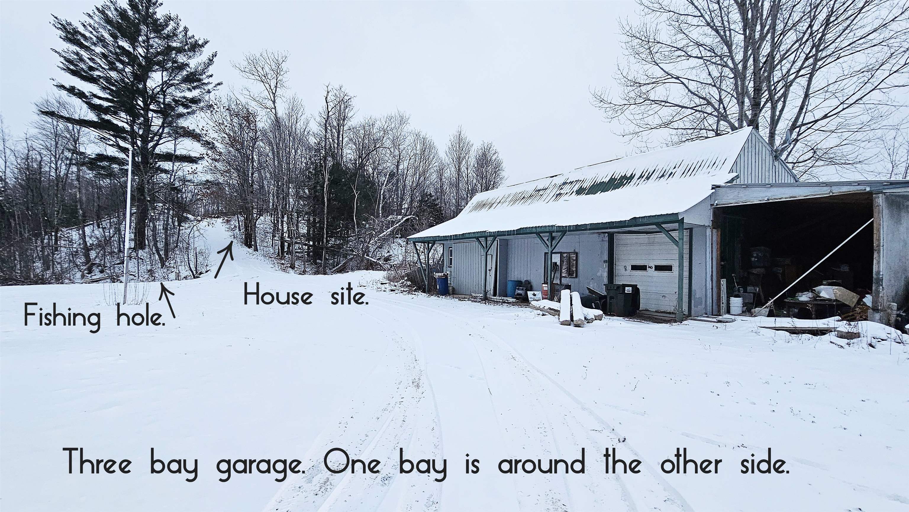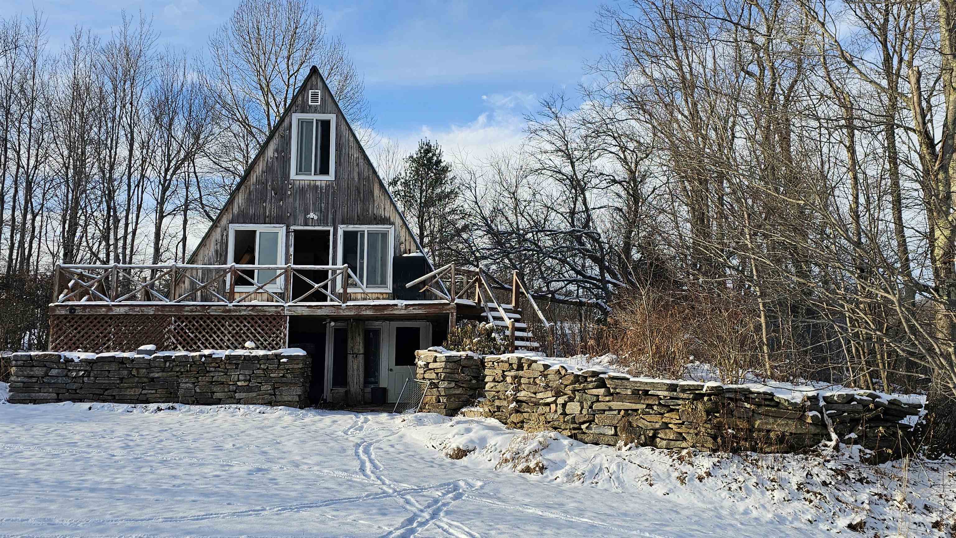 Breathtaking far range views of the Green Mountain National Forest! Absolutely stunning views from this lot that sits up high. Renovate this A-frame home or tear down and build new. If building new, you could potentially re-use the current foundation and already have well, septic, electricity, driveway, and a three car detached garage on site. This property is zoned both residential and commercial. The garage is at road level and used to be a fully functional mechanic's garage with a (unpermitted) accessory apartment above. The house rests up on a plateau totally obscured from the road offering immense privacy. There is a large lawn to enjoy outdoor activities and a small stream with fishing hole at the end of the driveway that is home to brook trout. A new home could be sited in the same location or elsewhere to maximize views. Coveted location on a peaceful country road with friendly neighbors. Lots of hiking, biking, and recreation in the area. Sugarbush and Mad River Glen ski areas are roughly 11-18 miles away. The charming towns of Bristol and Middlebury are 6-17 miles with nice shopping and dining options while bustling Burlington is 50 minutes. The Burlington Airport makes this an easy place to fly to as a vacation home or ski rental. High speed internet and good AT&T cell service are available so working from home can be a nice option on snowy days. Mt. Abe High School! An absolutely magical property with spectacular views wherever you look or drive around the area!