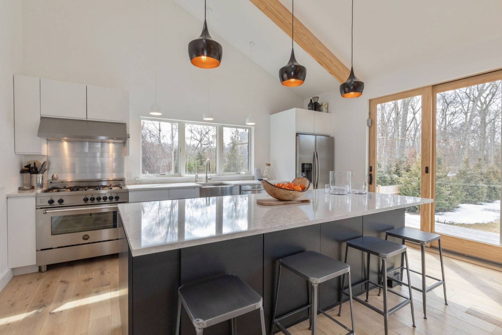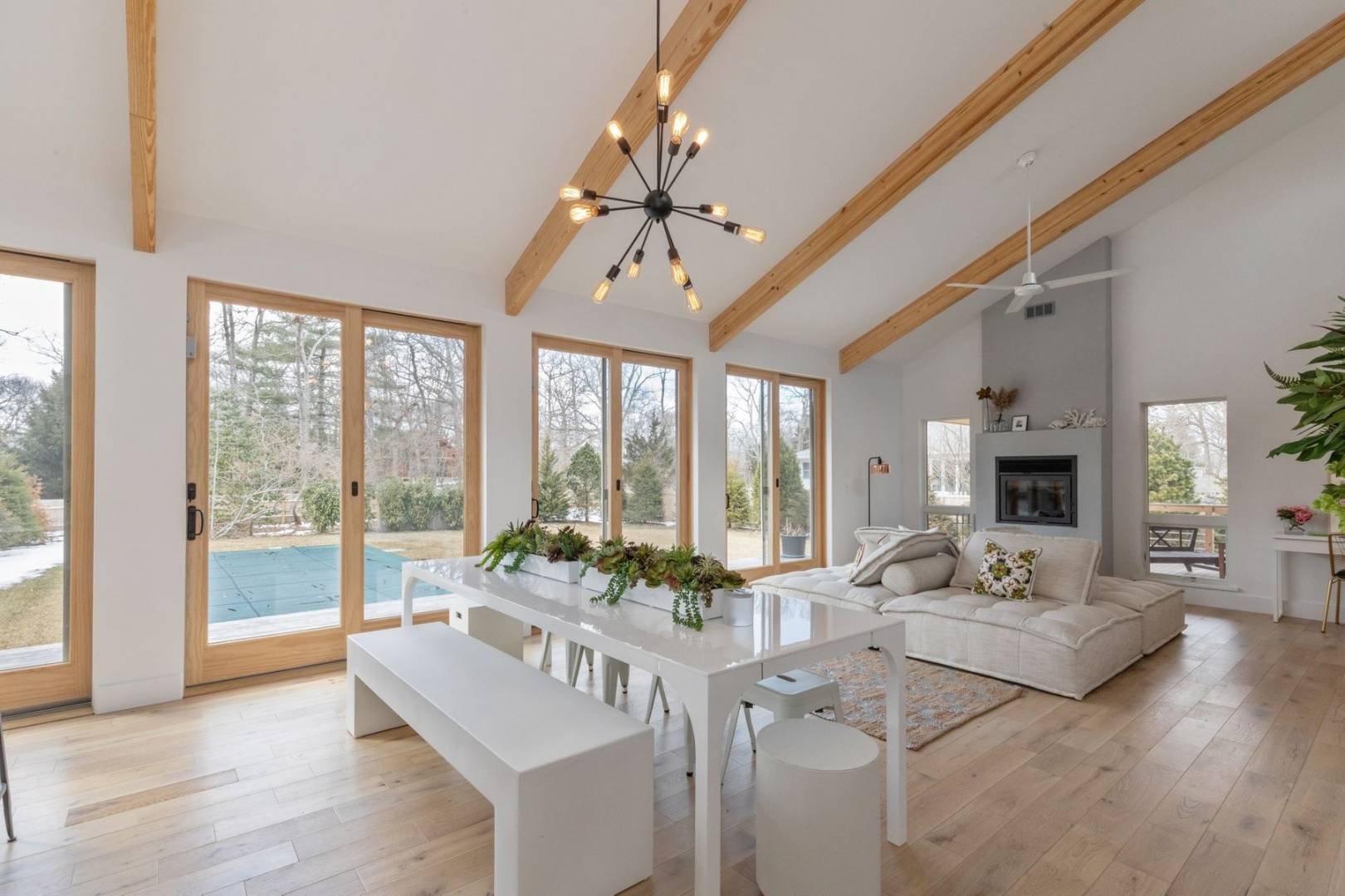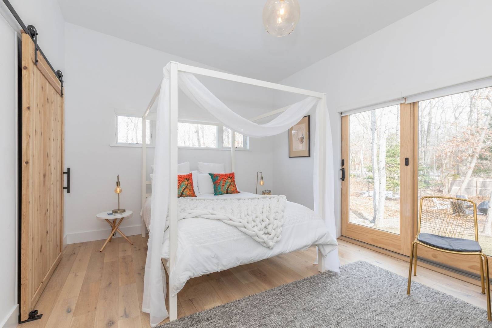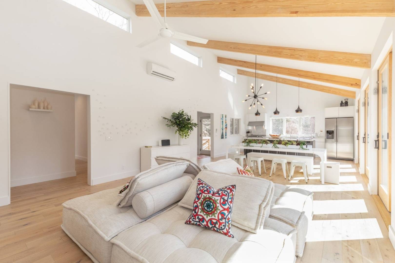 The immaculate East Hampton four bedroom modern eco home was built in 2018 and has been stylishly furnished throughout in order to offer one very cool summer rental. This stunning and light flooded house boasts a spacious open concept living room/kitchen that features a wall of glass doors overlooking a garden, lawn and heated Gunite pool. The house has four large en suite bedrooms and a huge entertainment/TV room separate from the main living room/kitchen area. There is ample outdoor decking as well as a covered outdoor sitting room that connects the indoor and outdoor living spaces seamlessly. On a quiet street, just a stones throw from the fabulous Clearwater Beach Community with its own lifeguard, playground and pavilion. Conveniently, just a few minutes drive, you will also find several great waterfront restaurants and bars as well as several wonderful local Delis. Close to the Town of East Hampton and Amagansett and their ocean beaches make this an ideally located place to spend your summer in the Hamptons.