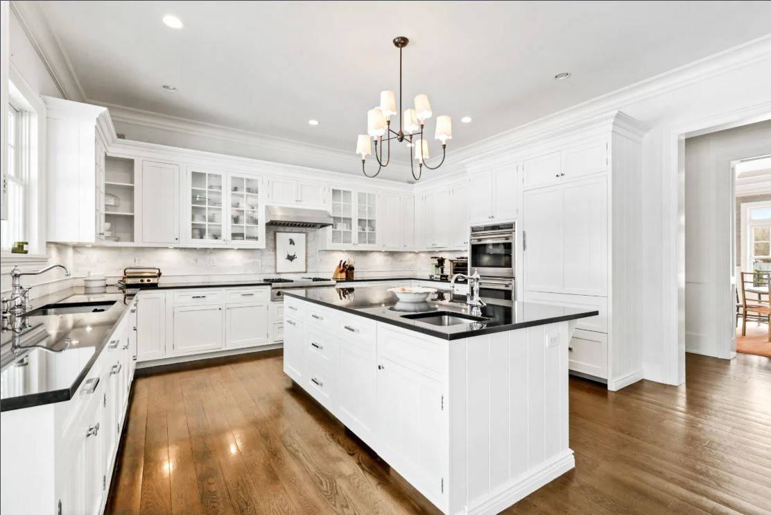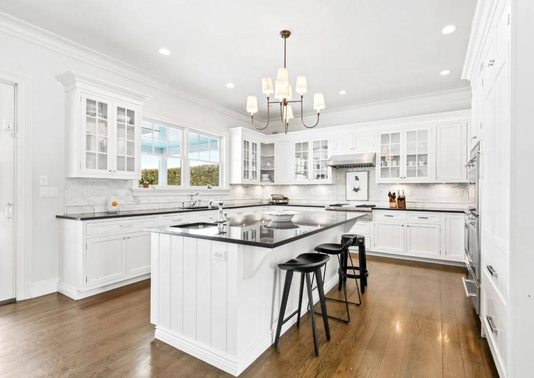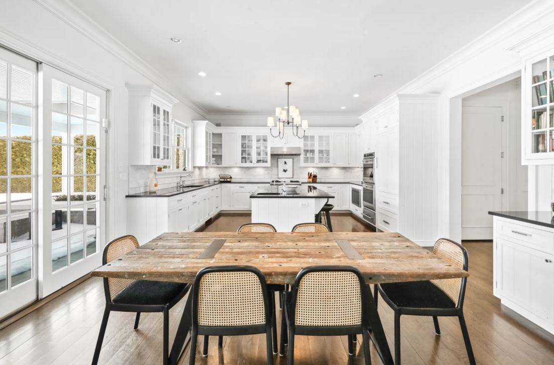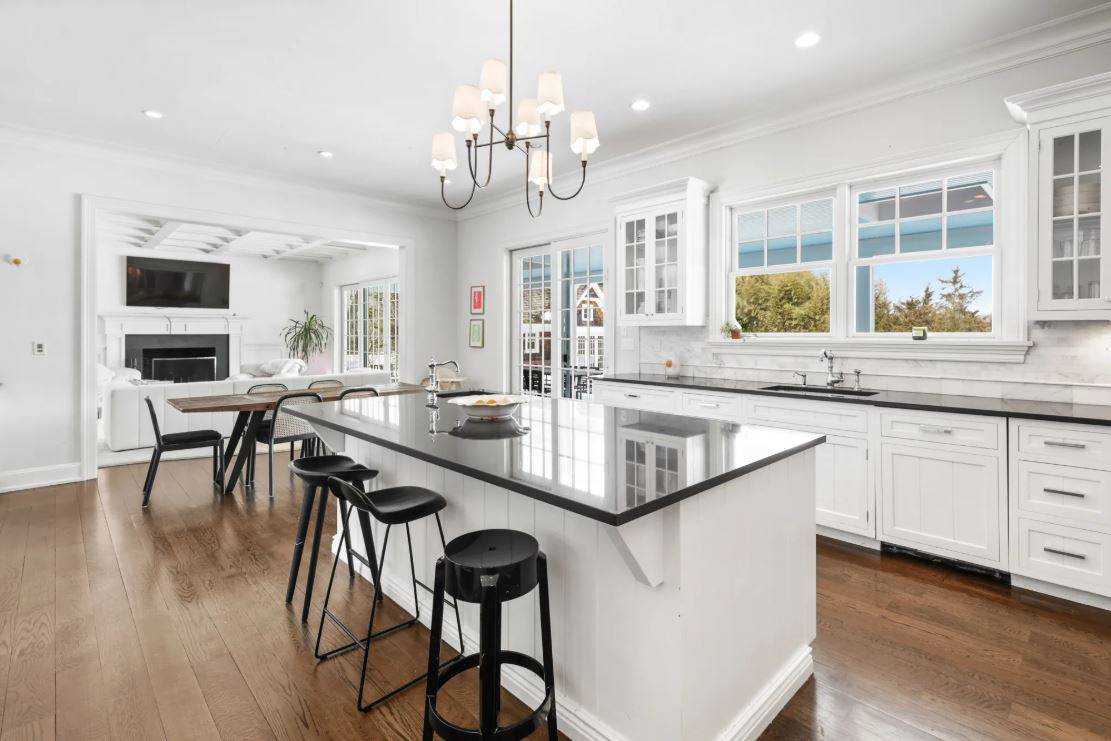 91 Bailey Road, Southampton. Lovely 5, 700+/- sq. ft. traditional home in Southampton Village with bucolic farm field views. The six bedroom traditional features all the high-end amenities and details Farrell Building is known for including a great room with fireplace and coffered ceiling, kitchen with Wolf, Sub-Zero and Miele appliances, Smart TV's , high speed internet and Sonos sound system, formal dining room, double master's, six and one-half marble baths, paneled foyer, two-car garage and a finished basement with full gym. Outdoors, covered lounging area with outdoor TV and custom built banquet sitting. The bluestone patio leads to the open lawn and heated gunite pool adjacent to the reserve farm fields. Pool house with built in Lynx Grill, outdoor fireplace and outdoor shower.