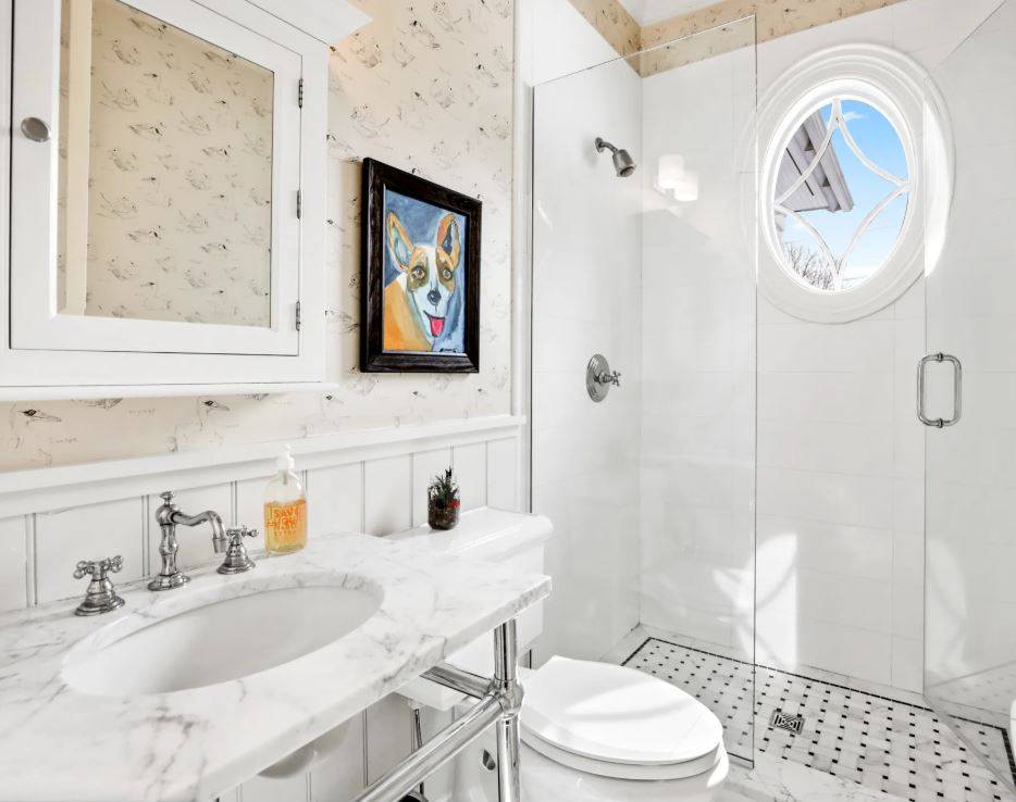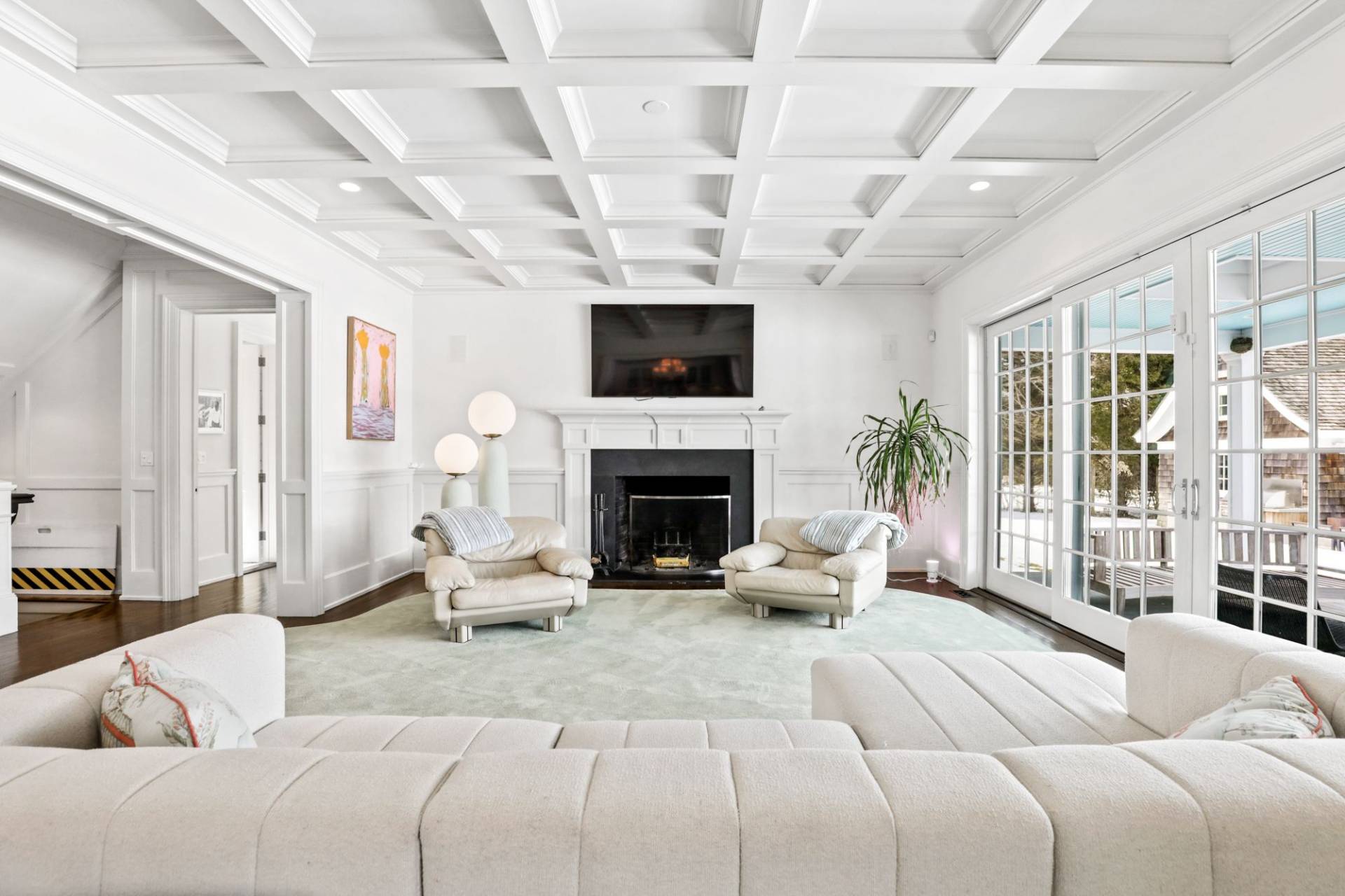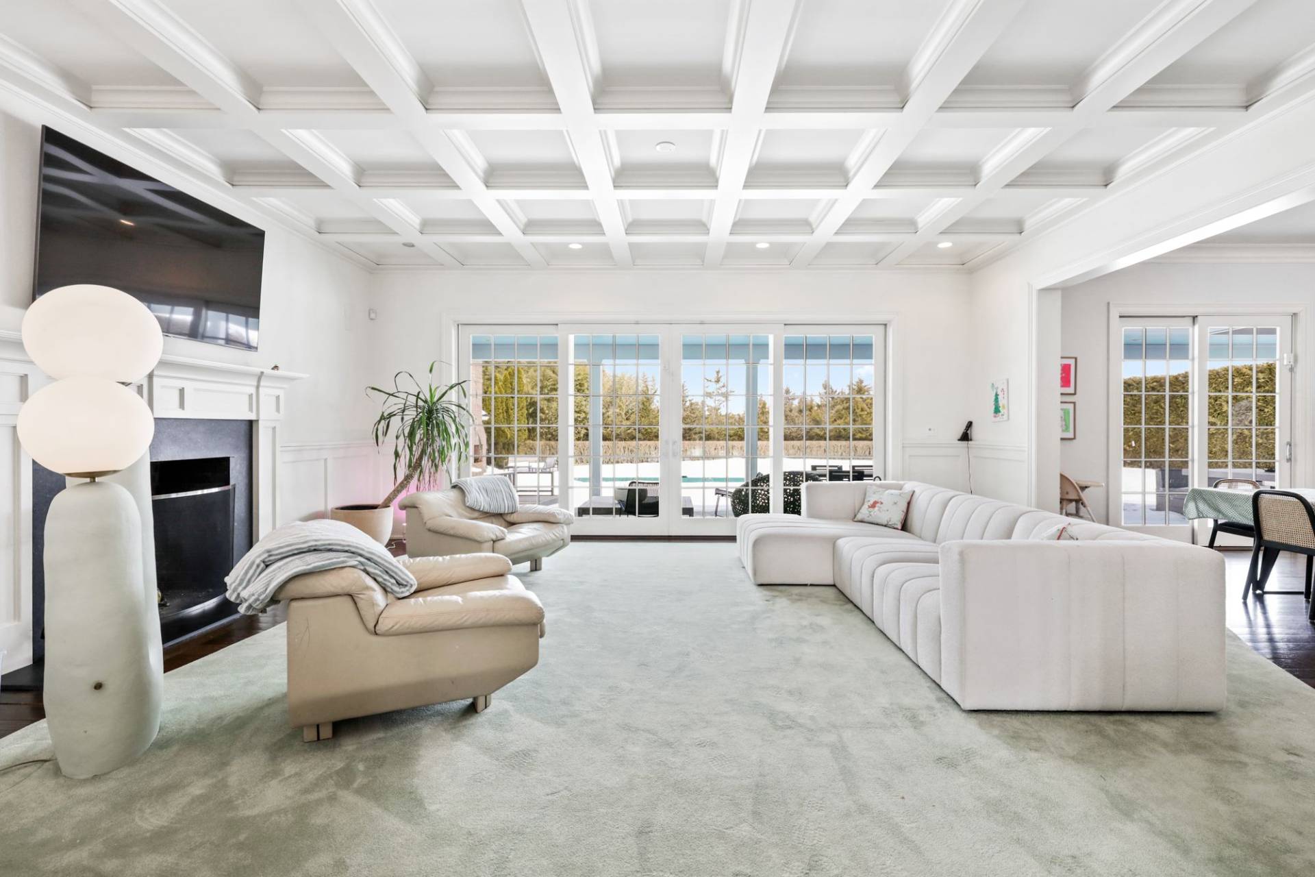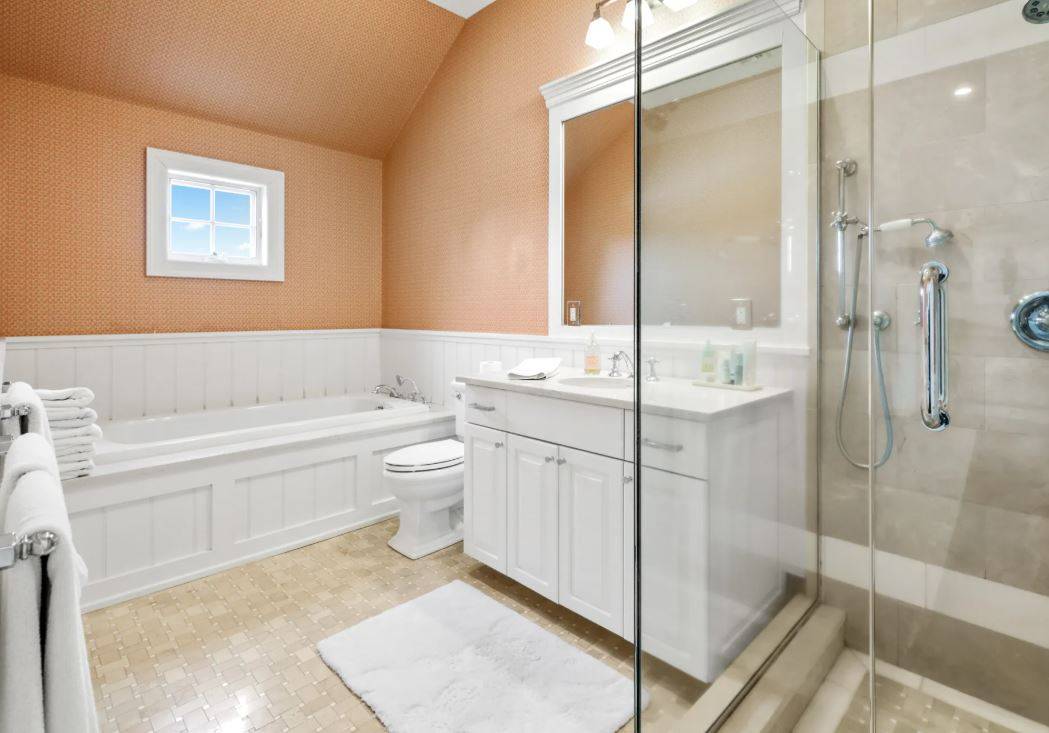 91 Bailey Road, Southampton. Lovely 5, 700+/- sq. ft. traditional home in Southampton Village with bucolic farm field views. The six bedroom traditional features all the high-end amenities and details Farrell Building is known for including a great room with fireplace and coffered ceiling, kitchen with Wolf, Sub-Zero and Miele appliances, Smart TV's , high speed internet and Sonos sound system, formal dining room, double master's, six and one-half marble baths, paneled foyer, two-car garage and a finished basement with full gym. Outdoors, covered lounging area with outdoor TV and custom built banquet sitting. The bluestone patio leads to the open lawn and heated gunite pool adjacent to the reserve farm fields. Pool house with built in Lynx Grill, outdoor fireplace and outdoor shower.