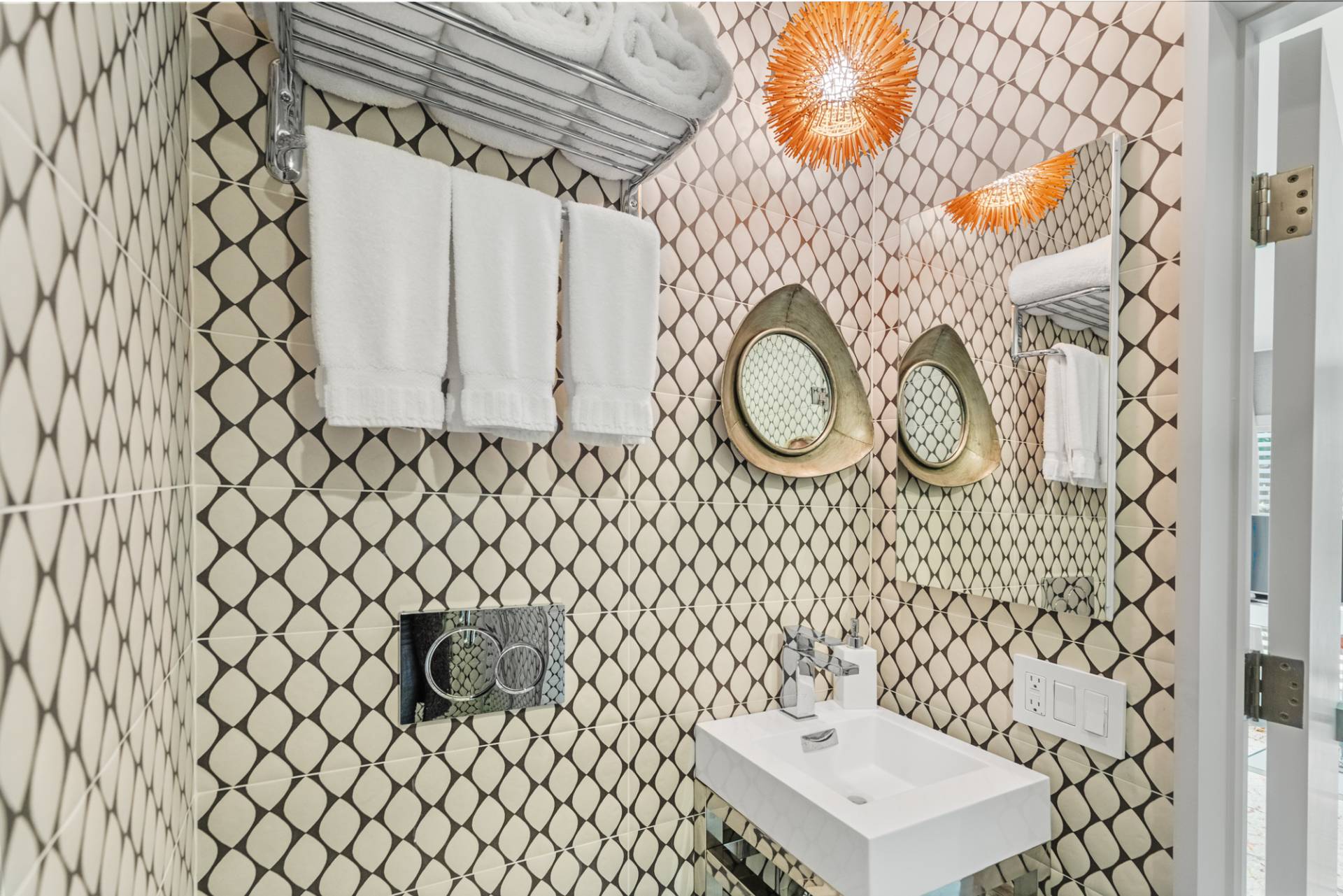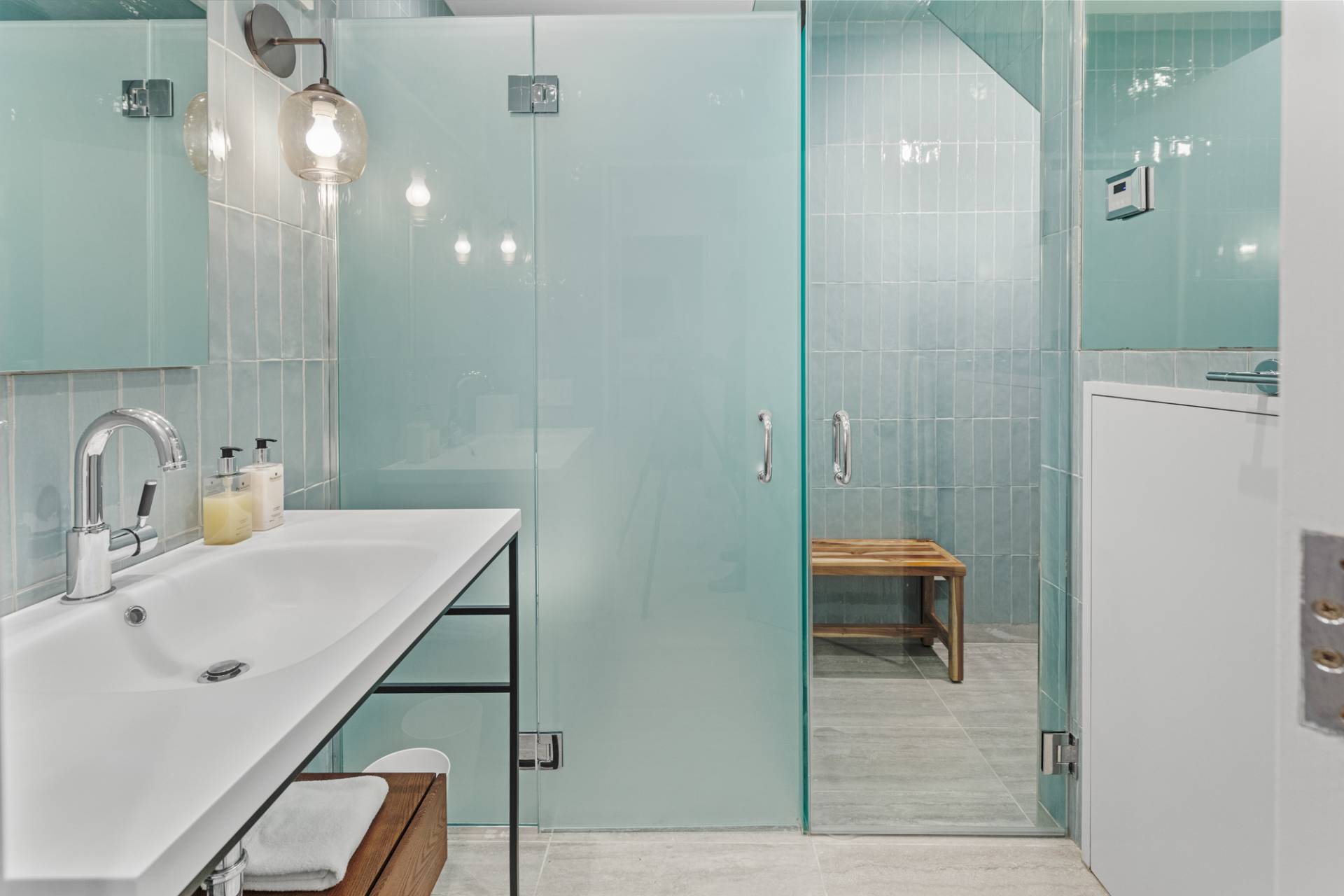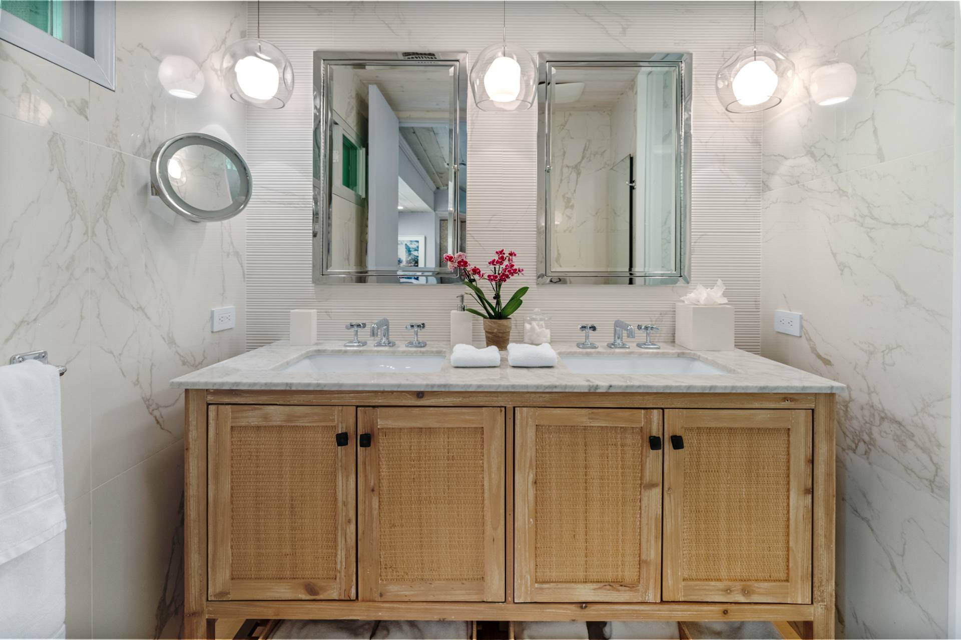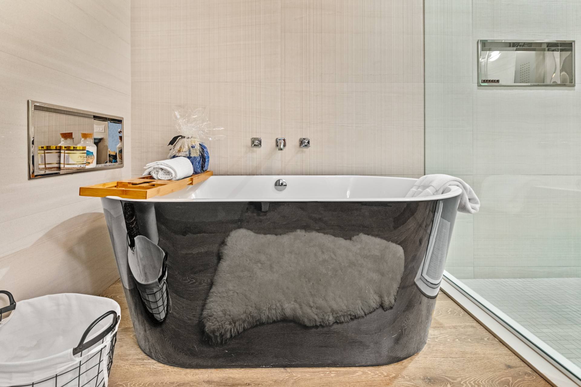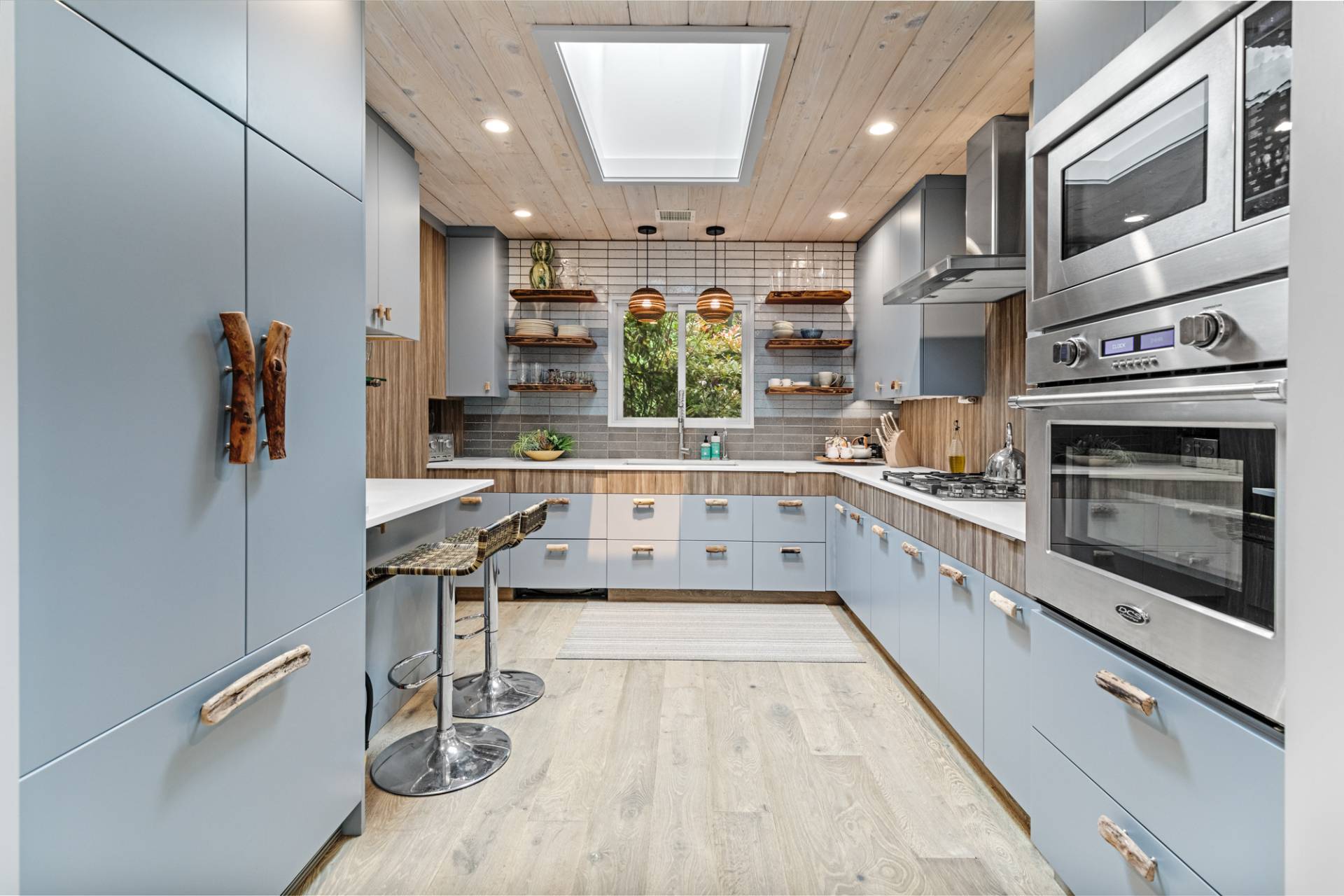 Rental Registration #: 23-137 Newly renovated four bedroom 5. 5 bath oceanfront modern beach house, is a chic mid-century summer oasis. Built and conceived by Architectural Digest 100 Designer Joe Nahem, this zen- like mid century modern home features a state of the art kitchen, Sonos throughout, heated salt-water unite pool, extensive decking, two primary suites; one with soaking tub and separate shower and the other with steam shower. The main living area features wood clad cathedral ceilings and antique barn wood walls. Chic design and furnishings are a combination of both new and mid- century vintage furniture and lighting. Outdoor amenities include a beautiful outdoor patio with several living and dining areas, a private roof deck, and a park-like shy acre with a path leading directly to wide sandy beaches. Also, a new full gym with bath and steam. Privately located on a flag lot, this modern beach house offers the utmost in understated luxury and elegance. .