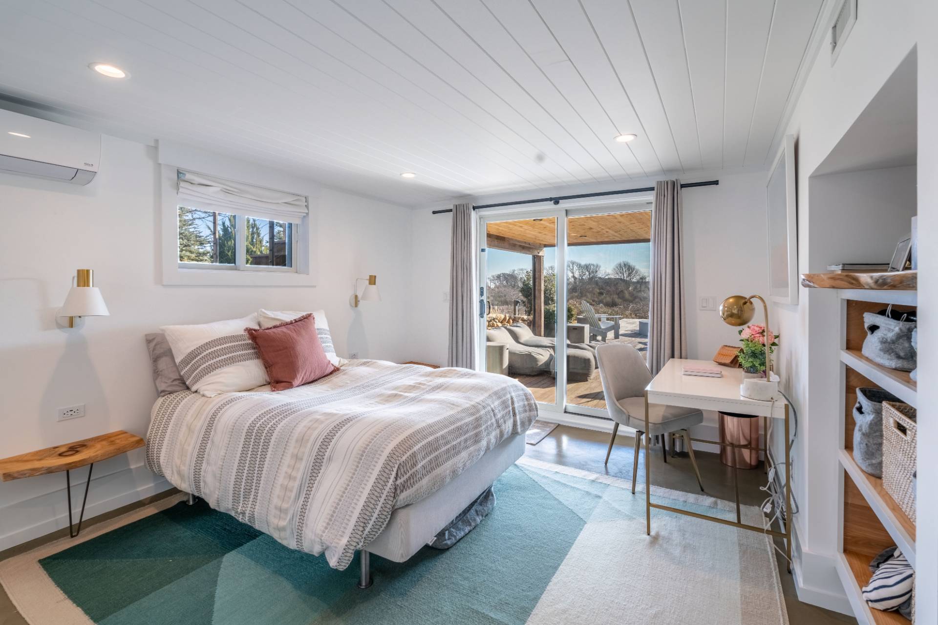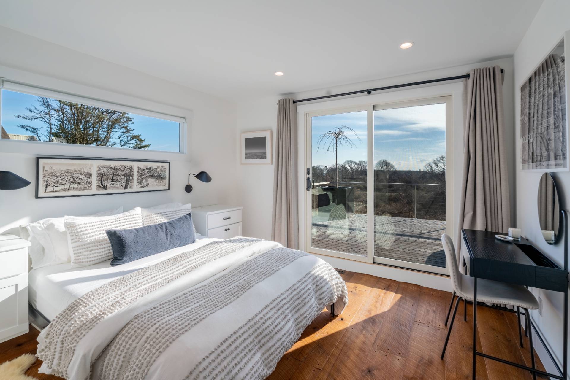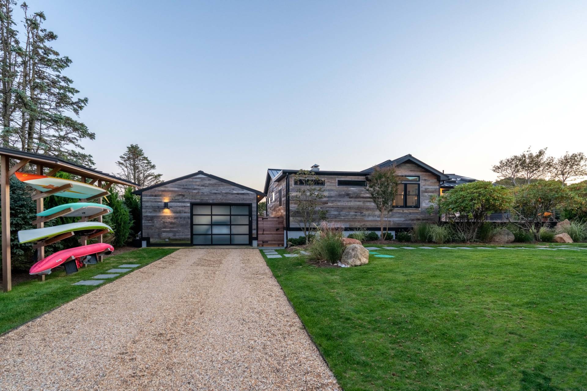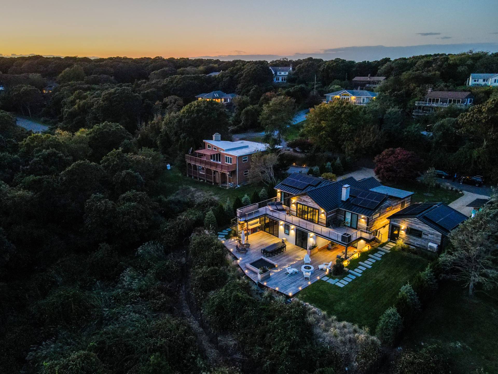 This exceptional Montauk beach home offers the perfect blend of modern sophistication and coastal charm. Ideally situated just minutes from town and the ocean, the residence captures sweeping views and an effortless indoor-outdoor flow. Designed for refined yet relaxed living, the home features a state-of-the-art chef's kitchen, soaring cathedral ceilings in the open living area, and reclaimed hardwood floors throughout. The spacious primary suite provides a serene escape, while the separate au pair suite ensures comfort and privacy for guests. The outdoor entertaining area is a true highlight - complete with a gourmet kitchen showcasing an Argentinian-style grill, a fire pit, a jacuzzi/hot tub, and generous lounge seating perfect for gatherings under the stars. Experience Montauk at its finest in this stylish, family-friendly coastal retreat that seamlessly blends comfort, elegance, and location.