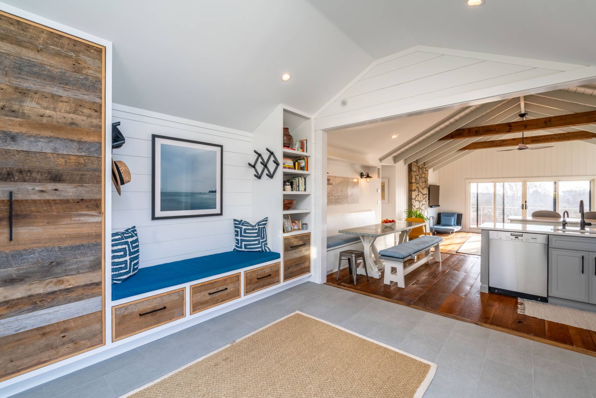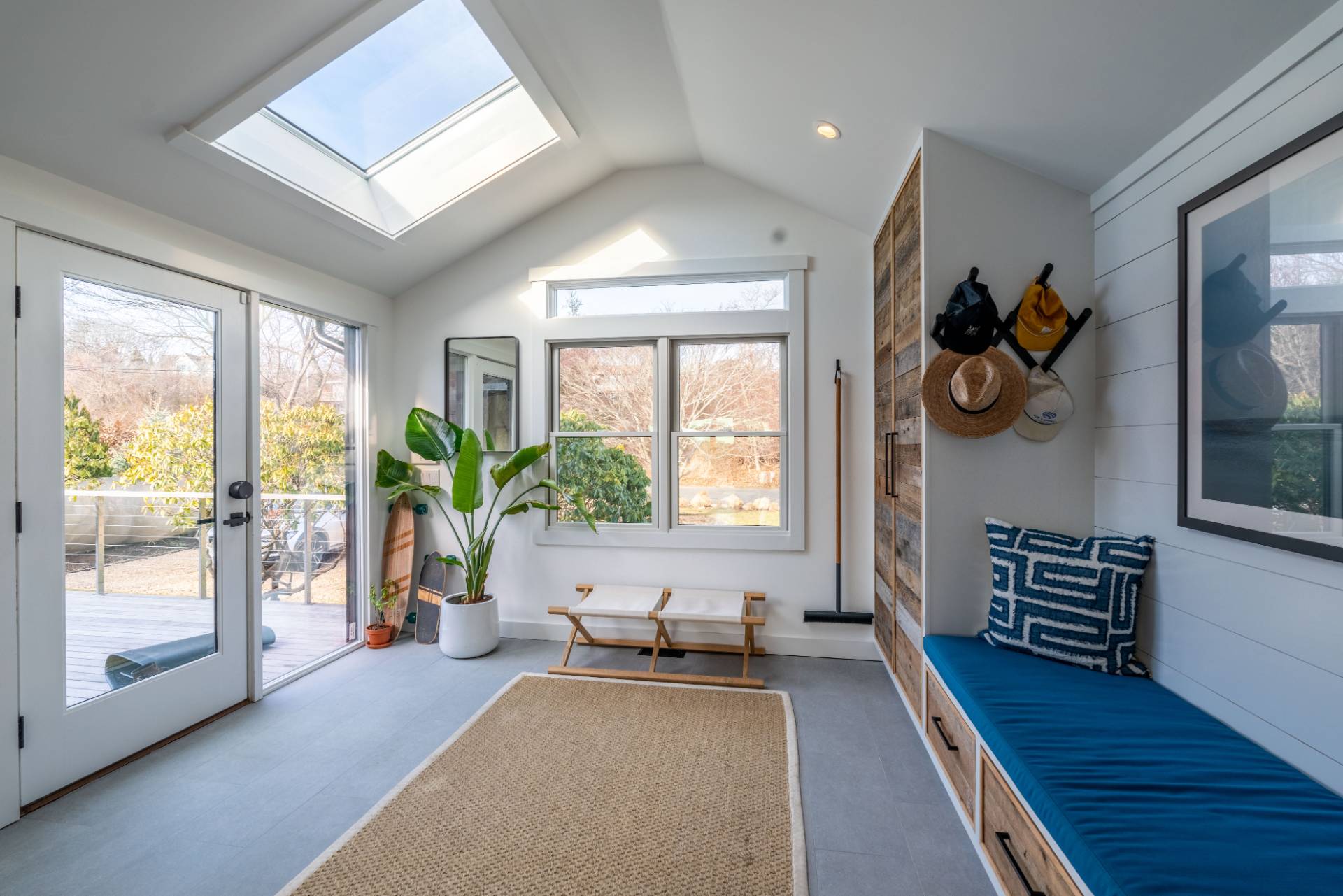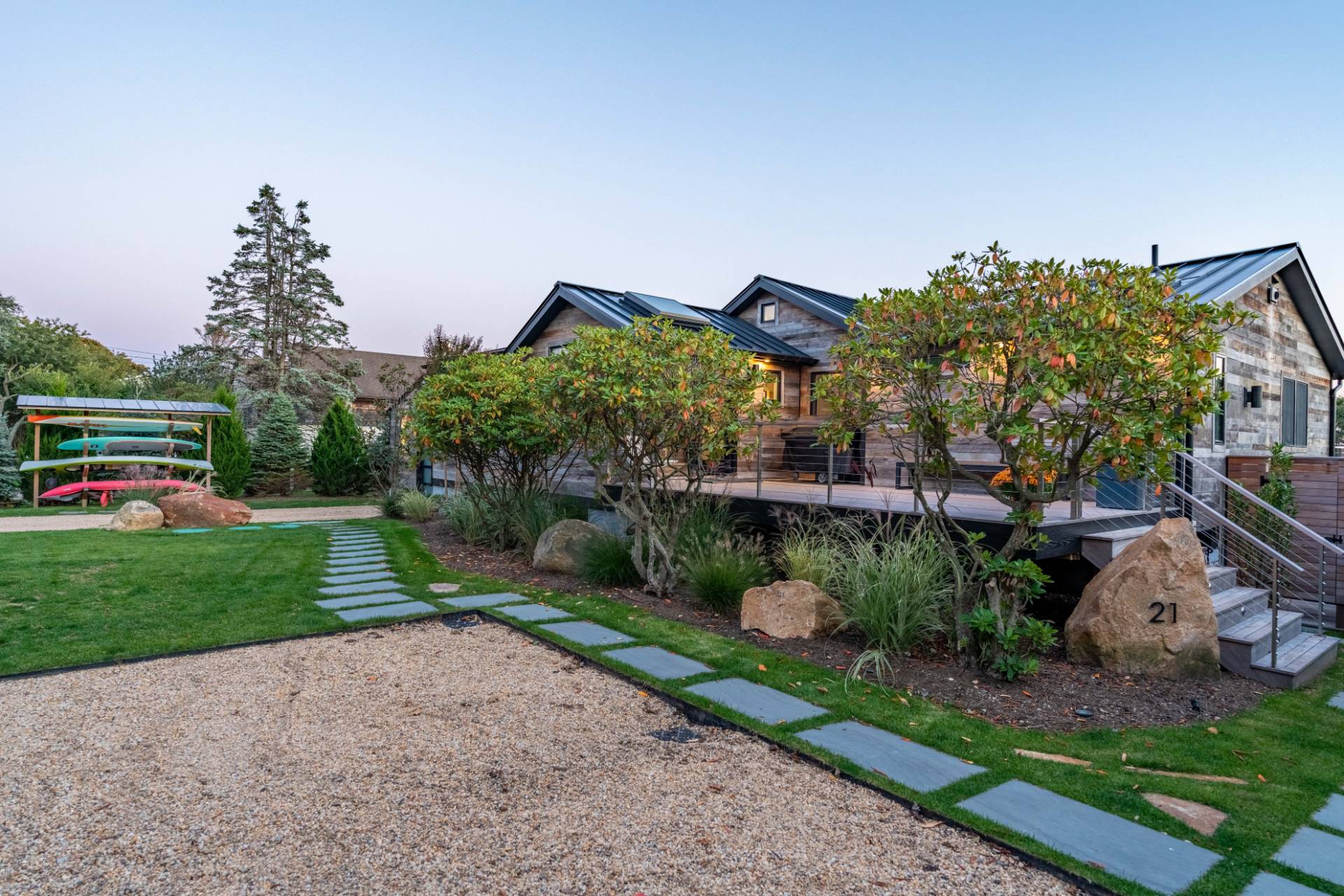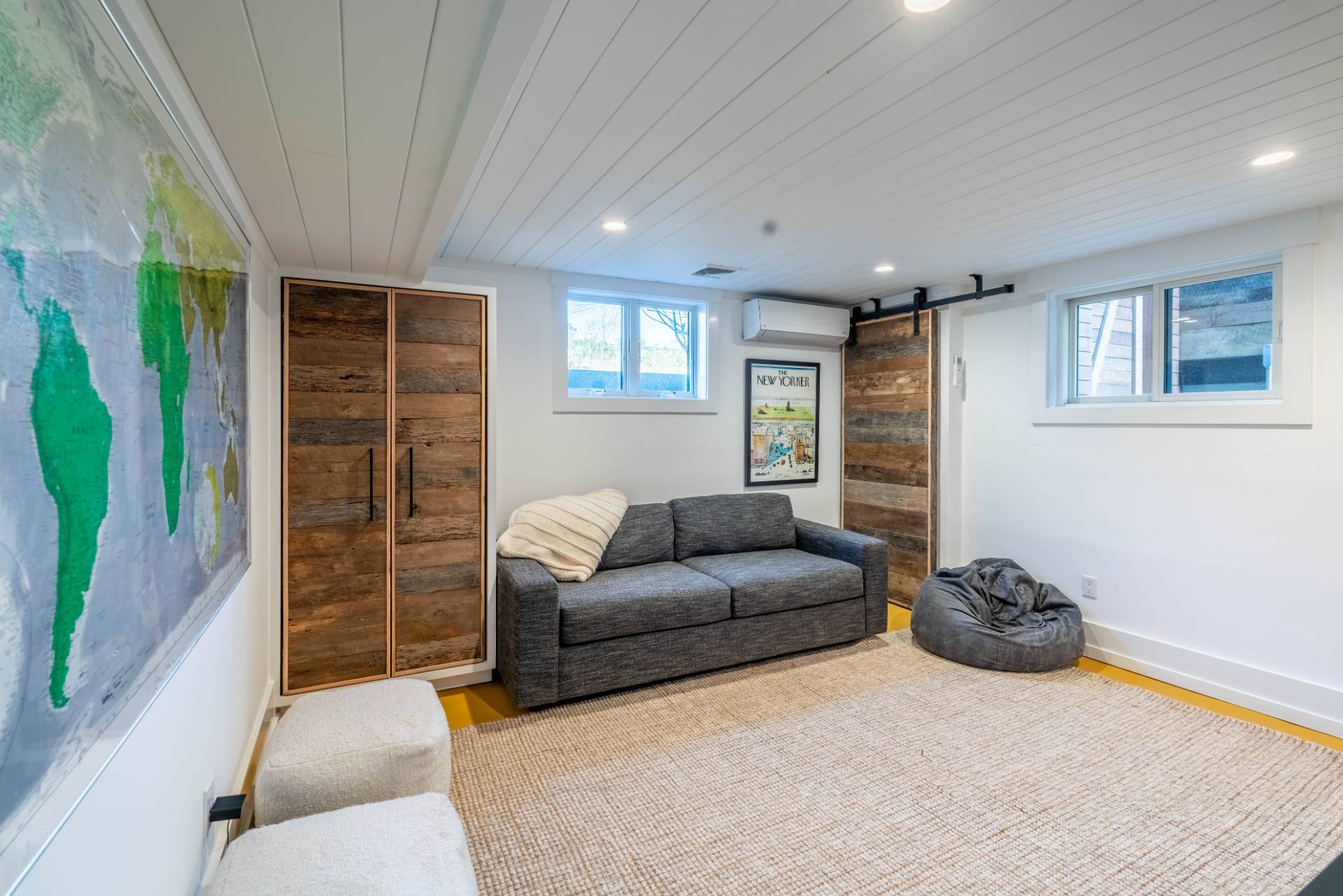 This exceptional Montauk beach home offers the perfect blend of modern sophistication and coastal charm. Ideally situated just minutes from town and the ocean, the residence captures sweeping views and an effortless indoor-outdoor flow. Designed for refined yet relaxed living, the home features a state-of-the-art chef's kitchen, soaring cathedral ceilings in the open living area, and reclaimed hardwood floors throughout. The spacious primary suite provides a serene escape, while the separate au pair suite ensures comfort and privacy for guests. The outdoor entertaining area is a true highlight - complete with a gourmet kitchen showcasing an Argentinian-style grill, a fire pit, a jacuzzi/hot tub, and generous lounge seating perfect for gatherings under the stars. Experience Montauk at its finest in this stylish, family-friendly coastal retreat that seamlessly blends comfort, elegance, and location.