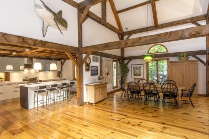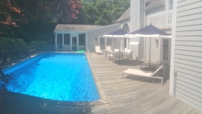 Rental Registration #: 18-1601 This barn style house has it all with its open and airy living area. It features wooded floors throughout and two fireplaces. It also hosts a European Style kitchen in addition to the open dining, living room and pool table playing area. There is a den leading out to an enclosed screened-in porch, and outdoor decking featuring a swimming pool and outdoor shower. This terrific house is a great hide-a-way for the summer season and close to all in Amagansett. .