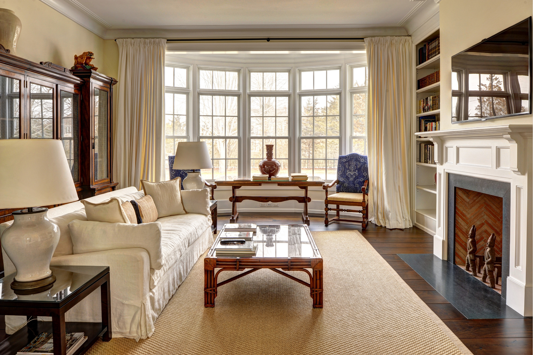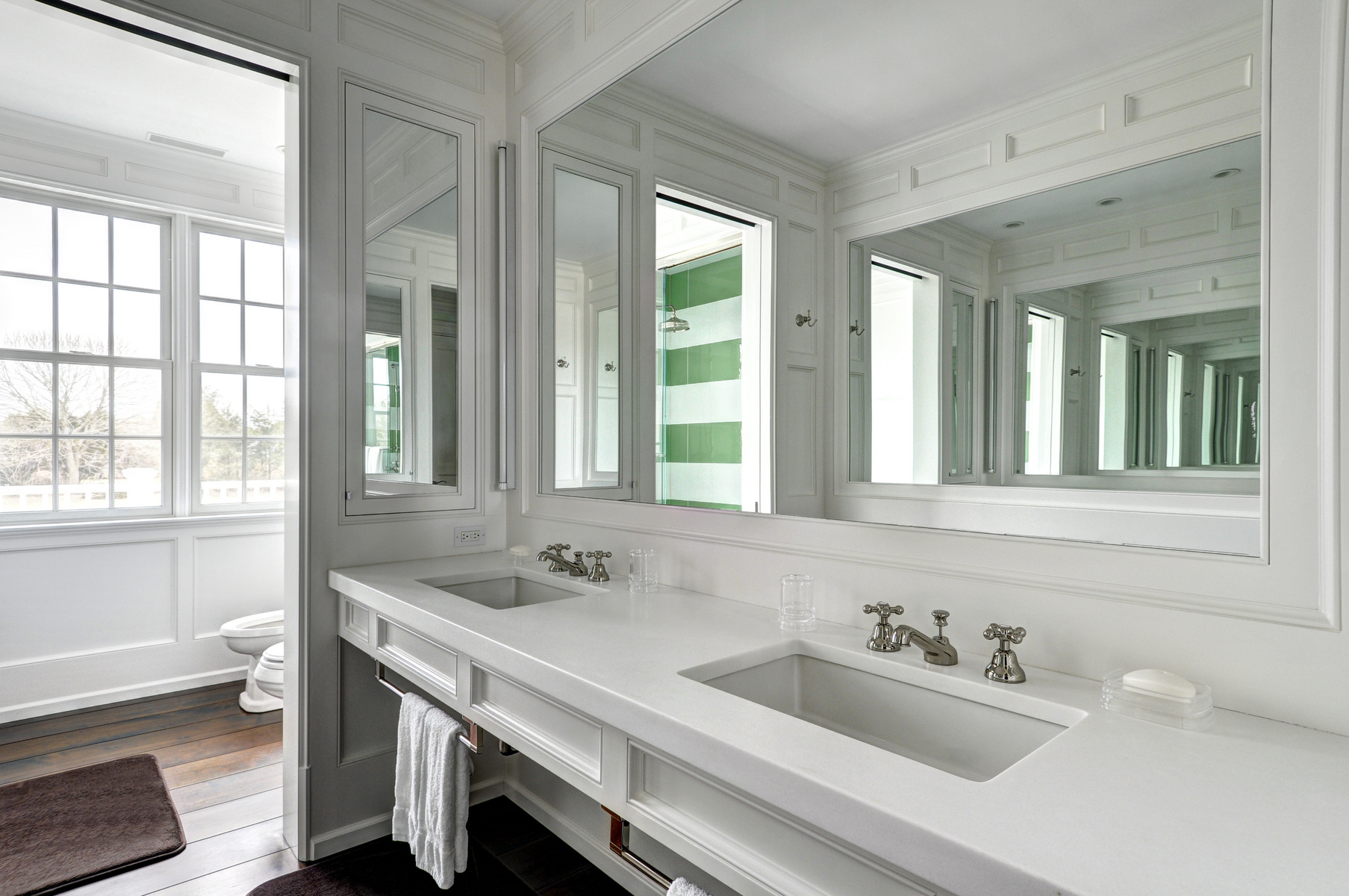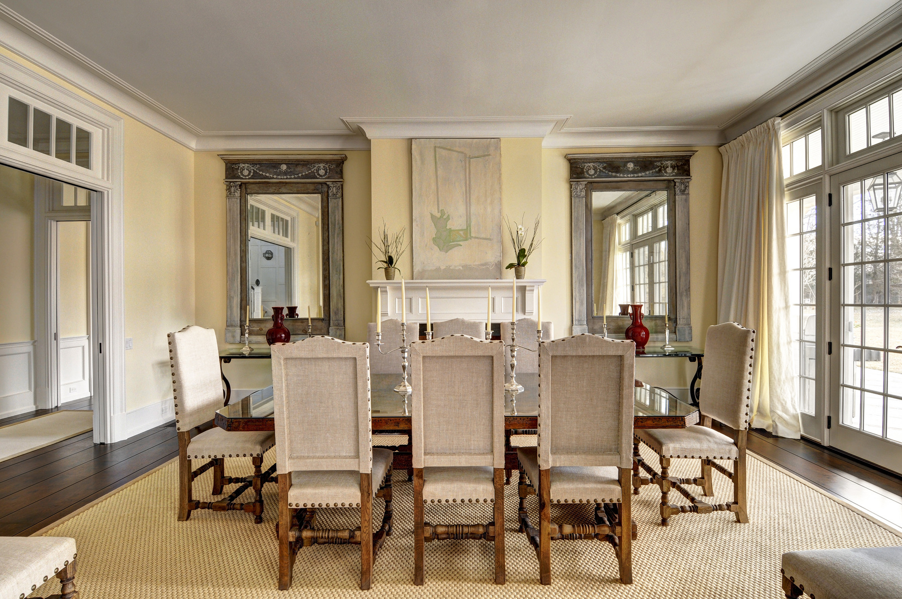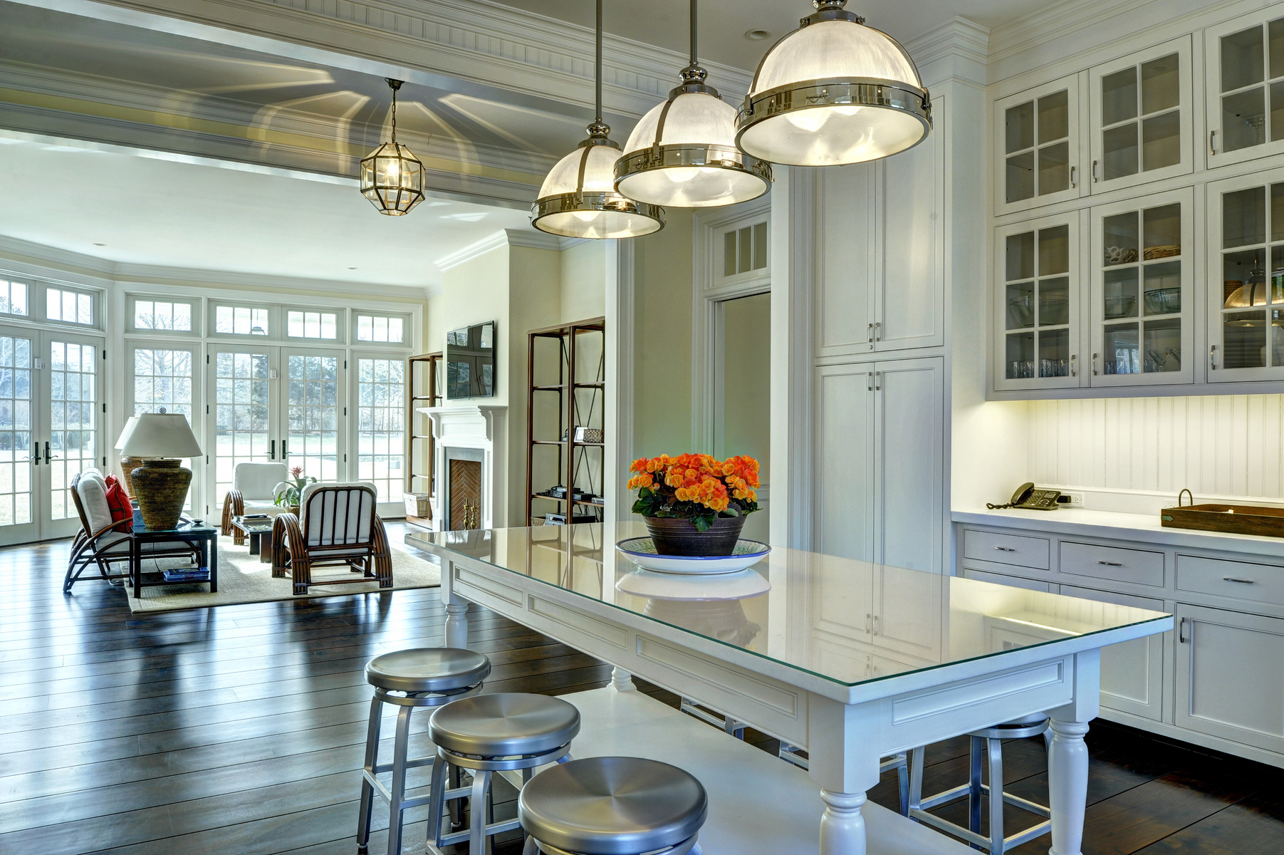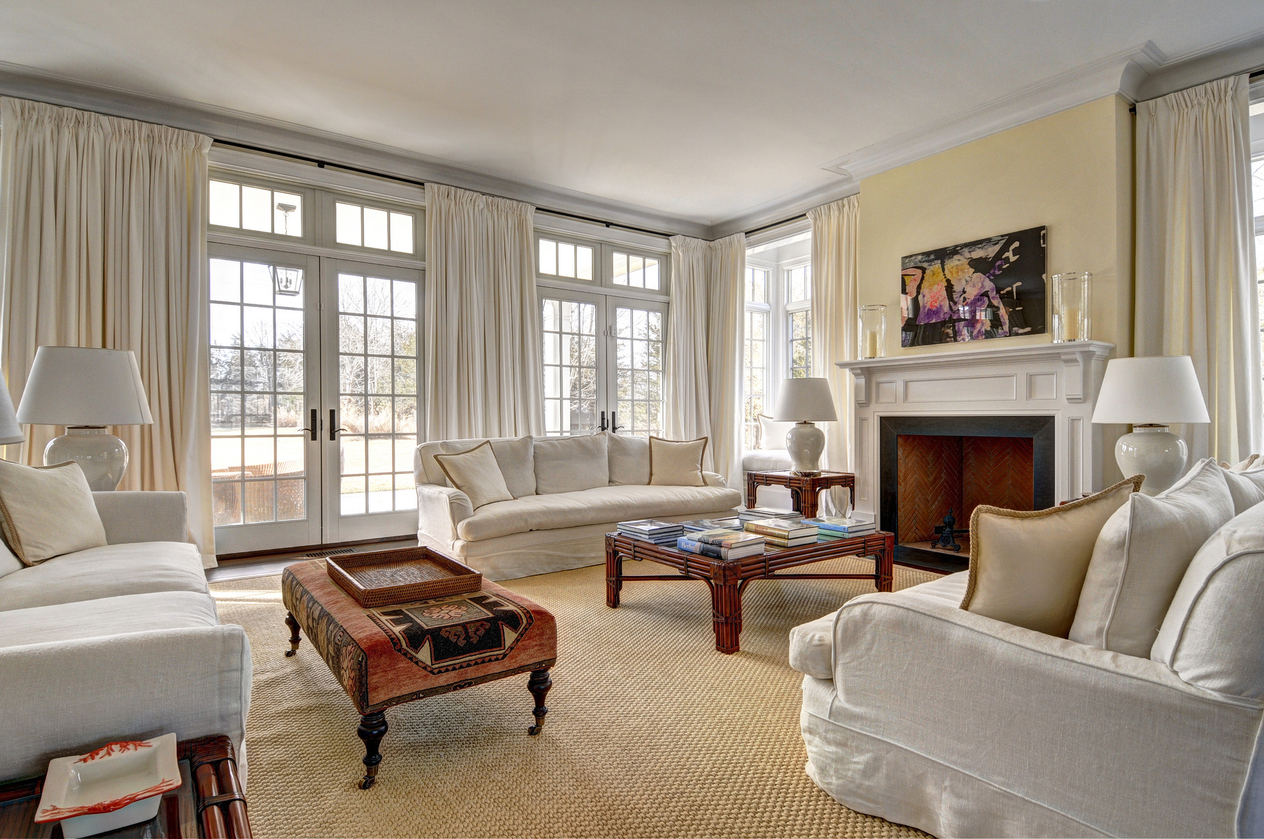 56 Barnhart Street, Southampton, NY. No expense has been spared by the owners of this 9000 square foot high-end traditional in the estate section of Southampton Village! Eight bedrooms, ten baths, and seven fireplaces altogether. First floor includes living and family rooms, high end chef's kitchen with butler's pantry and breakfast area, library, formal dining room, and guest suite. Gorgeous finishes, including walnut floors throughout, and traditional details such as paneling and moldings abound. Second floor includes master suite wing with two fireplaces (bedroom and bath) and large sitting room, and five additional ensuite guest rooms. 1, 200 square foot finished basement includes rec room, large laundry, and office with bath. Elevator to all levels. Sunken tennis court, heated Gunite infinity edge pool, large stone terrace, port cochere, two car garage; all on over two acres. A unique residence for a high end summer retreat and memorable entertaining.