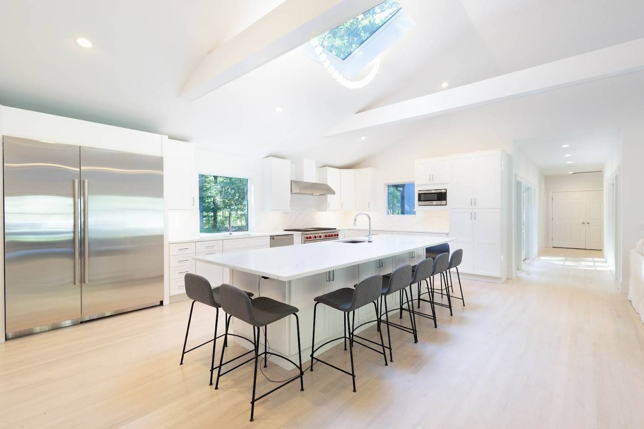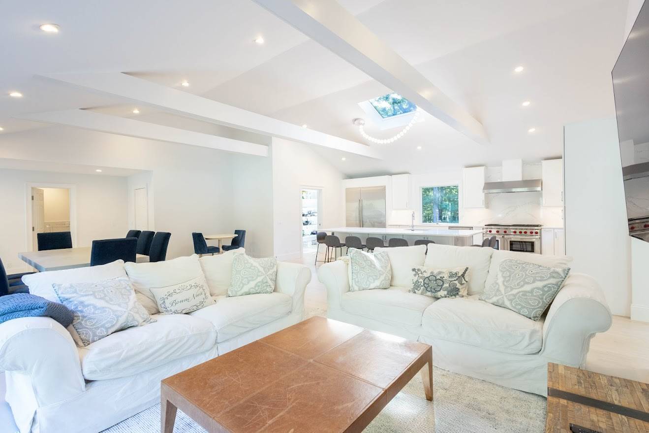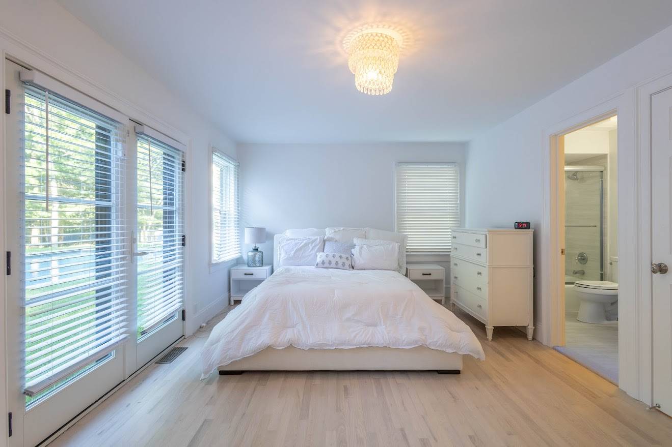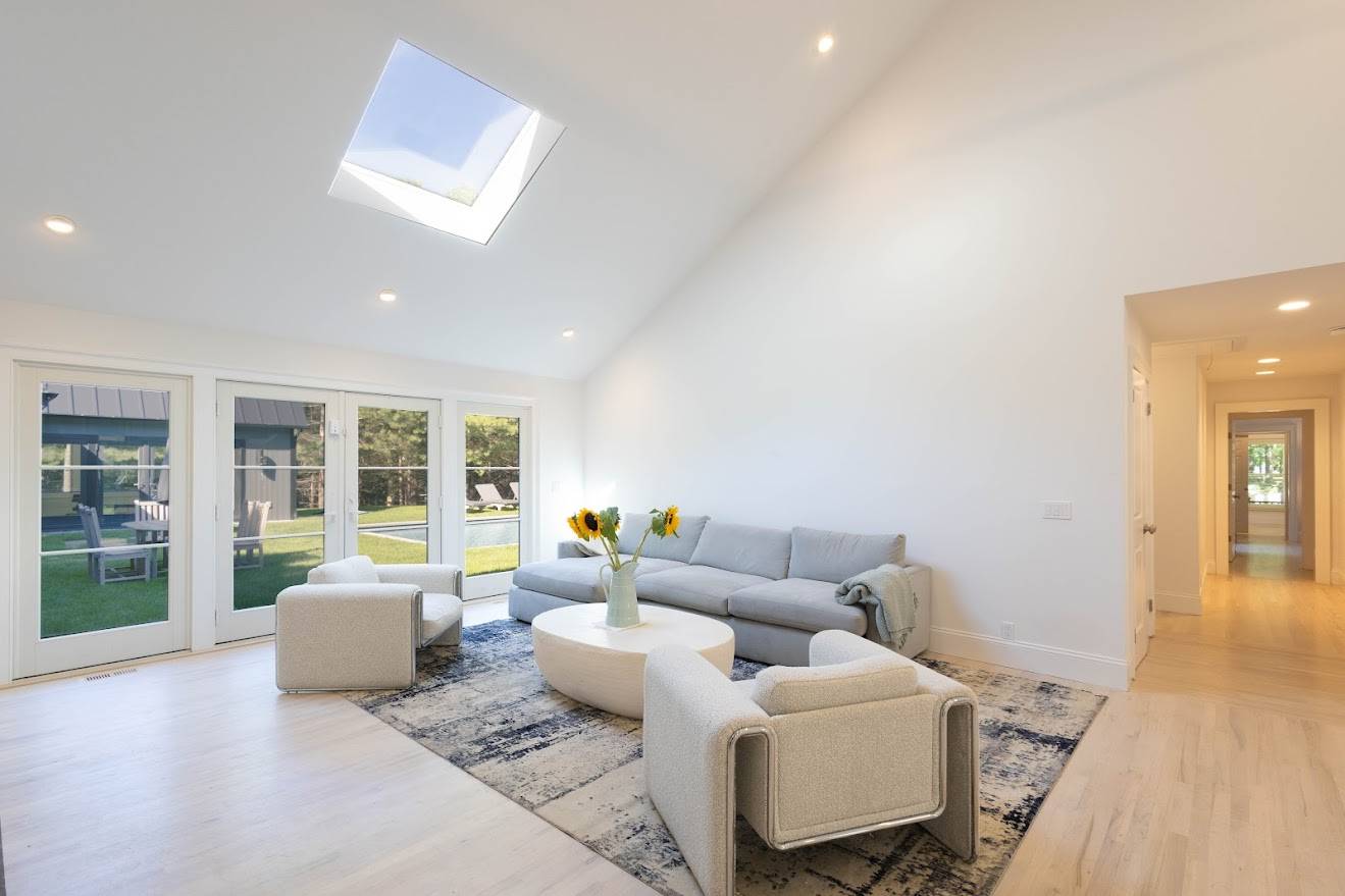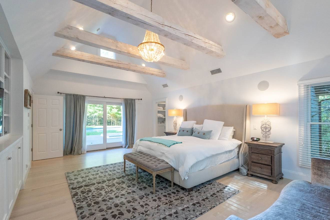 Spectacular modern renovation and expansion just completed in June 2024. This 6, 750 square foot home enjoys multiple outdoor Hamptons amenities, within a courtyard, all situated on 3. 1 acres. With 5, 000 square feet at grade providing luxurious and easy one-story living with a highly functional layout and thoughtful spaces to live, work and play. There is 1, 750 square foot of finished lower level providing recreational uses along with two large bedrooms and two bathrooms. There are 7 large bedrooms in total including a master and junior master, 5 of the bedrooms are on the main level of which four are en-suite. A total of 8. 5 luxurious bathrooms; infinity drains; steam shower. Har-tru tennis court and basketball hoop. New 20x50 foot gunnite pool with LED lighting in the courtyard. The 700 sq ft master bedroom features an en-suite with steam shower; white washed beams; and a private patio with built-in hot tub. A 1, 000 square foot open and very bright great room, featuring kitchen, family room and dining room. Dream chef's kitchen with oversized Wolf/Sub-Zero appliances, a large pantry and a long island that seats nine people. Spacious home office. Above grade 450 square foot gym with Peloton, rowing machine and elliptical plus weights and featuring a spa en-suite bathroom. Glass breezeway connecting to a modern metal-roofed farmhouse and a 400 square foot covered bluestone patio . The patio features outdoor dining and an outdoor tv, and has direct access to the kitchen. Most rooms are pool-facing. Exceptionally bright, endless windows in all directions. Multiple indoor/outdoor living rooms. Soaring ceiling heights with multiple skylights. Entire home is freshly painted and features new oak flooring. Laundry on both levels. Dedicated linen closets. Brick fireplace (functional). New high end Weber BBQ. Outdoor shower. Newly landscaped, plush and fully irrigated. Connected 2-car garage. CAC. Short drive to SH Village, Coopers Beach, Sag Harbor, SYS / Future Stars or farms. Available August-LD @ $100K or any two weeks in August @ $70K. Call for details.