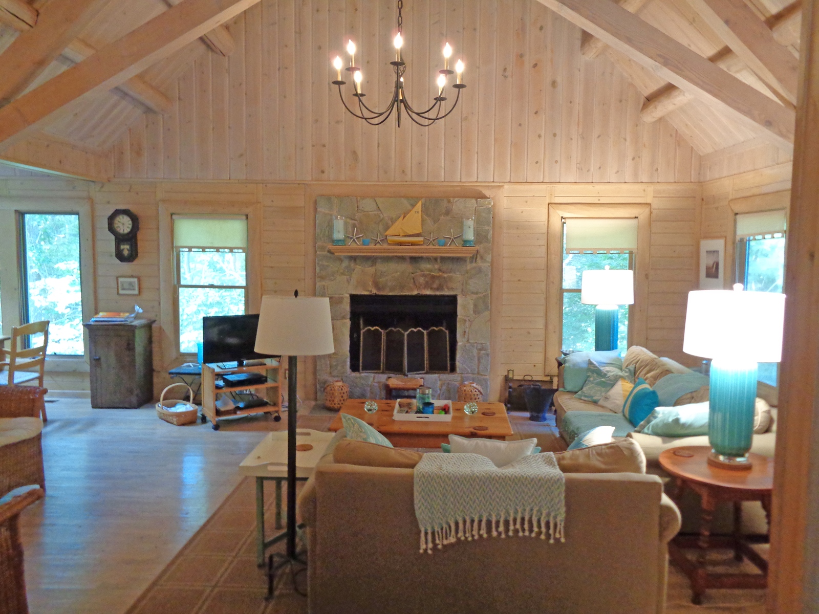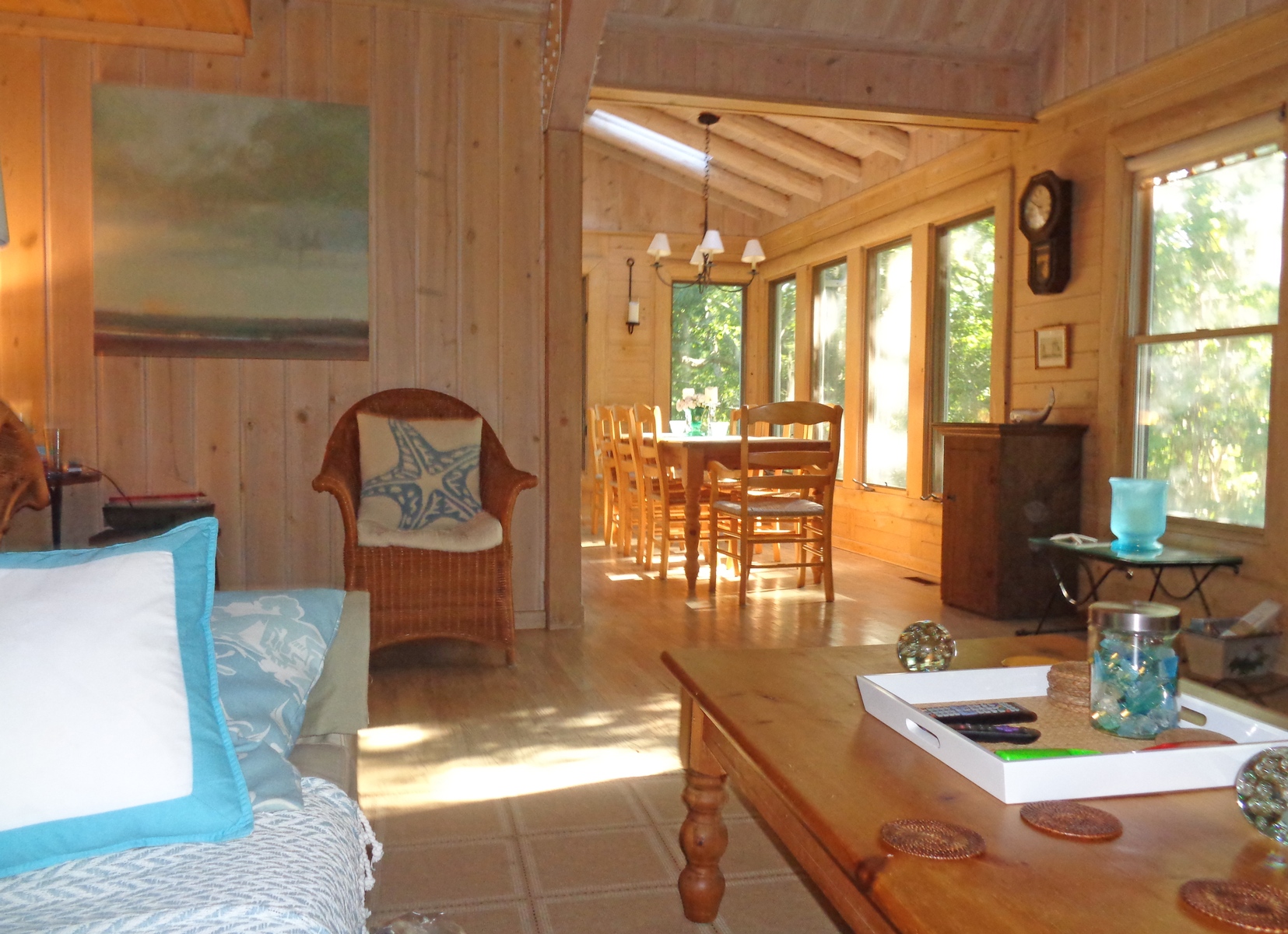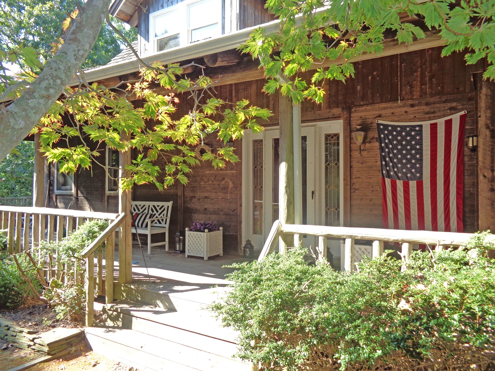 Lovely, traditional tranquil escape located at 56 Shoridge Road, East Hampton. 3 large bedrooms, 2. 5 baths on . 5 private acres, close to bay beach and only 5 minutes to ocean. House is beautifully decorated and appointed. First floor Master suite with marble bath and jacuzzi opens onto porch overlooking sparkling swimming pool. Striking bleached pine post and beam interior, with 25 foot cathedral ceilings. Expansive covered porches and outdoor seating areas. A peaceful country setting that's close to everything. Rental Reg. # 21-1123