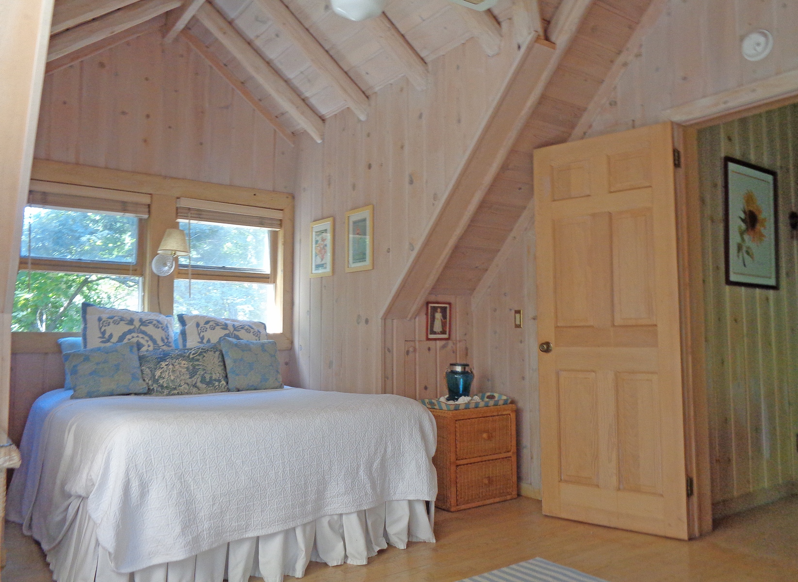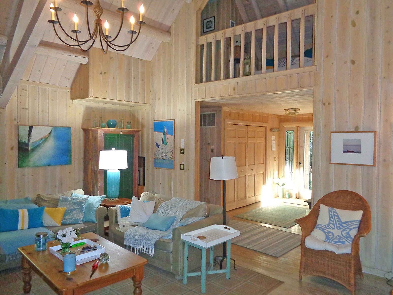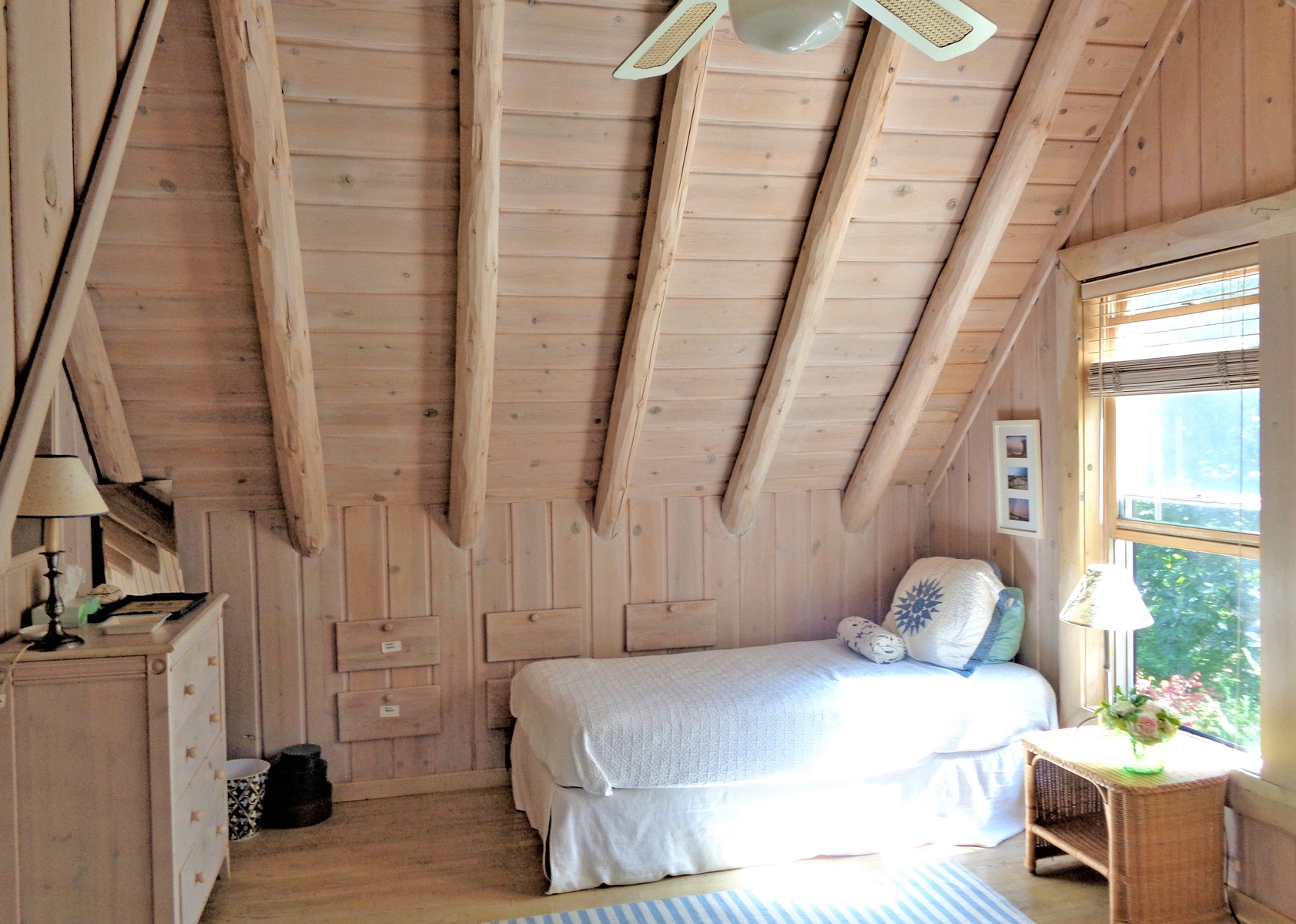 Lovely, traditional tranquil escape located at 56 Shoridge Road, East Hampton. 3 large bedrooms, 2. 5 baths on . 5 private acres, close to bay beach and only 5 minutes to ocean. House is beautifully decorated and appointed. First floor Master suite with marble bath and jacuzzi opens onto porch overlooking sparkling swimming pool. Striking bleached pine post and beam interior, with 25 foot cathedral ceilings. Expansive covered porches and outdoor seating areas. A peaceful country setting that's close to everything. Rental Reg. # 21-1123