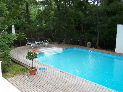 RR#24-262 Crisp East Hampton contemporary, privately situated on an acre of wooded grounds, with a 20' x 40' swimming pool. Features include a spacious living room with fireplace and high ceiling; dining area, kitchen, three bedrooms and two baths. The furnished house is filled with light, and additional amenities include skylights, clerestory windows, central air-conditioning, and an expansive outdoor deck. This lovely home has easy access to bay beaches. Bright and sunny.