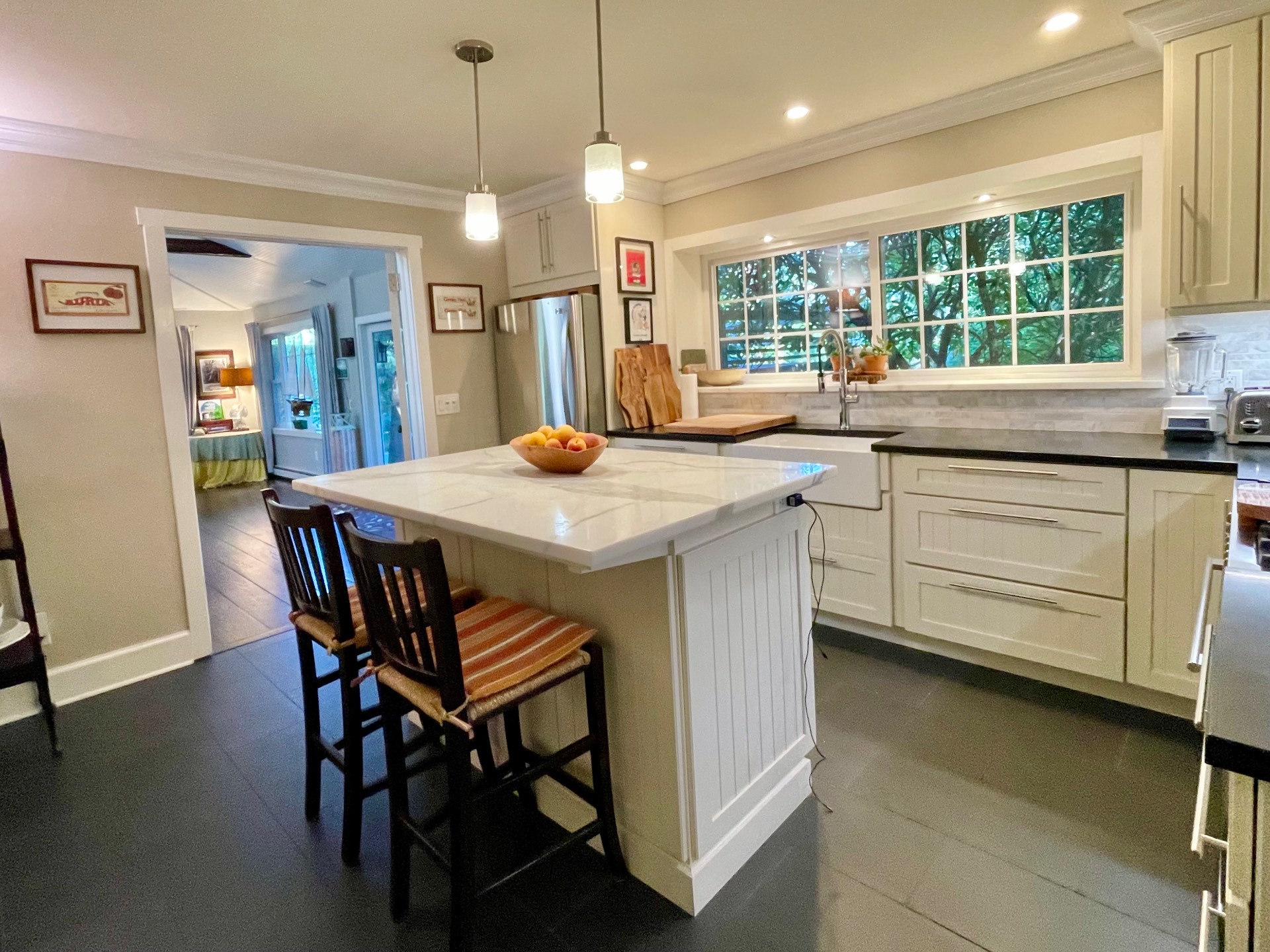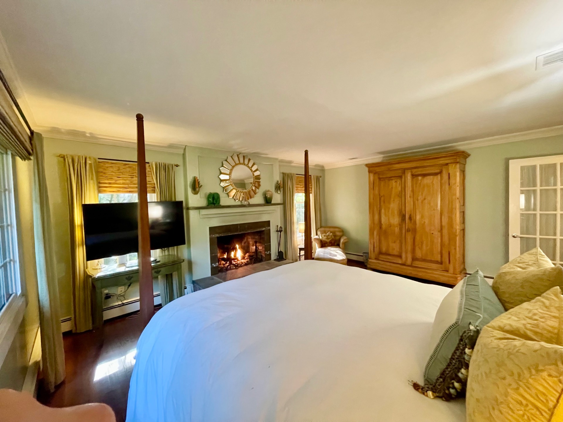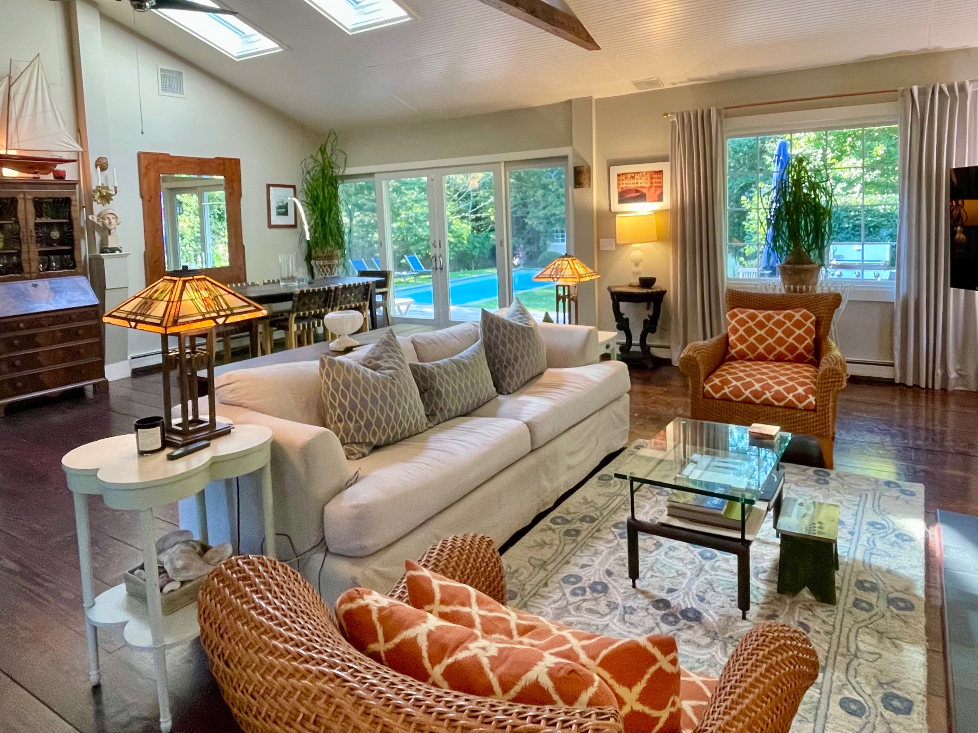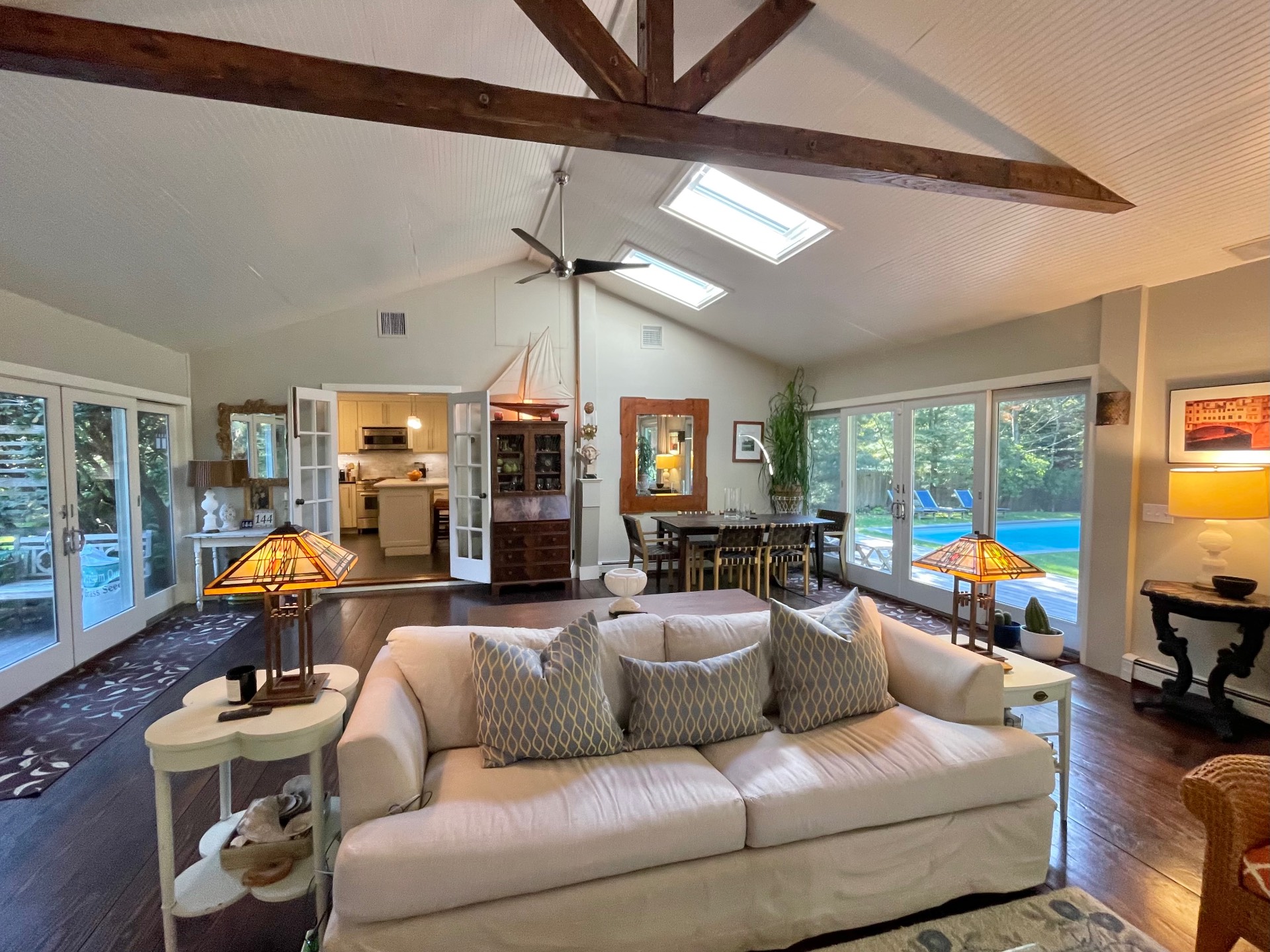 Rental Registration #: 24-106 This lovely 3-bedroom, 2-bath ranch home, located on a quiet street in East Hamptons Springs hamlet, was recently and beautifully renovated, with much attention paid to all details. The open concept living room with a fireplace and dining area allows for plenty of light, and has glass doors leading to the ample deck for Al fresco dining. The eat-in kitchen is fully equipped and has radiant heat floor. Primary en-suite bedroom offers a gas fireplace and flatscreen TV. The two guest bedrooms have doors leading to the back deck. The property includes a new heated pool, a charming deck, cute pool house, outdoor shower and is wonderfully landscaped - both in front and the rear of the home. A very sweet and cozy summer retreat!.