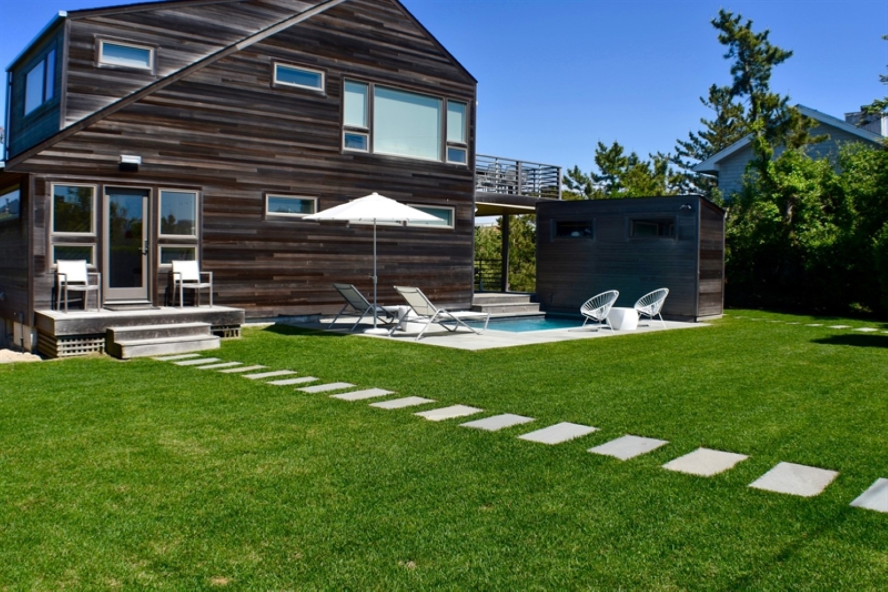 Rental Registration #: 17-751 Nestled in the dunes of Amagansett, and less than a minute walk to the ocean beach, lies this bright, chic, designer decorated beach house. Featuring ocean views from the 2nd floor deck, this home includes 4 bedrooms, 3 full baths, open concept kitchen with top of the line appliances, heated gunite pool with cabana, and large decks perfect for outdoor entertaining. The perfect Hamptons beach home awaits you!.