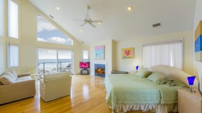 Beautiful expansive Westhampton Beach home offering an open cathedral ceiling living room which glides into the dining and gourmet kitchen area. Den with fireplace for cozy days and nights. Two master suites, each with jacuzzi and one with fireplace. A total of six bedrooms and five-and-one half baths. Two laundry facilities. Expansive ocean views with heated inground pool, jacuzzi, and deck. Private ocean access from the pool and deck area. Majestic light and bright home with room for all.