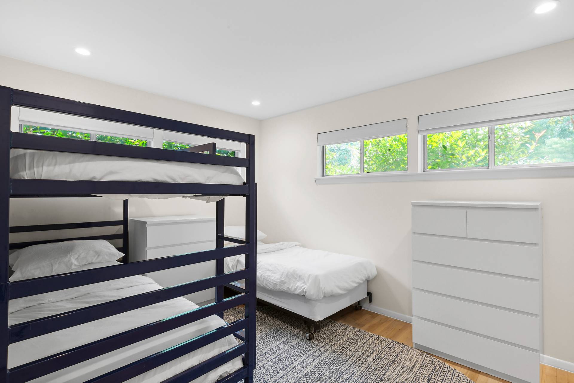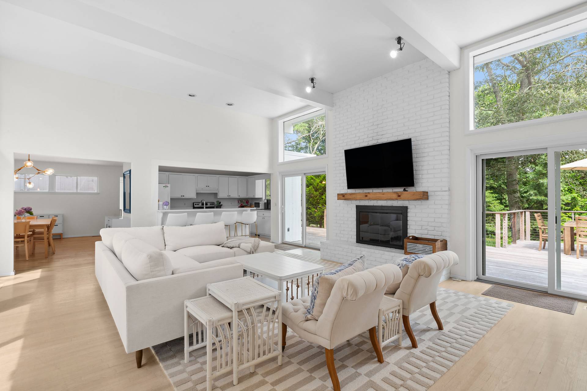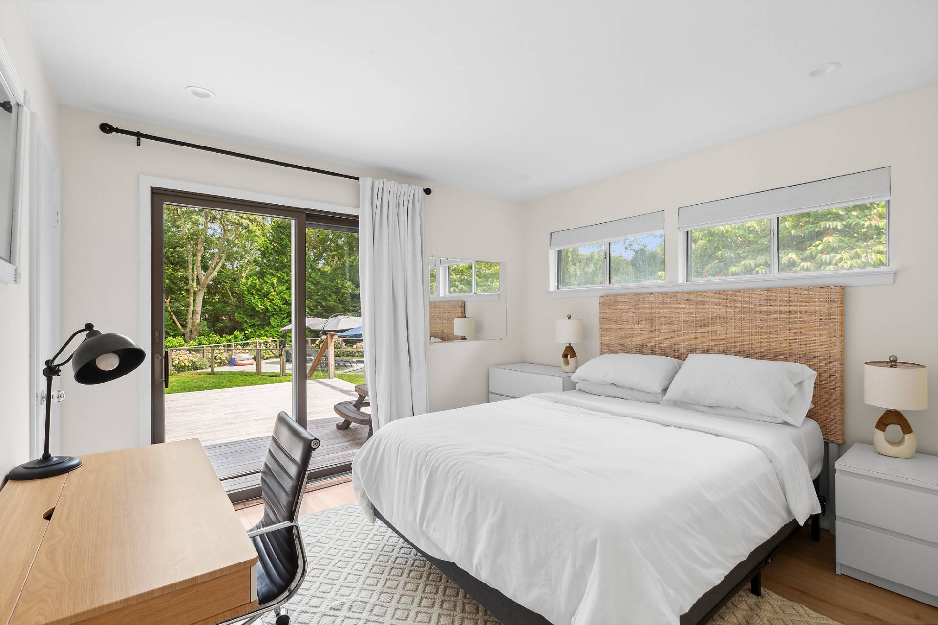 Located south of the highway on a quiet cul-de-sac in East Hampton Village is a recently renovated mid-century modern home. The 5 bedroom / 5 bathroom property is fully fenced and gated, and sits on a nearly 1-acre lot. The large ipe deck overlooks the fully fenced heated pool and hot tub that is surrounded by hydrangeas. Additional features include a beautiful and welcoming garden, high ceilings, large windows with sliding doors to both front and back decks, brick fireplace, large garage, and a basement with a playroom and an additional sleeping quarters. Take walks or bike rides around the beautiful Georgica neighborhood, spend time at top beaches (~1 mile from Georgica and Main Beach or head into East Hampton Village shops. This property is a gem in the best location. Pets possible.