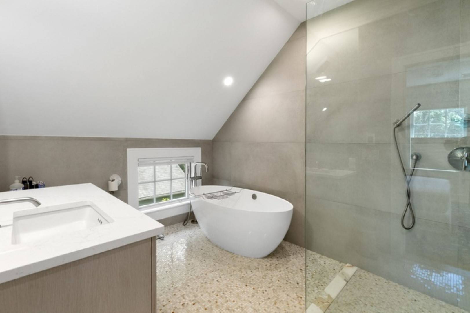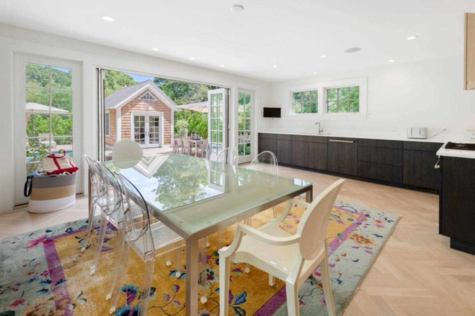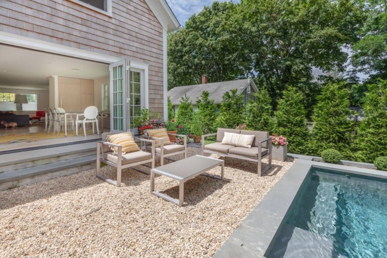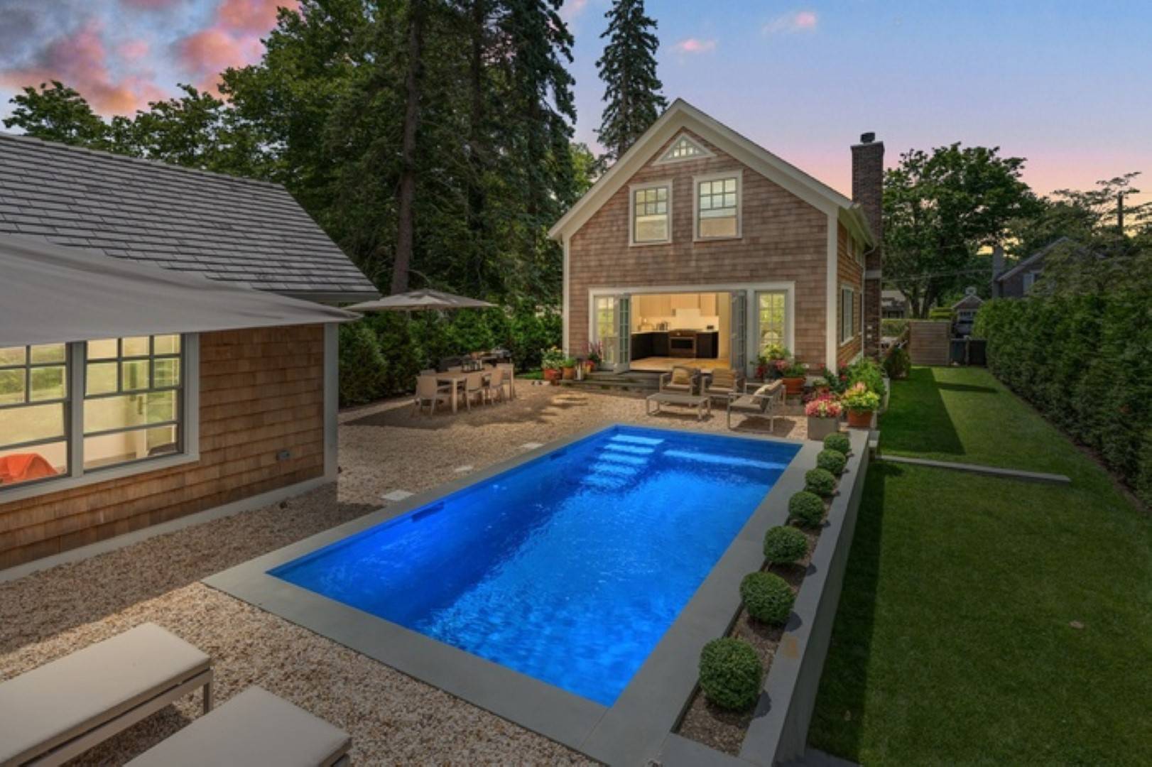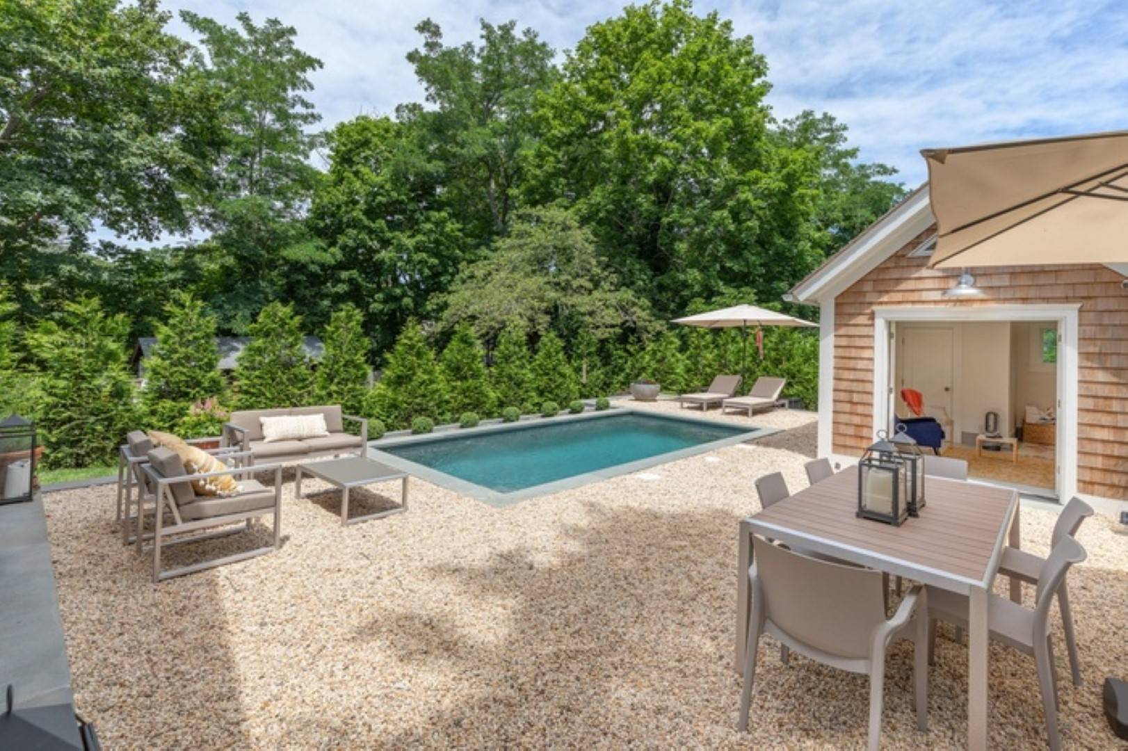 This newly renovated home in Sag Harbor Village has been completely remodeled is the perfect summer rental. Located just . 5 miles to the Village, you can be in the heart of Sag Harbor in no time. Haven's beach is close by, no car needed. The first floor offers an open concept living, dinning and kitchen which leads to beautifully designed back yard. Second floor features the three bedrooms, the primary is ensuite and the other two guest bedrooms share a full bath. There is also a fully finished basement with media room. There is a pool house and heated gunite pool for you to enjoy endless summer days.