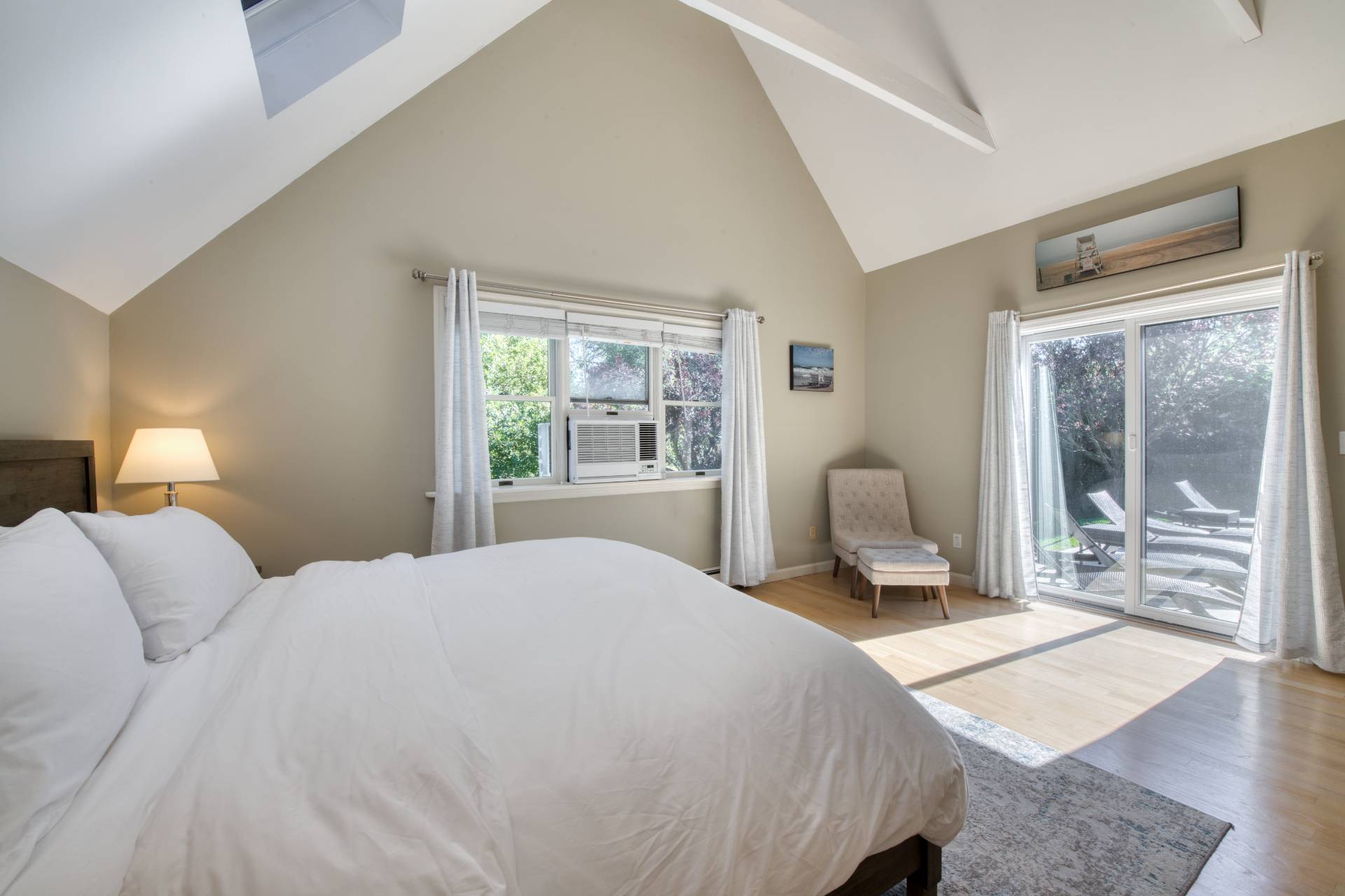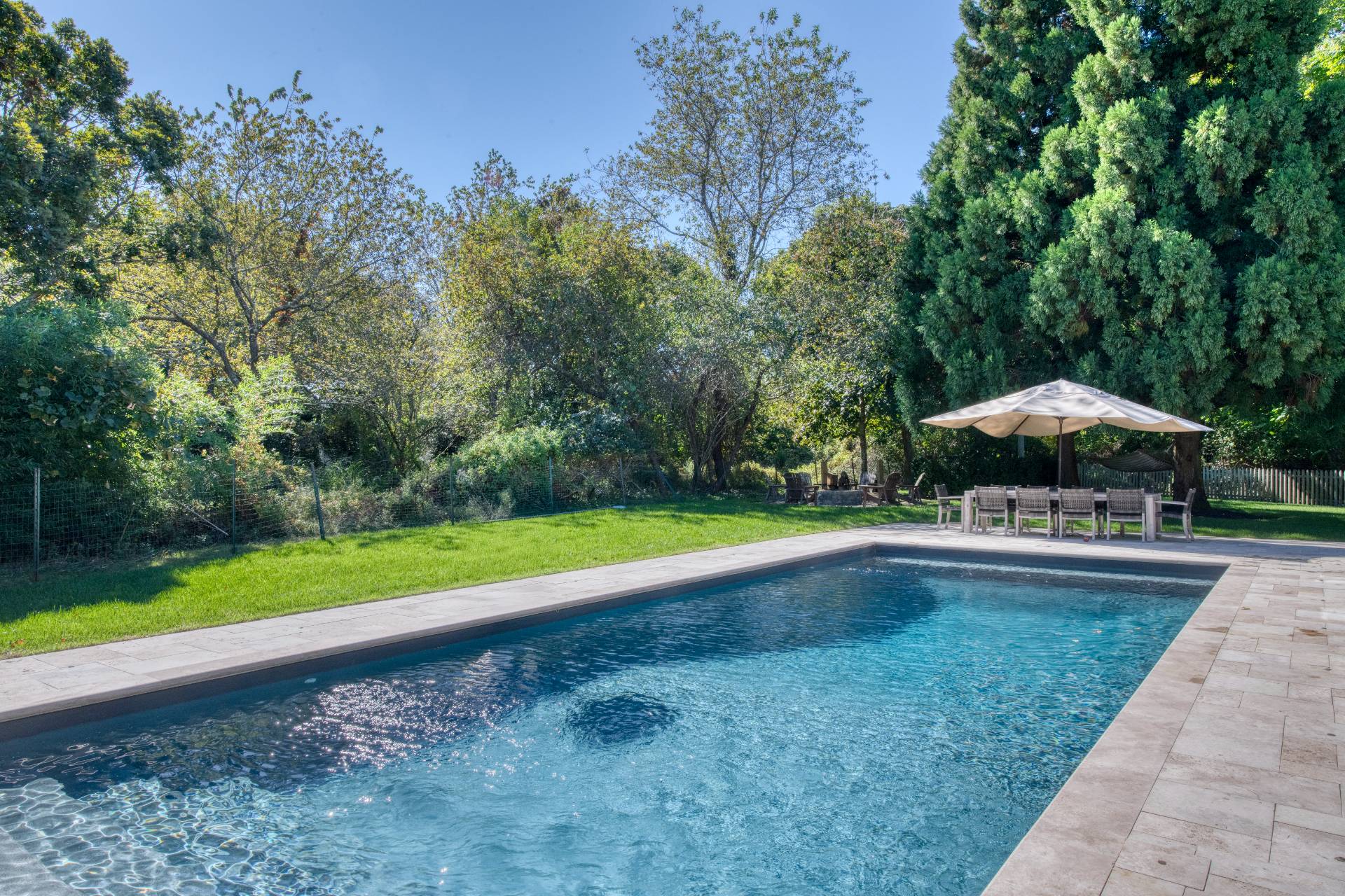 Nestled on a private cul-de-sac, this beautifully renovated five bedroom, three bath home, is set on a lush . 75 acres, perfectly located near golf, surfing, tennis and town. A welcoming covered porch leads into an inviting living area. Wander into the open Kitchen, dining and living room, anchored by a large stone fireplace on one side and sliders leading to the resort-like back yard. Beautifully appointed bedrooms and baths are renovated, generous and bright. Built for Summer living, the yard features a large pool, a cozy fire pit and expansive outdoor living spaces. With plenty of space to work, entertain or relax, this home is a perfect place for everyone!