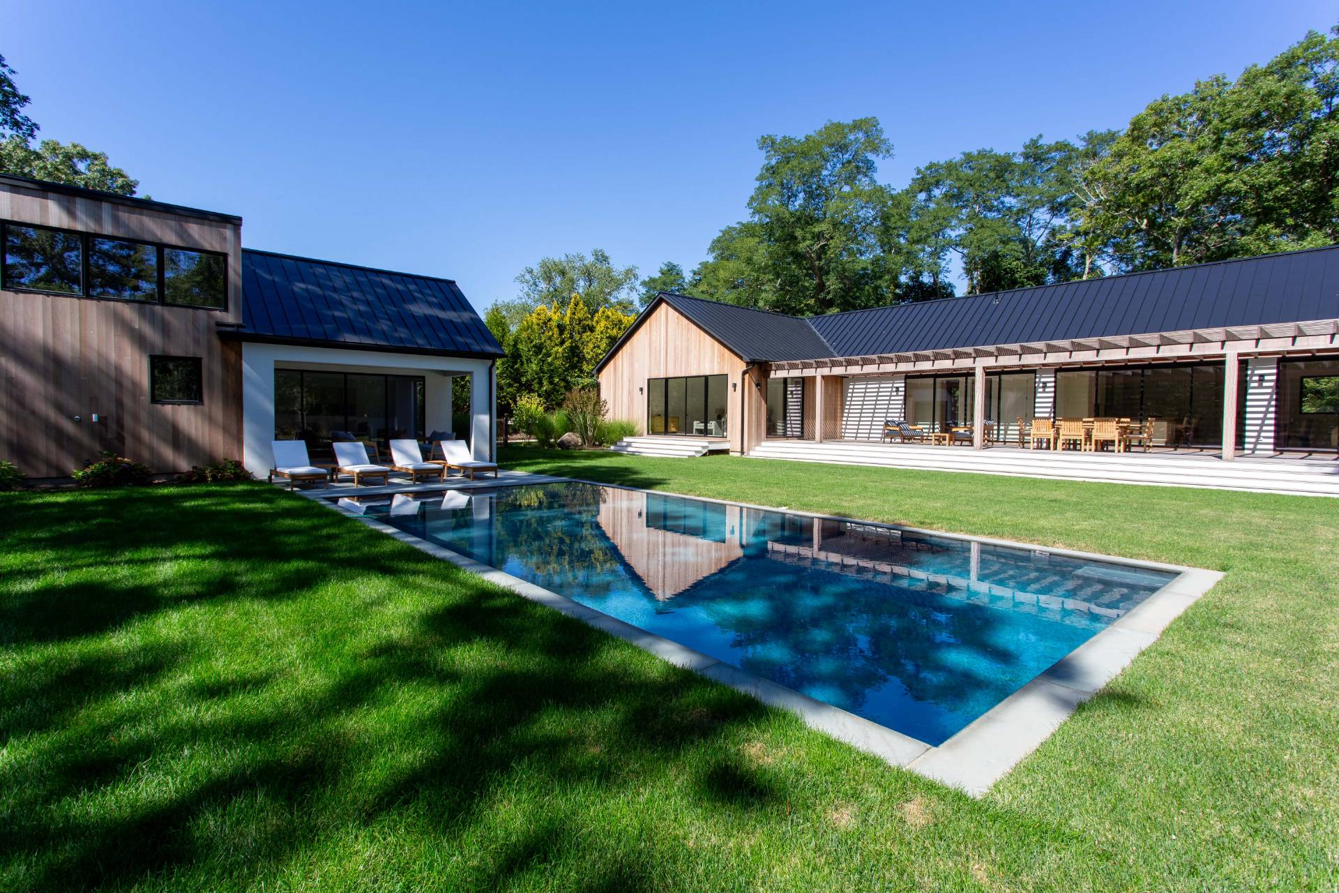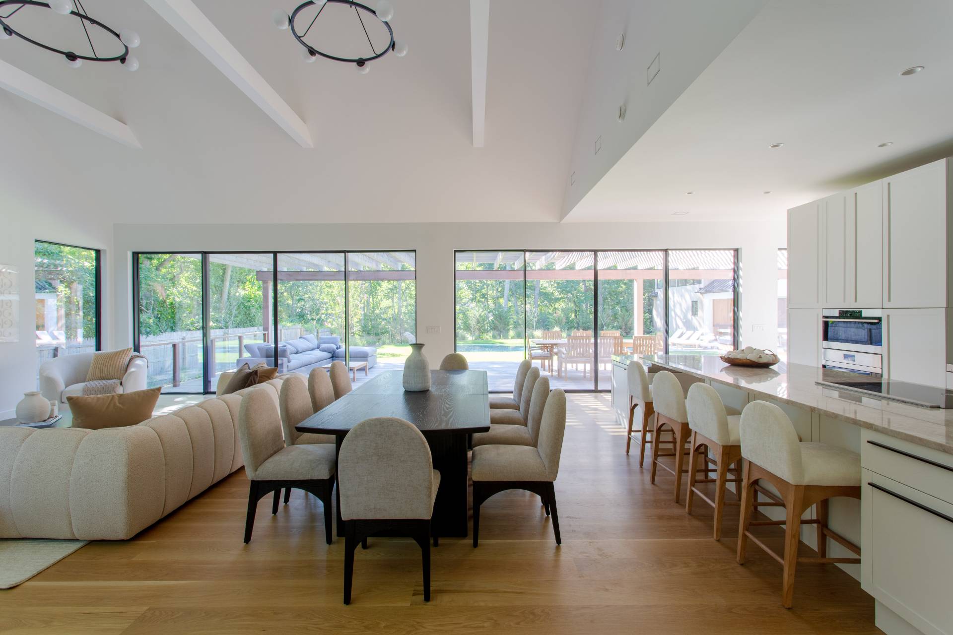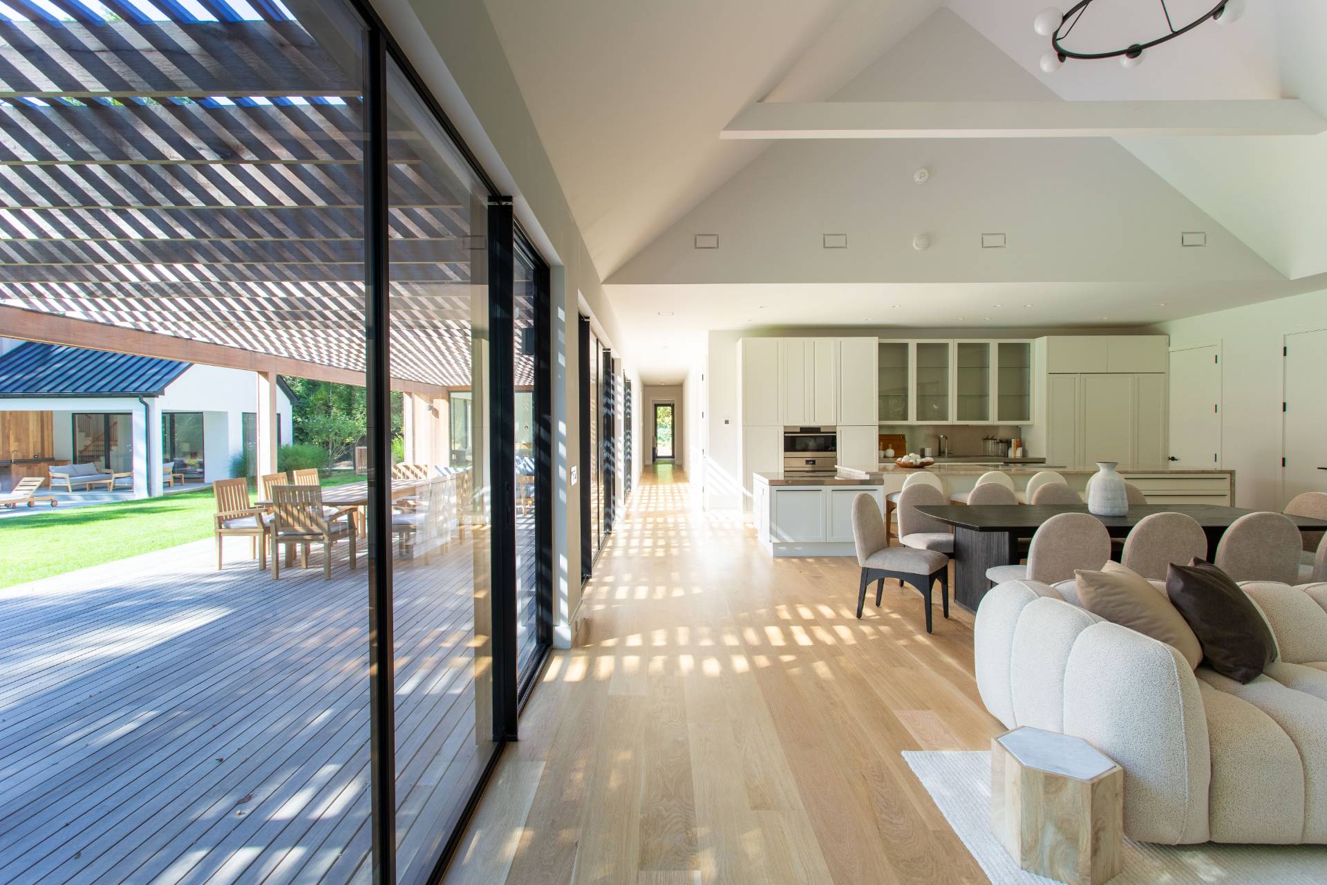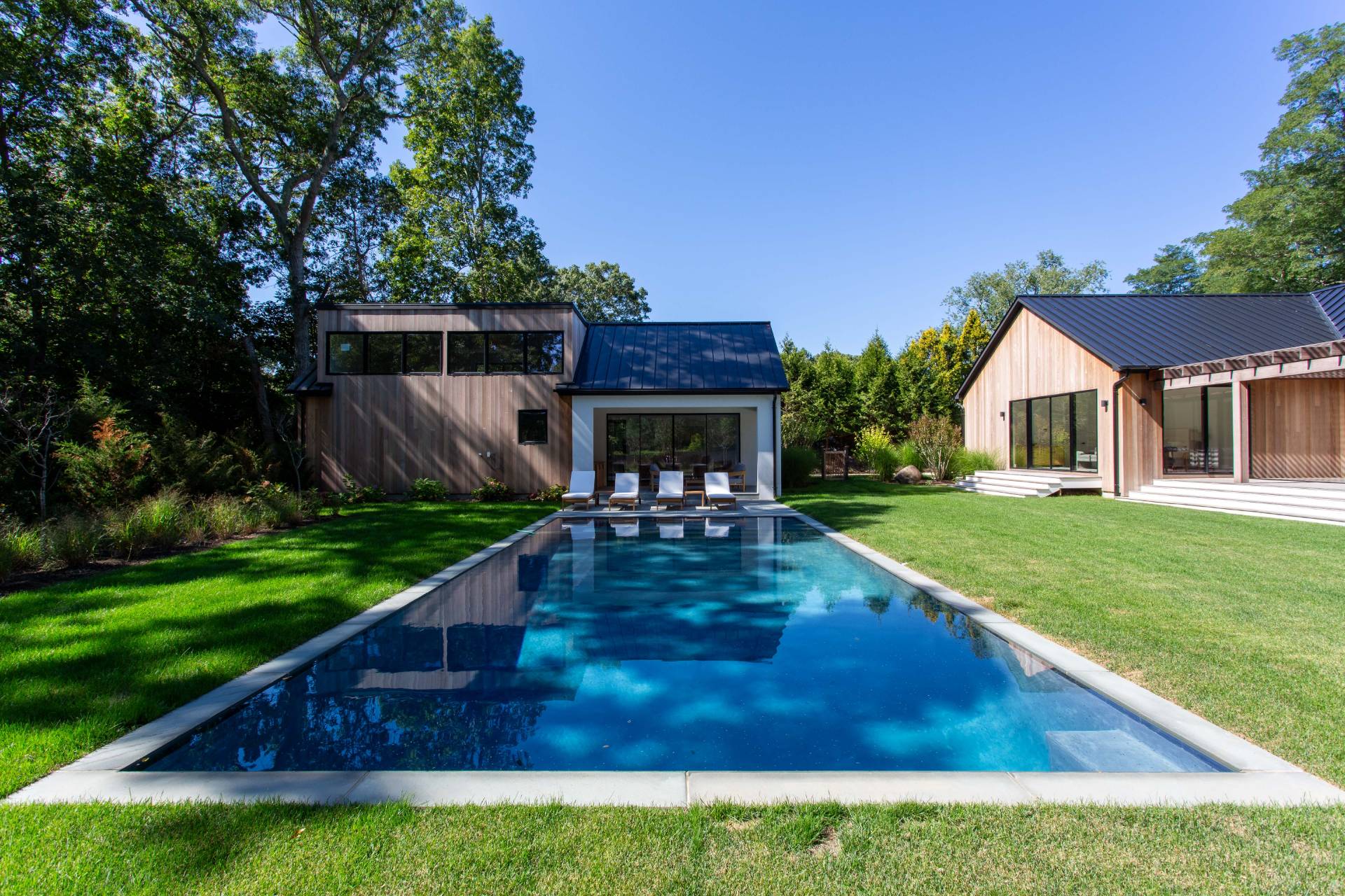 This pristine modern farmhouse is located in the much sought-after Bridgehampton hamlet, within reach to the famous equestrian farms, and a quick drive to the village shops, restaurants as well as the amazing wineries. The convenient single-level home was designed, with attention to every detail, by a local architect, and all elegant interiors were carefully furnished to offer sophisticated and relaxing living. From the moment of entering this beautiful home through a welcoming foyer, one can admire the flowing seamless living spaces with vaulted ceilings and perfect blend of luxury and functionality. The state-of-the-art kitchen with all modern appliances and elegant dining spaces guarantee excellent culinary experiences. Guests will find cozy accommodations set up in six spacious bedrooms, each designed like a private serene retreat. The meticulously designed outdoors of an impressive 0. 94 acre, boasts heated gunite pool and ample outdoor entertaining and dining areas, as well as a pool pavilion. Chic and exceptionally designed home, offering the full Hamptons experience is available for short term, summer or year-round stay. New to the market, not to be missed !