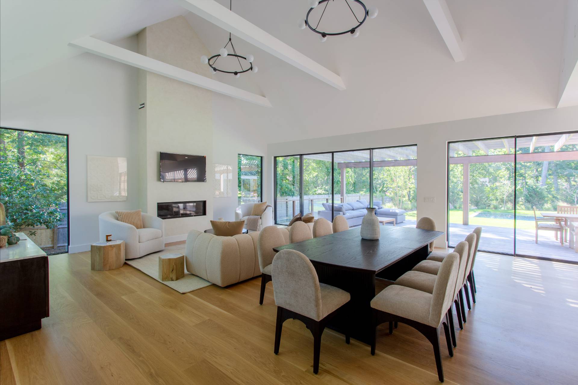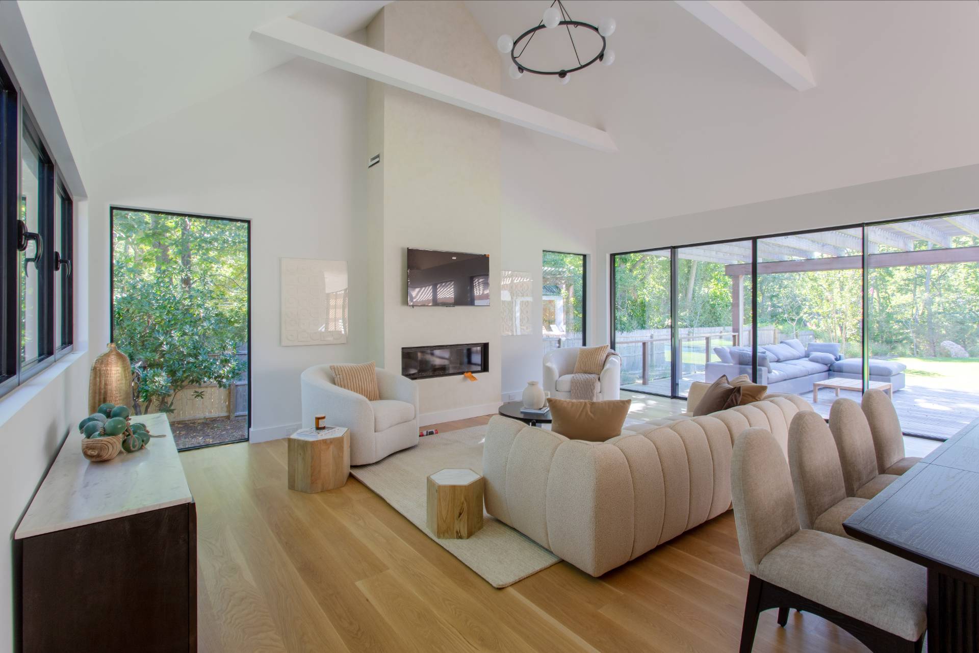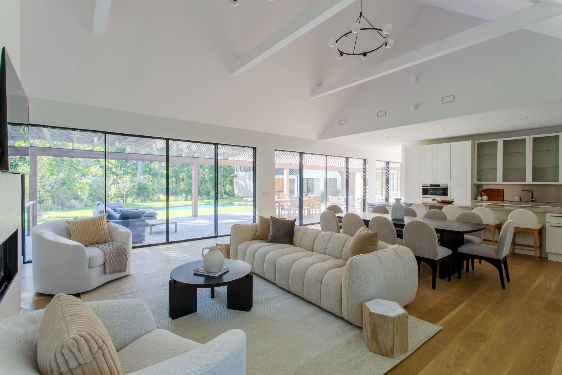 This pristine modern farmhouse is located in the much sought-after Bridgehampton hamlet, within reach to the famous equestrian farms, and a quick drive to the village shops, restaurants as well as the amazing wineries. The convenient single-level home was designed, with attention to every detail, by a local architect, and all elegant interiors were carefully furnished to offer sophisticated and relaxing living. From the moment of entering this beautiful home through a welcoming foyer, one can admire the flowing seamless living spaces with vaulted ceilings and perfect blend of luxury and functionality. The state-of-the-art kitchen with all modern appliances and elegant dining spaces guarantee excellent culinary experiences. Guests will find cozy accommodations set up in six spacious bedrooms, each designed like a private serene retreat. The meticulously designed outdoors of an impressive 0. 94 acre, boasts heated gunite pool and ample outdoor entertaining and dining areas, as well as a pool pavilion. Chic and exceptionally designed home, offering the full Hamptons experience is available for short term, summer or year-round stay. New to the market, not to be missed !