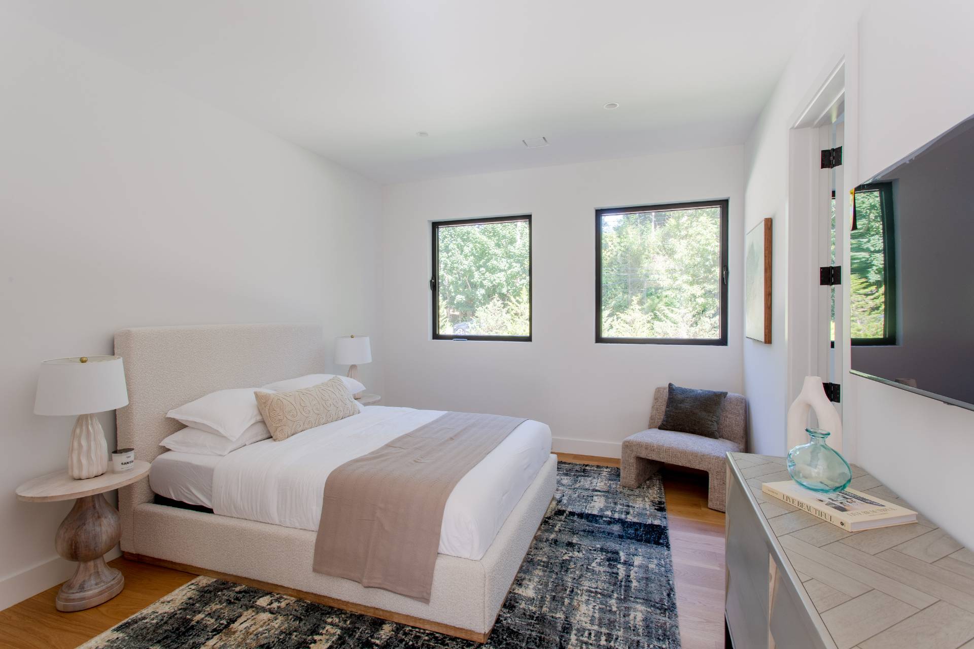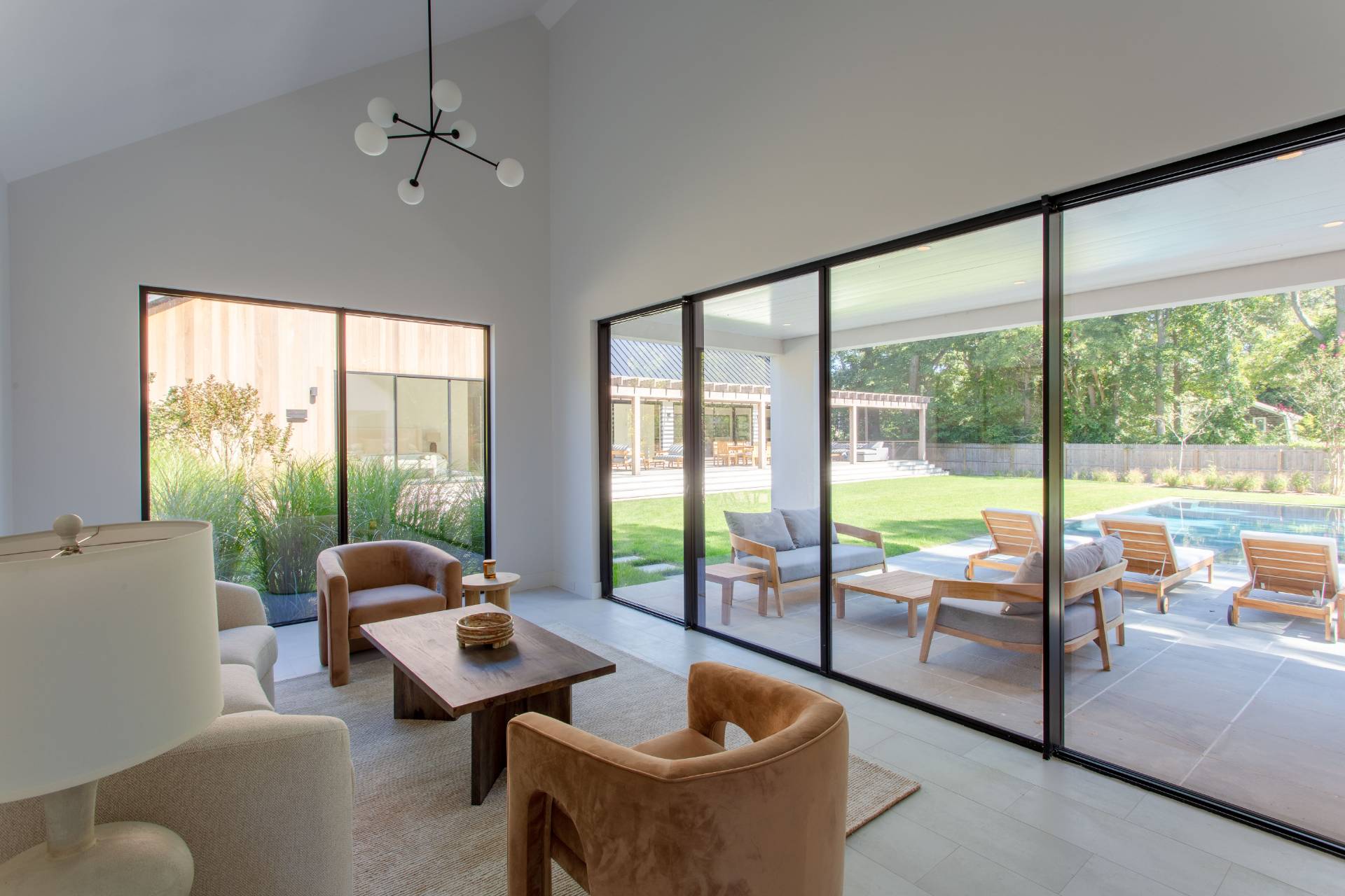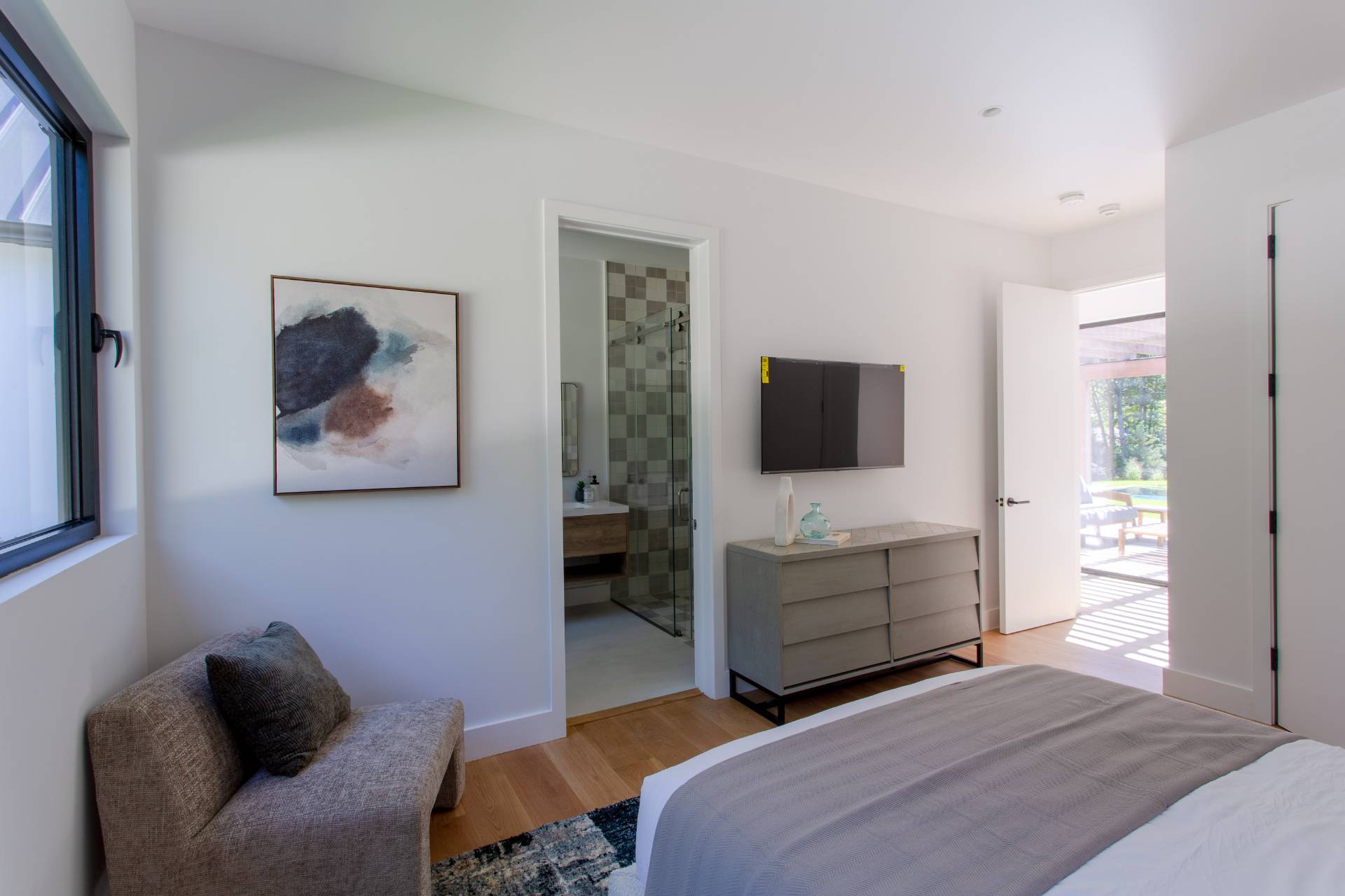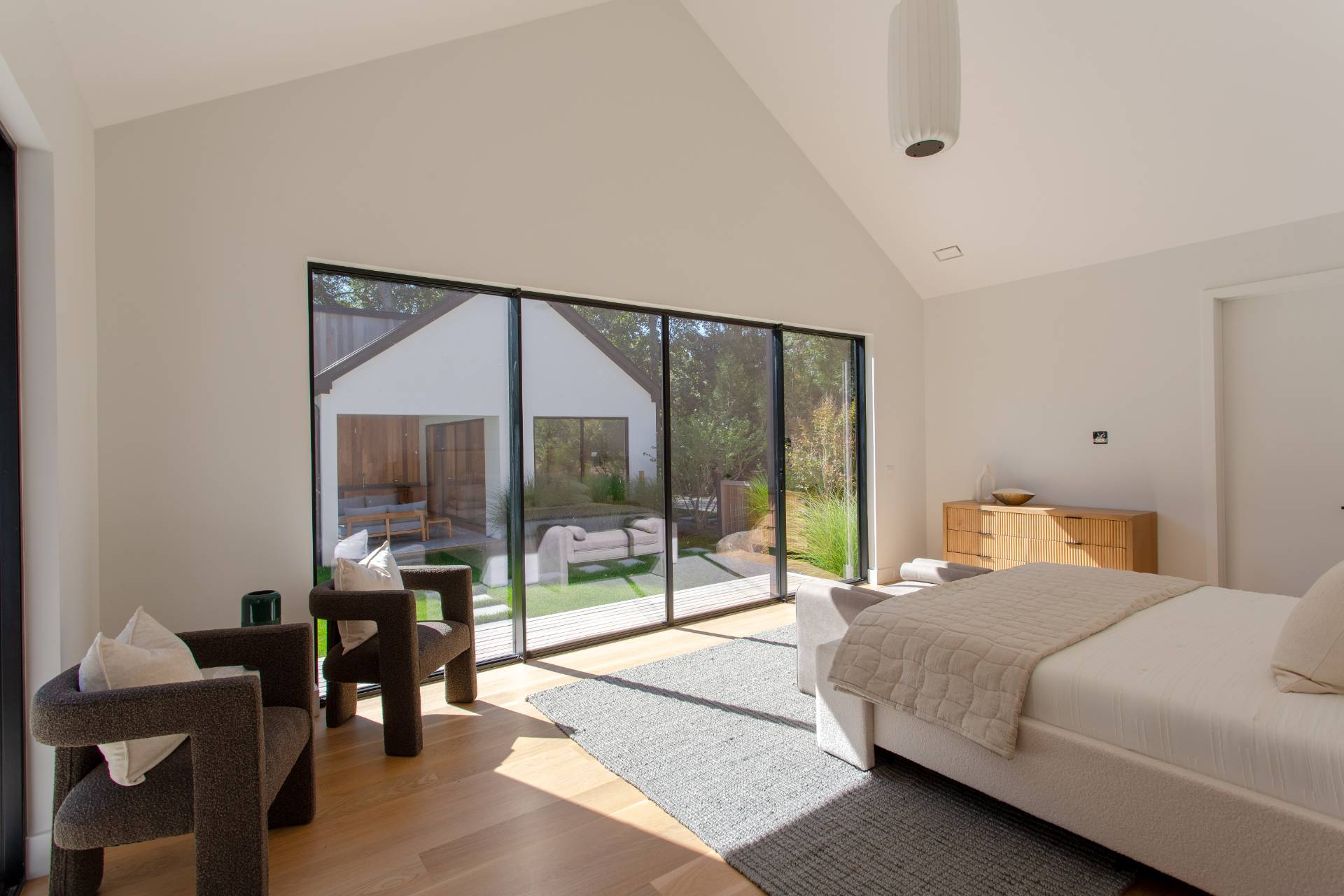 This pristine modern farmhouse is located in the much sought-after Bridgehampton hamlet, within reach to the famous equestrian farms, and a quick drive to the village shops, restaurants as well as the amazing wineries. The convenient single-level home was designed, with attention to every detail, by a local architect, and all elegant interiors were carefully furnished to offer sophisticated and relaxing living. From the moment of entering this beautiful home through a welcoming foyer, one can admire the flowing seamless living spaces with vaulted ceilings and perfect blend of luxury and functionality. The state-of-the-art kitchen with all modern appliances and elegant dining spaces guarantee excellent culinary experiences. Guests will find cozy accommodations set up in six spacious bedrooms, each designed like a private serene retreat. The meticulously designed outdoors of an impressive 0. 94 acre, boasts heated gunite pool and ample outdoor entertaining and dining areas, as well as a pool pavilion. Chic and exceptionally designed home, offering the full Hamptons experience is available for short term, summer or year-round stay. New to the market, not to be missed !
