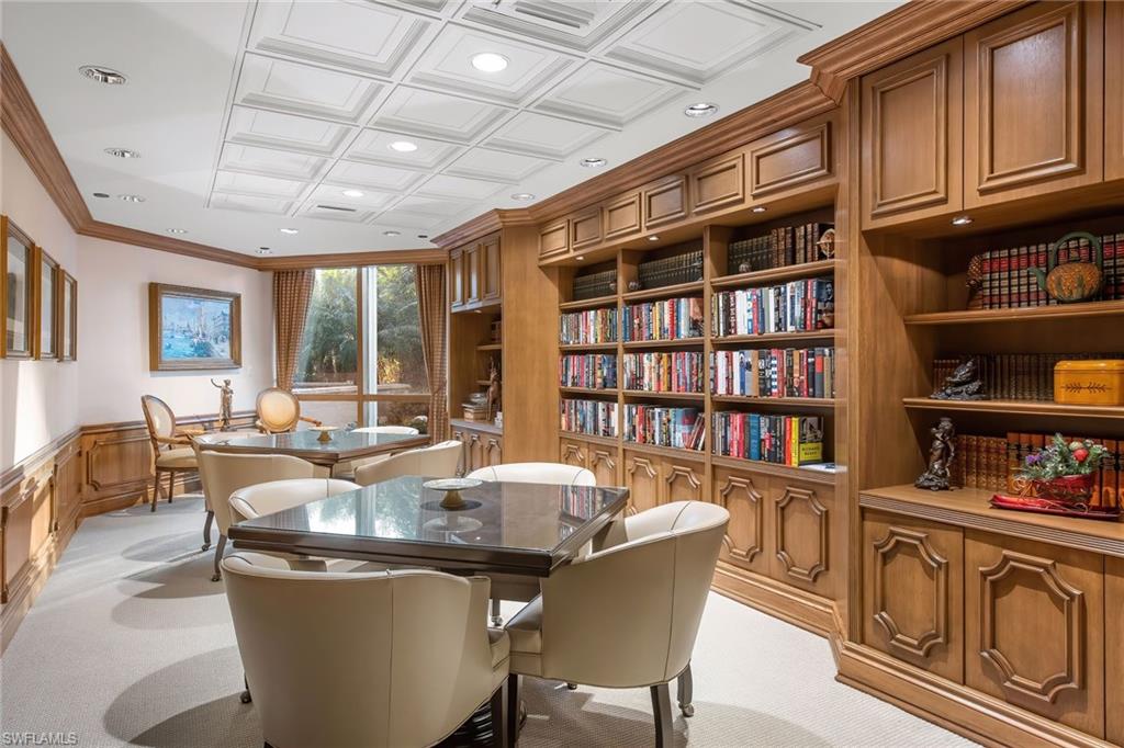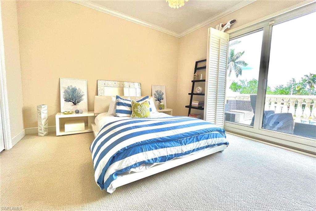 A scenic courtyard path leads directly to the beach, while a private boat slip (available for purchase) would allow you to conveniently dock your boat immediately across the street. The villa's elegant interiors include marble floors, multiple wood burning fireplaces, and a spacious primary suite with partial Gulf views from its private enclosed balcony.