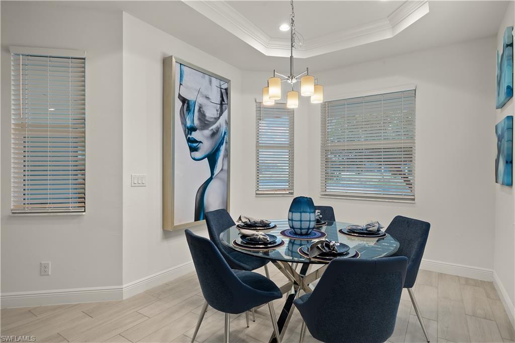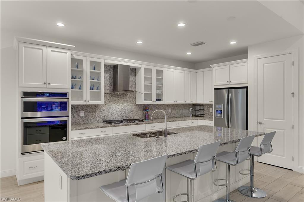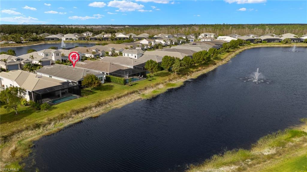 Welcome to this 2020 Toll Brothers Luxury build located in the private community of Azure at Hacienda Lakes. This 3 Bedroom 2+ Bath is designed with entertainment in mind. Walk through the elongated foyer into the expansive open design of your living, dining, and gourmet kitchen. The oversized kitchen island seperates your entertainment space from the kitchen and boasts 4 bar stools. From there, exit the large double sliding doors to your covered oversized screened in lania with beautiful lake views perfect for outdoor entertainment. Walk back in directly to the large master bedroom with an oversized walk-in closet and large master ensuite. Azure at Hacienda Lakes offers a large community club house with Billards, Library, Pickeball, Community Pool Hot tub and Spa. The community is known for its well lit sidewalks perfect for afteroon family walks. Take advantage of this centrally located single family home only a short drive away from Downtown Naples and Marco Island.
