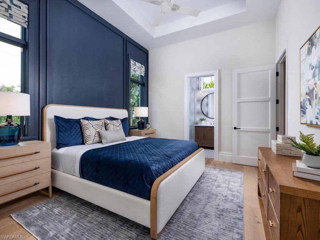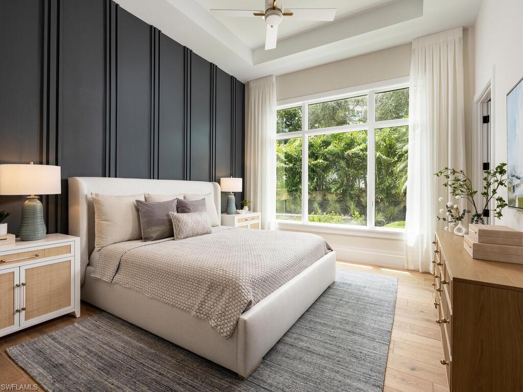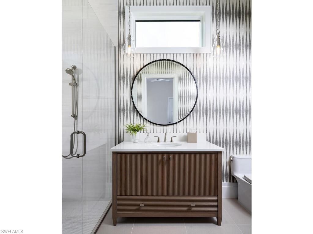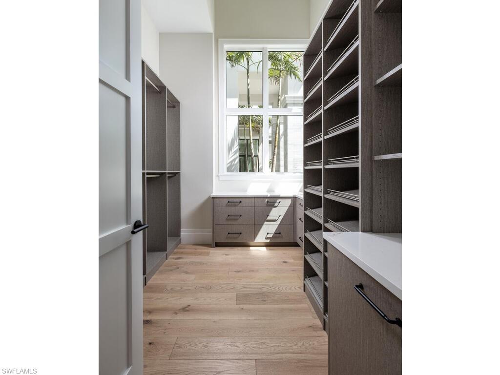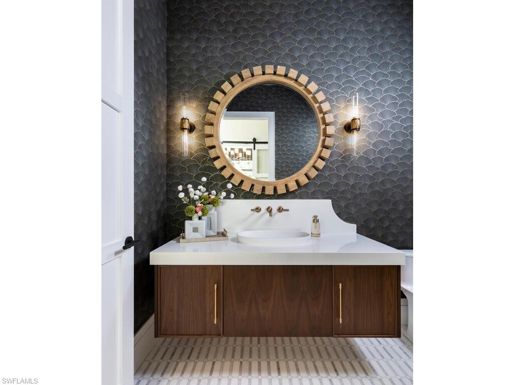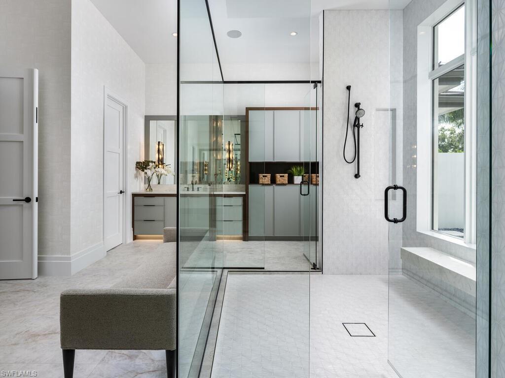 McGarvey Custom Homes presents an extraordinary new construction estate in one of Naples’ most sought after locations. This architectural masterpiece blends timeless sophistication with modern luxury, offering private resort style living just moments from world class beaches, dining, and shopping. From the moment you arrive, the property makes an unforgettable impression with dramatic architectural lines and honed quartzite elevation accents. Custom Cantera steel double entry doors open to a stunning glass lined foyer that frames views of the expansive outdoor oasis. Two gated driveway entrances lead to an impressive brick paver motor court offering both convenience and security. Alfresco ready, the residence features an exceptional outdoor living area complete with water features, a custom pool, spa, sun shelf, outdoor kitchen, dining area, fireplace, and a separate firepit—perfect for relaxing or entertaining. Shellstone porcelain deck pavers, lush tropical landscaping, a mosquito mist system, and automated screens and hurricane shutters enhance both comfort and peace of mind. Inside, the home’s designer curated interiors deliver unmatched refinement. The plan includes five spacious bedrooms, six full baths, two half baths, a private study, and a versatile flex room. A divided layout provides ultimate privacy, with the luxurious primary suite on its own wing. Throughout the home, you’ll find distinctive ceiling details with accent lighting, French oak hardwood flooring, level 5 smooth-walls, and beautifully executed tilework. The gourmet kitchen is a chef’s dream, featuring bespoke cabinetry, an oversized island with Caesarstone Darcrest honed quartz, Pompeii quartz perimeter countertops, designer plumbing fixtures, and a Sub Zero/Wolf appliance suite. Under and above cabinet lighting with glass accents highlight the craftsmanship and create a warm, inviting atmosphere. The primary suite is a serene retreat with panoramic views of the pool and lush rear grounds. The spa inspired bath offers a freestanding soaking tub, walk in shower, dual vanities, premium cabinetry, quartz countertops, and his and her water closets featuring Toto automated toilets. Walk in closets with custom storage and a private courtyard view complete the space. A morning bar and undercounter refrigerator add an extra layer of indulgence. Designed with modern living in mind, the home features an advanced low voltage electrical systmem, automated lighting controls, whole home standby generator, landscape lighting, and wiring for data, voice, and video. Efficiency and comfort are further enhanced by Icynene spray foam, sound batt insulation, high efficiency HVAC with dehumidification system, tankless gas water heaters with recirculation, and a 1, 000 gallon propane tank. Fully furnished by Tina Marie Interiors, this exceptional estate offers a rare opportunity to own a luxury residence that merges exquisite design, premium craftsmanship, and the best of Naples’ lifestyle.