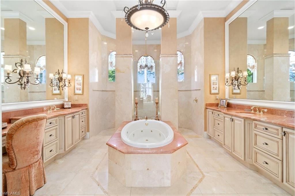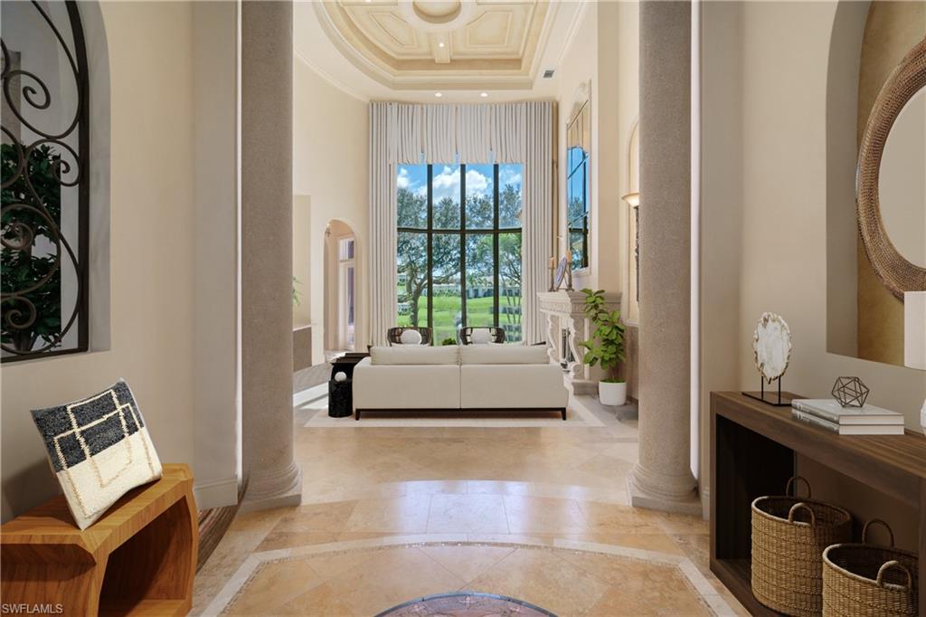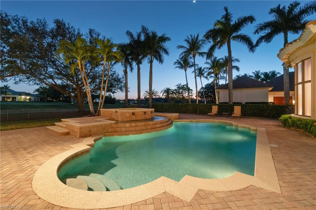 OPTIONAL TRANSFERRABLE GOLF MEMBERSHIP AVAILABLE FOR IMMEDIATE GOLF. Welcome to this stunning home located in the prestigious community of Quail West in Naples, Florida. Quail West is one of the premier golf course communities in Southwest Florida, with 2 golf courses, 8 tennis courts and 4 pickle ball courts, plus much more. As you step onto the property, you are greeted by lush landscaping that enhances the home’s curb appeal. This luxurious 4BR+Den home offers FANTASTIC REAR VIEWS OF THE GOLF COURSE AND LAKE and is the epitome easy living in Florida. Located on the 10th hole of the Lakes course, this southern exposure setting makes for breath taking sunset views over the 42' pool with spa. Upon entering the home through the 12' high wood doors you are greeted with an elegant and spacious interior, with high ceilings and large windows that flood the home with natural light, creating a bright and welcoming ambiance, not to mention the amazing views. Everything is top-of-the-line with custom cabinetry and finishings. The master suite is a true sanctuary with a morning coffee bar, luxurious en-suite bathroom with 2 separate commode areas, bidet, double shower, jetted tub and generous closet space. Additional en-suite bedrooms are spacious and thoughtfully designed, accommodating family and guests comfortably. The gourmet kitchen is a chef's dream, complete with modern appliances, 2 dishwashers, 2 sinks, warming draw, built-in miele coffee maker, ppt-filler, butlers pantry, ample counter space and a breakfast bar which is perfect for entertaining guests and culinary enthusiasts. The wine room is centrally located off the dining room, kitchen and living room with wet bar. Library is tastefully done with Brazilian cherry flooring, wood built-ins and custom ceiling. The living area opens to an expansive patio that is ideal for alfresco dining, lounging, or simply soaking in the beautiful Florida sunsets. Outdoor kitchen/lanai has built-in gas grill, bar refrigerator and sink with screened in area. 3-car attached over-sized garage plus a detached golf cart garage connected by a porte-cochere in the court yard. 500 gallon Underground propane tank for cooking and heating the pool/spa. 5900 Burnham Rd is a rare find that promises to elevate your living experience on one of the most desirable streets within Quail West with both golf and water views and located in Collier county. Close to the club house, golf and all the amenities that Quail West has to offer. This home offers easy access to Naples' renowned beaches, shopping, dining, and cultural attractions. Whether you’re seeking an active lifestyle or a peaceful retreat, Quail West has it all. This is a home is being sold furnished with designer furniture, so don’t miss this opportunity to own a slice of paradise in Naples! Discover the endless possibilities that await you at this remarkable property.