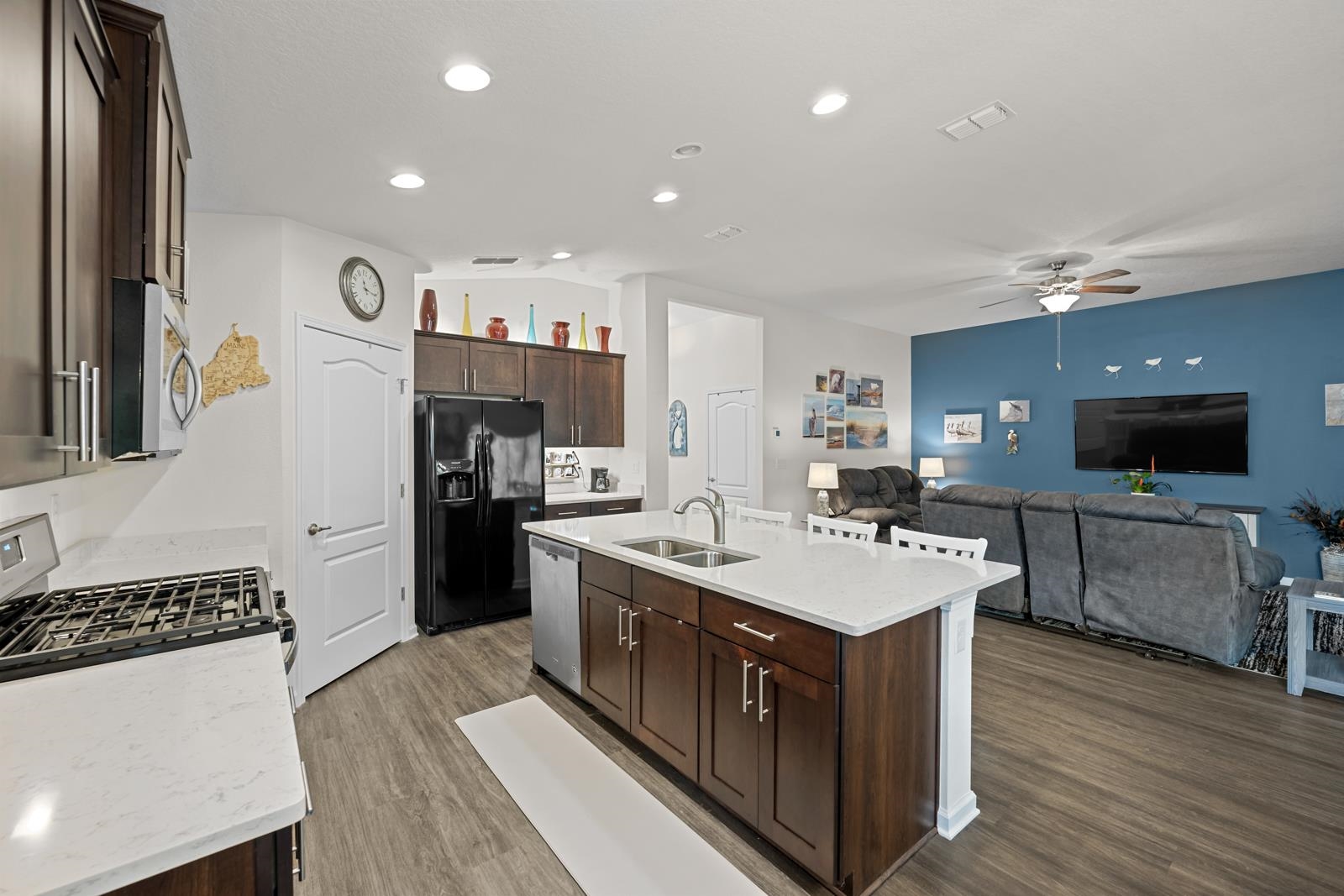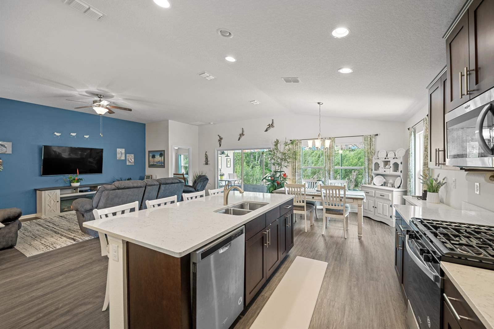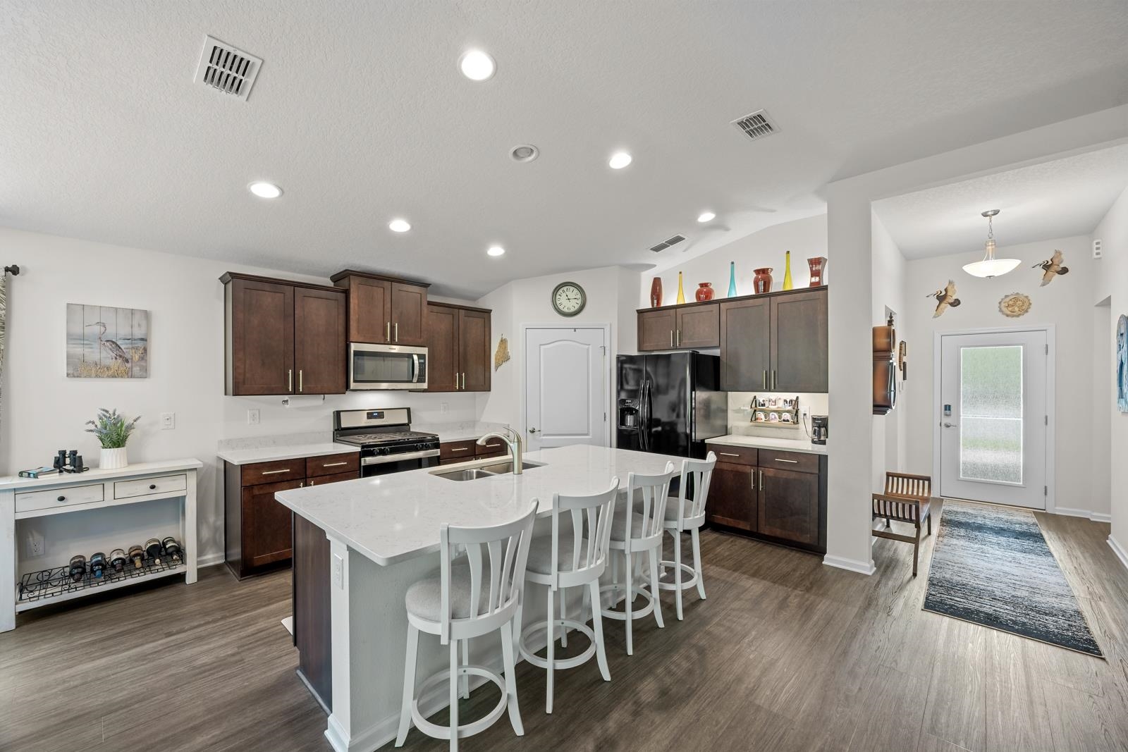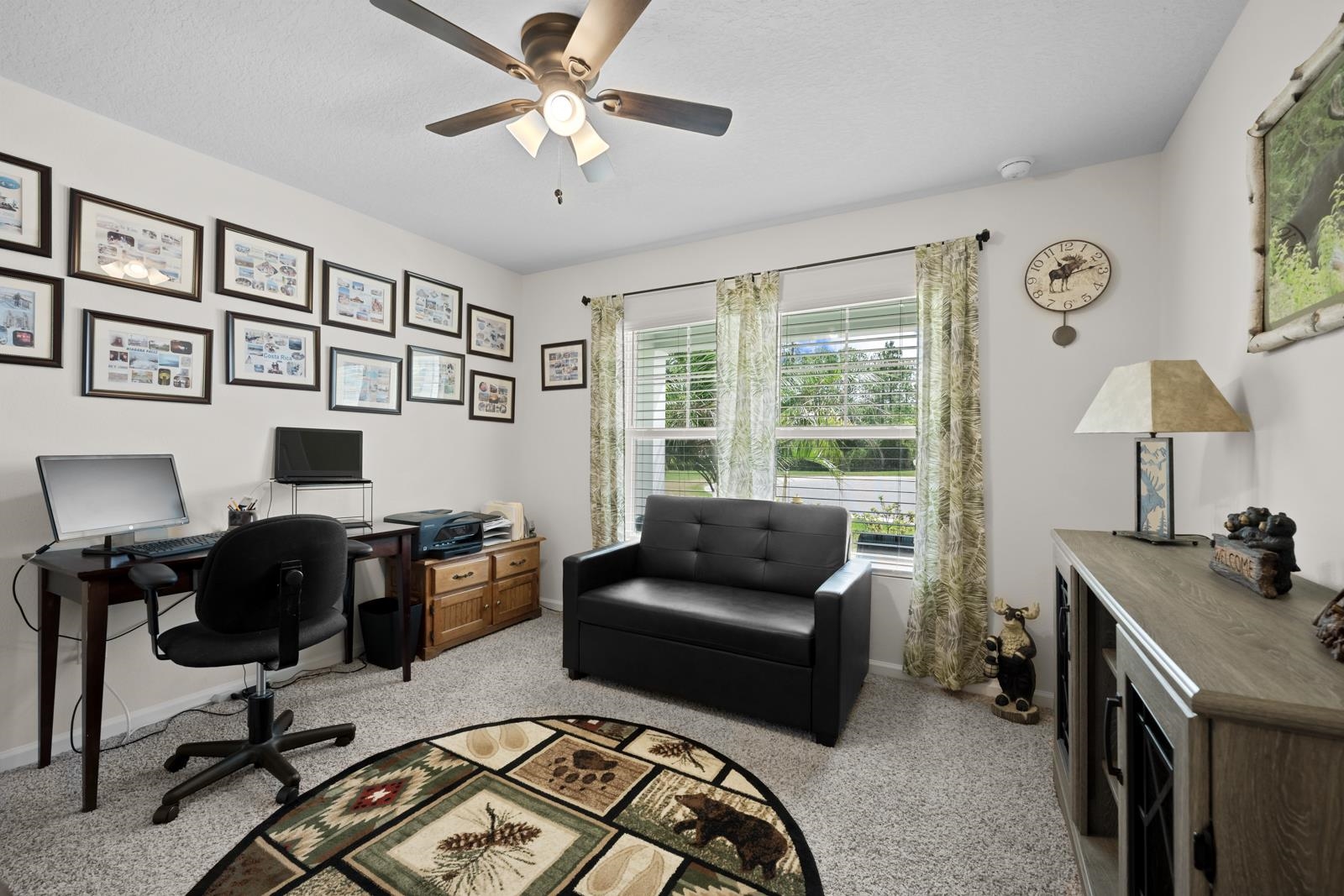Tranquil Living on the Pond in This Exclusive Gated Golf Community Grand Reserve. The Avon model is the envy of the neighborhood with this ideal end of cul-de-sac location. Two screened lanai's and added paver area for outdoor grilling while overlooking the serene pond and watching the deer, turkeys, and many birds. The kitchen is equipped with quartz countertops, large center island, walk-in pantry, tons of counter space, and gas stove for the best gourmet cooks. Private owner's suite with double vanity, large walk-in shower and closet. This SMART home is ideal for snowbirds with remote operation of thermostat, door locks, door camera, water softener, etc. Enjoy the daily and weekly activities that the resort-style amenity center has to offer, such as Olympic size pool, pickleball, bocce ball, fitness center, bingo, poker, hobby groups, book clubs, game nights, outdoor group firepits, etc. Within the community, just a short golf cart ride (or stroll) away is a highly recognized public golf course with club house. Short distance is shopping (3mi), beach (8mi), airport (31mi) I95 (5mi), hospital (5mi). Home is located in 55+ gated community however, you only need to be 18+ to live in this community. This Home is Move-In Ready!