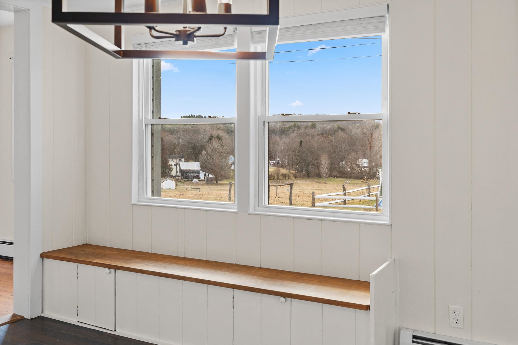 New Price! Fabulous Four Bedroom Farmhouse. Updated kitchen with new stainless steel appliances. Take in the mountain view through your newer windows over the new stainless steel sink and subway tile backsplash. Natural light graces this spacious home. The first-floor primary bedroom has a private walk-out deck overlooking the large level backyard. The generous living room opens up to a dining area just off the eat-in kitchen. The first floor laundry room, full bathroom, and a second bedroom round out the first floor. The second level features two additional bedrooms, a second bath and an office/ bonus space. Easy first-floor living and comfortable family flow. The full poured concrete basement with a new Buderus Boiler, 200 amp electrical service, and a spacious workshop. Enjoy newer windows, fresh paint, a metal roof, two generous decks and large storage shed all on a lovely corner lot. This home is located in Shaftsbury, bordering the Village of North Bennington so school choice may be an option. Don't miss out on this spacious home with mountain views, close to beautiful walking trails and all amenities. Such as restaurants, deli, library, Lake Paran's swimming and fishing, the Park -McCullough Historic Governor's Mansion with Farmer's Markets and so much more. Some photos have been digitally staged. Come discover the charming Village of North Bennington! Call today.