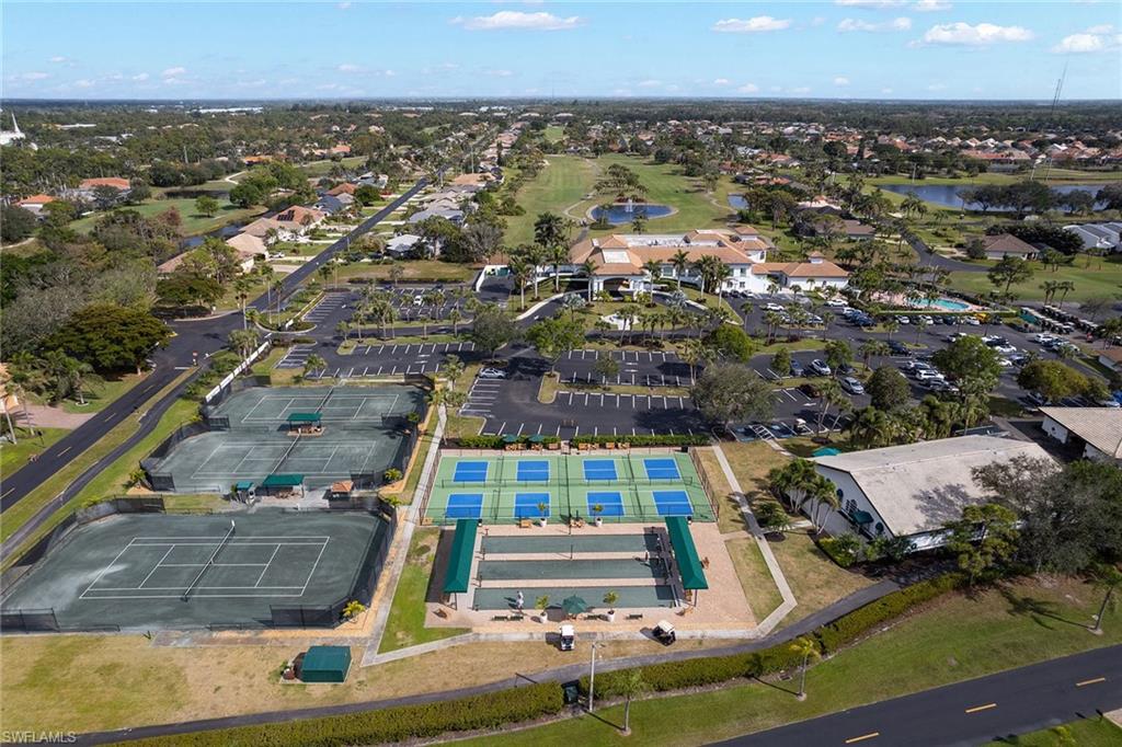 Built with pride on a premium lot with direct views down the third fairway of the east course, this Toll Brothers home has been immaculately maintained. Super location close to shopping, restaurants, beaches and airport. Relax after a round of golf in the saltwater pool featuring a waterfall and a shallow seating area for toes in the water. Bring the outdoors in under the extended screened lanai, outdoor kitchen with gas grill, wall-mounted TV, surround sound inside and out, fantastic golf course and sunset views. Inside boasts a chef approved kitchen with two wall ovens, rich wood cabinetry with granite countertops and backsplash, additional lighting and an expansive island. Plantation shutters throughout, glass French doors to the office's entry and tinted hurricane windows throughout. The garage can accommodate two cars and a golf cart, has an epoxy finish on the floor, and built-in storage units. HOA covers lawn maintenance, irrigation, internet, cable TV and social membership to the club. Spanish Wells offers a 27-hole, desirable golf course, and country club offers formal and casual dining, tennis, pickleball, bocce courts and a fitness center with classes.