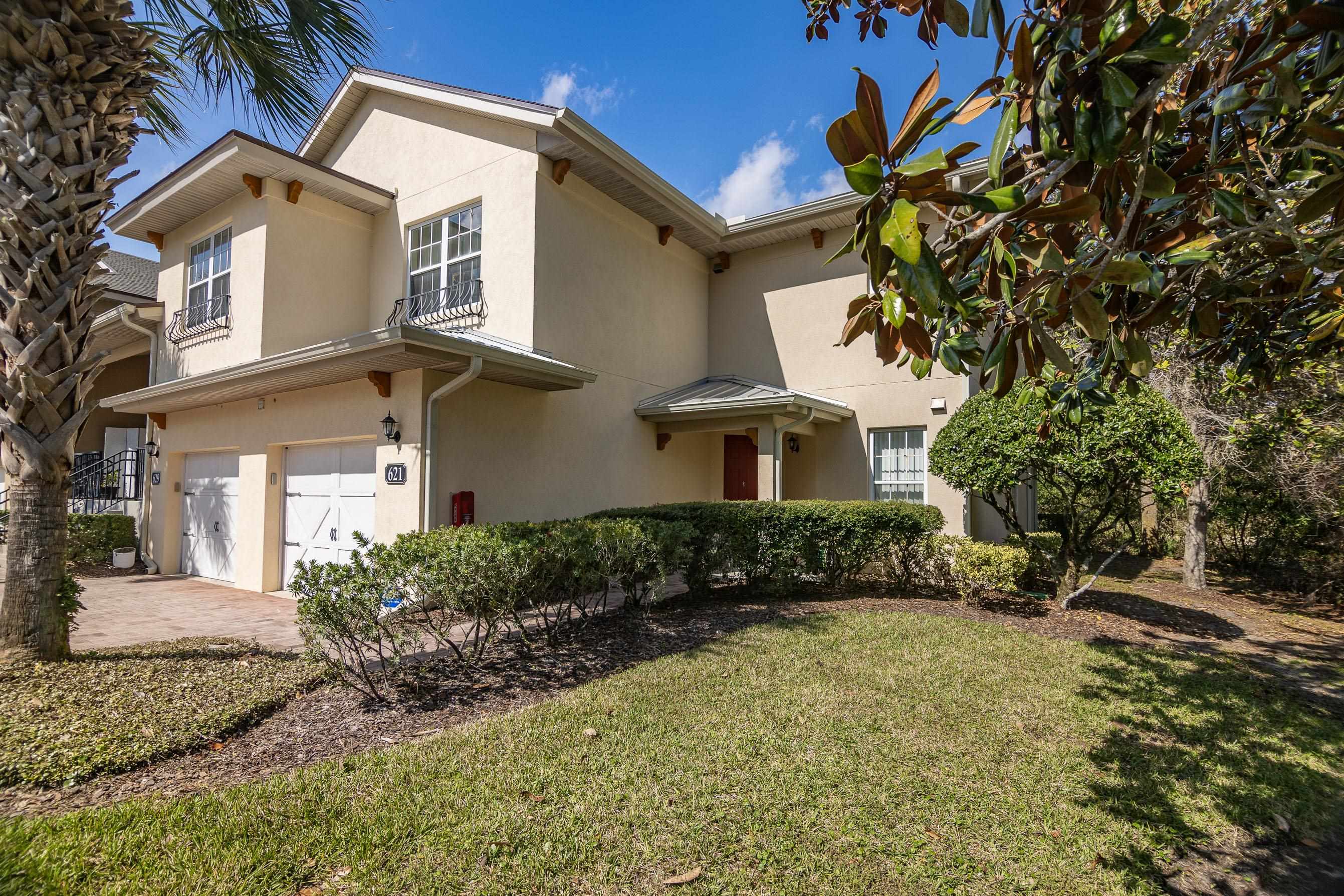 BACK ON THE MARKET! Buyer could not get financing! Welcome to 621 Shores Blvd, a beautiful ground-floor corner unit offering 3 bedrooms, 2. 5 baths and picturesque views of the St. Augustine Shores Golf Course. This meticulously maintained unit features several recent upgrades, including high-end vinyl flooring in the living room and primary suite, new fixtures in all bathrooms and the kitchen, a stylish backsplash, new ceiling fans and brand-new stainless steel appliances. Fresh paint throughout adds to the home’s bright and inviting feel. The screened-in lanai is the perfect spot to enjoy your morning coffee while taking in the peaceful golf course views. Inside, you'll find elegant granite countertops and a thoughtfully designed open floor plan. The spacious primary suite offers dual closets, a soaking tub, walk-in-shower, and dual vanities. Two additional guest rooms are situated on the opposite side of the living area, along with a full bath. A convenient powder room and a large laundry room with ample storage add to the home’s functionality. This unit also includes a one-car garage—perfect for secure parking, additional storage, or keeping beach and golf gear organized. Casa Bella condos boast durable concrete block construction and have recently been refreshed with new paint, roofs, and gutters. Residents of The Shores community enjoy an array of amenities, including scenic biking and walking trails, tranquil lakes, a spacious community center along the Intracoastal Waterway, pickleball and tennis courts and a fishing pier. Ideally situated near shopping, dining, the historic district, and pristine beaches, this home offers the perfect combination of comfort and convenience. Don’t miss out—schedule your showing today!