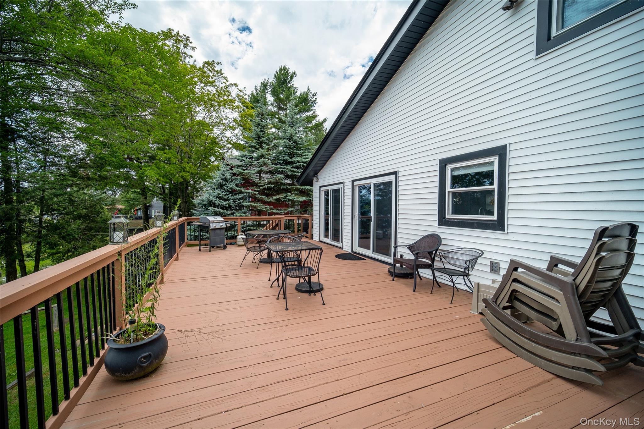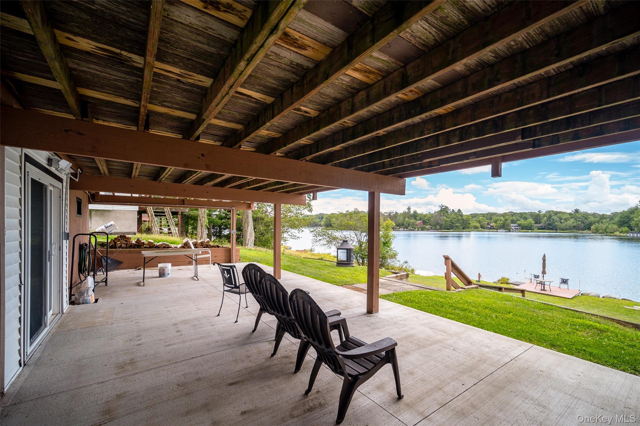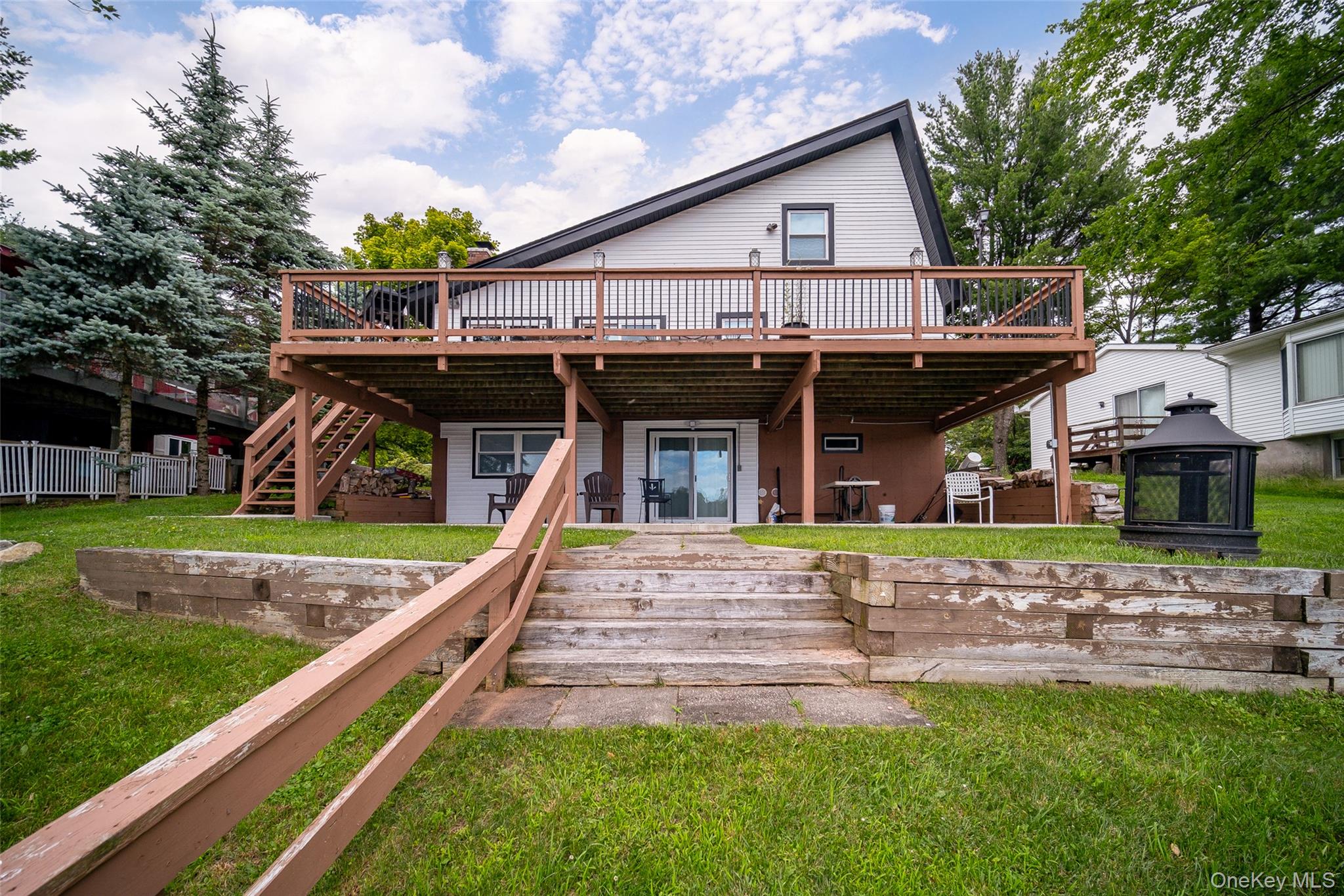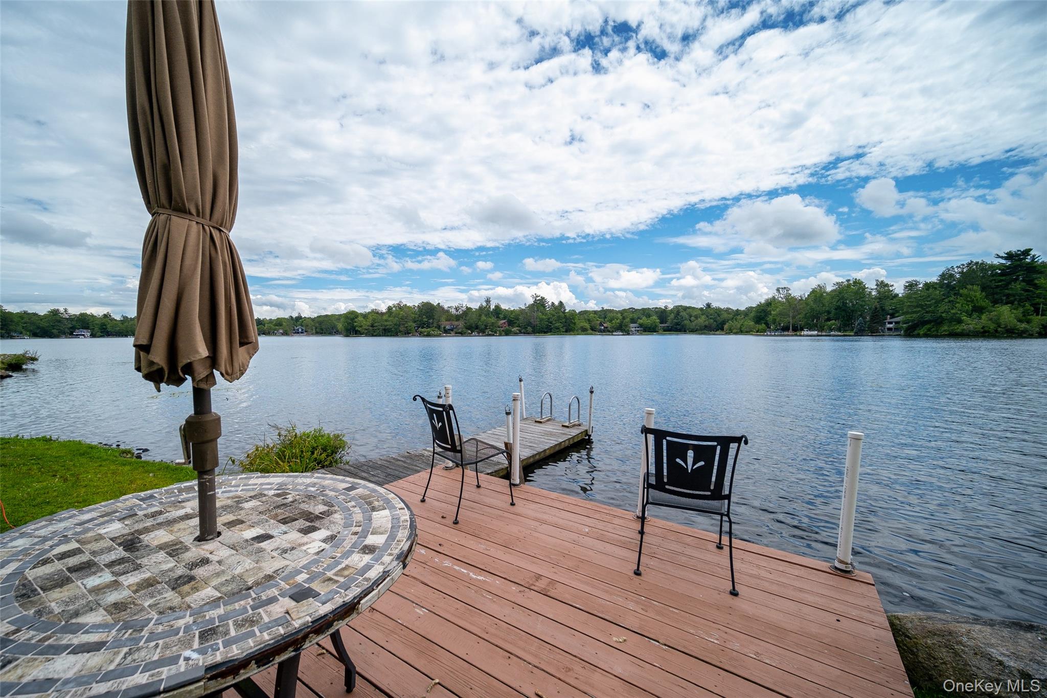 Lake front property on Lake Louise Marie with a beautiful expansive view of the lake and bays. House is beautifully renovated throughout, with open floorplan on main floor, including kitchen, living room, dining room, and primary main bedroom and full bath, all with modern amenities and appliances. State of the art heating and cooling systems as well. Just minutes away from Resorts World Casino and indoor waterpark, Holiday Mountain Ski resort, and not too far from the historical Bethel Woods Performing Arts Center. The house is perfect for all year living, or as a weekend getaway, huge deck and patio overlooking the entire expanse of the lake out back and dock for boating. You will also belong to the Lake Louise community pool and amenities. Beautiful lakefront living! Owner will include all furniture if buyer would like it.