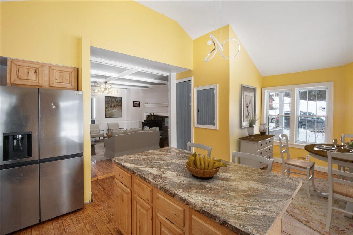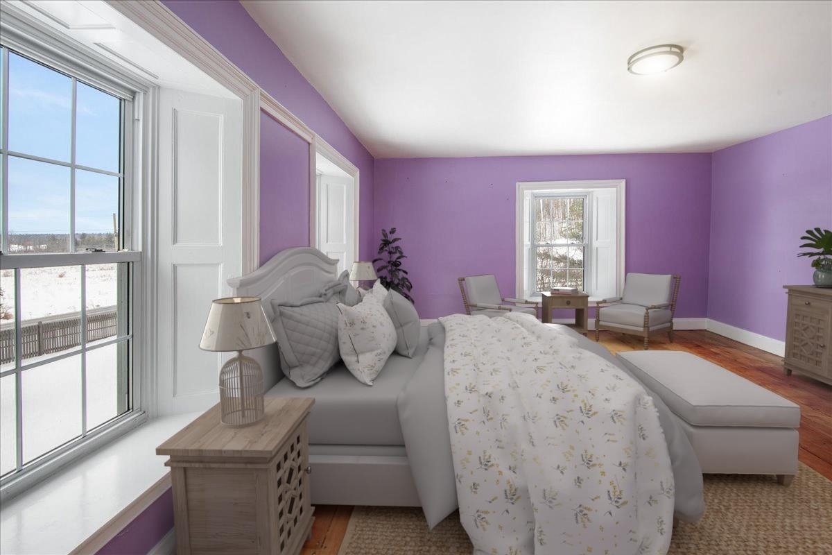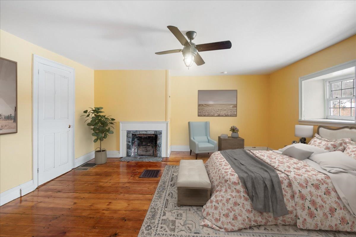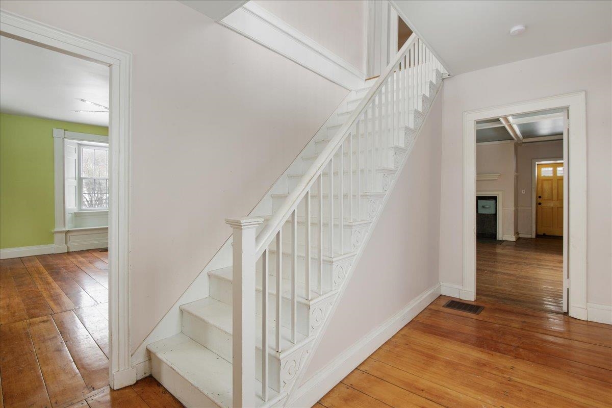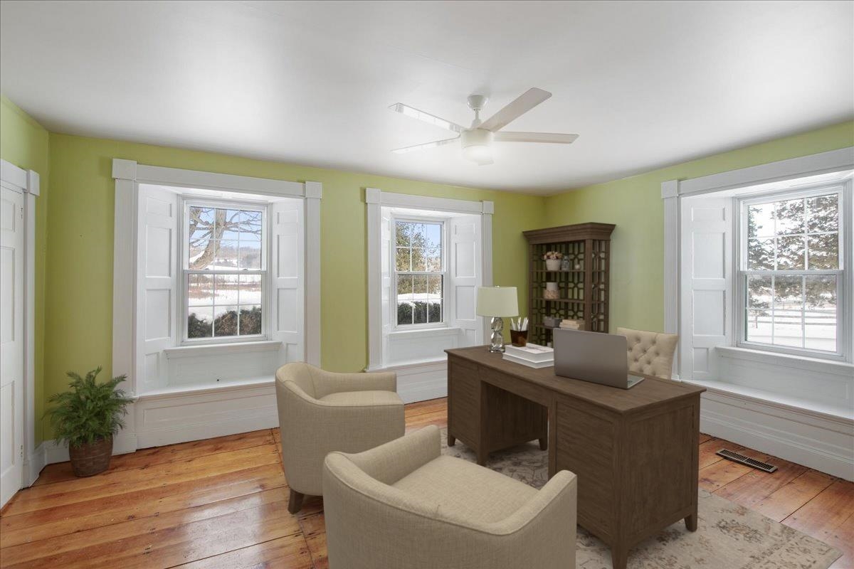 Nestled on 12. 60 acres, this stunning 1800s Colonial blends historic charm with modern upgrades. The striking stone exterior welcomes you into this thoughtfully maintained three-story home. Since 2022, updates include a new electrical panel, kitchen appliances, blown-in insulation, water heater, refinished wood floors, and a fully enclosed dog fence. Owned solar panels, installed in 2023, enhance energy efficiency. The first floor features a cozy living and dining area with a pellet stove, a chef’s kitchen with a spacious island, and soaring ceilings. A charming sunroom with a decorative fireplace offers a relaxing retreat, while a full bath completes the main level. The second floor hosts all bedrooms, including a primary suite with its own decorative fireplace, en suite bath, and walk-in closet, plus two additional bedrooms. A finished third-floor attic provides flexible space for a family room, playroom, or office. The property boasts two serene ponds, a three-car garage with overhead storage, and a massive barn with endless possibilities. With breathtaking land and thoughtful upgrades, this exceptional home is ready for its next chapter.