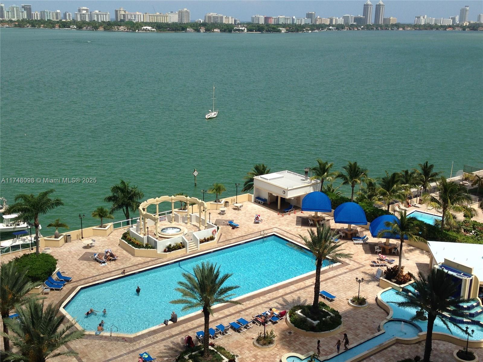 Enjoy magnificent Bay views with this amazing two-bedroom in North Bay Village. Expansive balcony, accessible from all living areas. Split floor plan for peace and tranquility. The kitchen has stainless steel appliances, and marble countertops. *2 assigned parking spots and washer and dryer inside the unit * The building is full of amenities, including 24 hr security, an Olympic-sized swimming pool, Jacuzzi, on-site laundry facilities, stores, gym, hair salon, restaurants, marina and more!