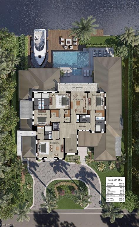 An extraordinary opportunity in the heart of Aqualane Shores, this newly completed furnished waterfront estate commands one of the area's most coveted settings. Gracious entry set on a rare, oversized lot with 100 feet of frontage at both the street and water, the property enjoys sweeping water views and direct, no bridge access to the Gulf. On a quiet street just steps from Naples pristine beaches and celebrated dining and boutiques of Third Street South, the location is nothing short of exceptional. Designed by renowned architect Jon Kukk and masterfully crafted by D. Garrett Construction. This 6, 457 square foot residence embodies refined coastal elegance with seamless indoor-outdoor living. A gracious entry opens to expansive interiors that flow effortlessly to a stunning waterside Lanai, where a rare cut -in boat slip creates an intimate connection to the water-transforming the outdoors into an extension of the living space. Eastern exposure bathes the lanai and patio area in mourning, midday light while providing shade in late afternoon and evening. Built-in electric storm shutters/screens for the lanai and patio area. Additional features include Rufino Cabinetry, HVAC Fresh Air Intake, Humidifier and De-Humidifier, Micro-tile Duct Board for Rigid Air Ducts, Whole House Make Up Air, Kitchen Hood Make Up Air. Wolf 48" Dual Fuel Range, Sub-Zero Refrigerator/Freezer, Sub-Zero 24" Wine Storage, Cove and Miele Dishwashers, Wolf Wall Oven, Wolf Coffee System, European White Oak flooring, Zip System Roof, Gulflok Standing Seam Metal Roof with PVDF Paint Finish. Coffee bar in owners suite with refrigerated drawer’s . Nanny's apartment with separate exterior entrance, kitchen area with full size refrigerator, microwave and sink. Boater enthusiasts will appreciate the exceptional waterfront amenities: Rare 17. 4ft x 30ft Cut in Boat Slip plus a New 52 foot long Dock with a fish cleaning station along a new Seawalll accommodating an additional vessel. Outdoor shower completes the coastal life style. Car collectors take note: the True three-stall, Air condition Garage with the ceiling height suitable for vehicle lifts , offering potential parking for up to six cars. Elevator services the garage and both living levels of the home. Home has a 10 foot 1 inch elevation. Certificate of Occupancy recently issued. Custom design, finish in this home represents a uniquely high-level design, construction, finish, interior design and furnishings.