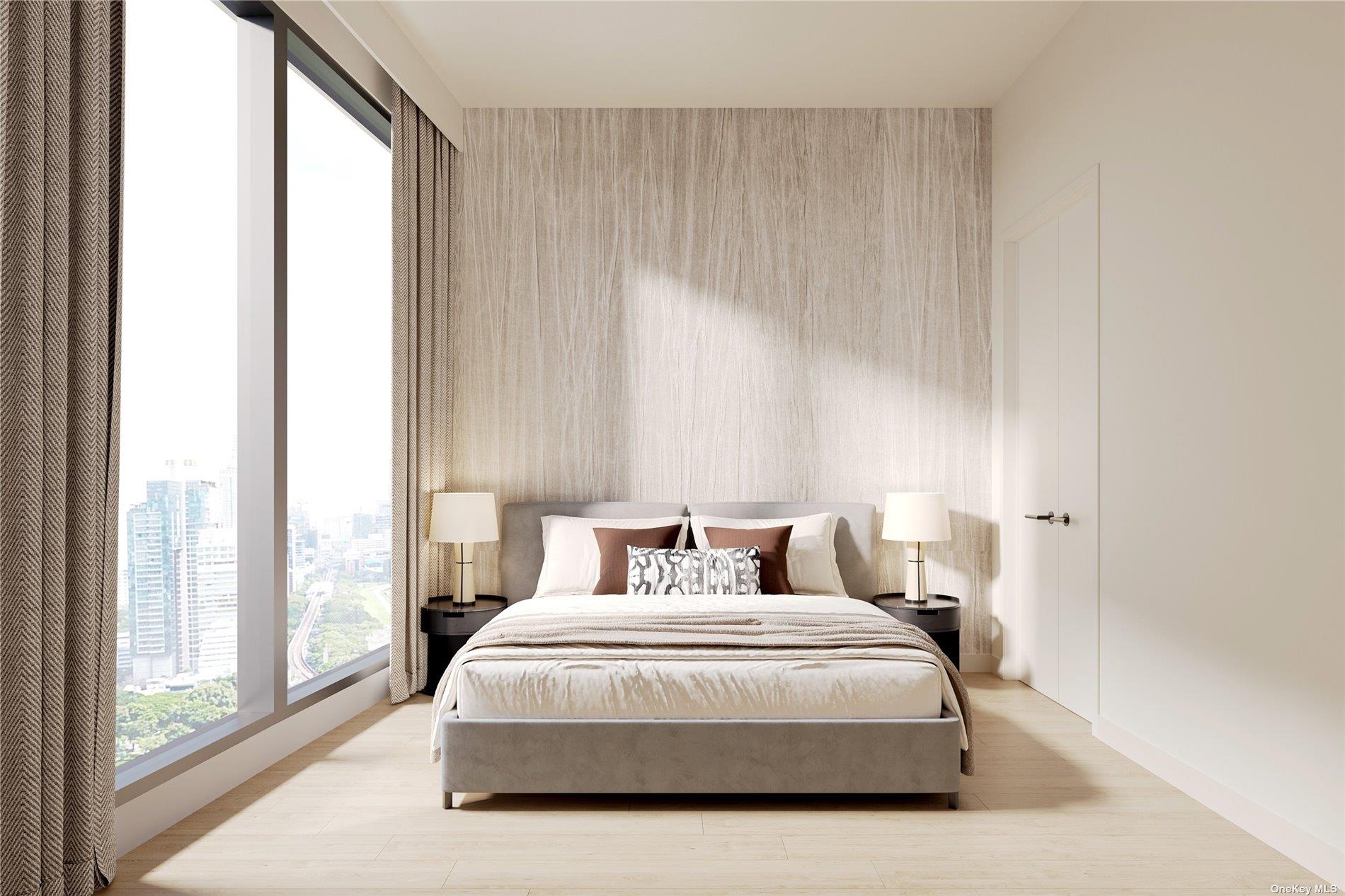 Residence PH E is a 2 bedroom 2 bath with 823 square feet interior space. This layout is square and highly functional. The U-shaped kitchen takes center stage, boasting sleek features and promising culinary excellence with its Calacatta Quartz countertops and exquisite Italian accents. The island kitchen takes center stage, featuring Calacatta Quartz countertops and exquisite Italian accents, promising culinary excellence. Facing south, this residence treats you to sweeping views of downtown Flushing, capturing the vibrant essence of the cityscape. Sunlight fills the space for the majority of the day, creating a comfortable sunny atmosphere and turning every moment into one of tranquility. Grand floor-to-ceiling windows provide sweeping panoramic views, while lofty high ceilings elevate the ambiance with an air of exclusivity and refinement. With one closet in each room, this residence ensures convenient storage solutions to keep belongings organized. The integration of the Latch Smart Lock System and Wi-Fi-enabled appliances enhances modern living with effortless convenience. The residence boasts soaring 10. 5-foot high ceilings, accentuating its spacious and luxurious ambiance. In the bathroom, Calacatta matte porcelain tiles, custom walnut wood veneer vanities topped with Quartz marble, and programmable radiant heat floors create a tranquil retreat. This residence embodies sophisticated urban living, where modern comforts and captivating views converge seamlessly. Northern Residences, the new landmark luxury tower on Northern Boulevard, is poised to redefine the skyline of downtown Flushing. This mixed-use 13-story tower integrates luxury living with contemporary convenience. With a 5-star Westin Hotel integration, the condominium offers elevated opulence on floors 10-13, accompanied by over 4, 000 square feet of high-end retail space on the lower floors, making it the only 5-star hotel at Queens. The building boasts a grand 16-foot high lobby with 24/7 concierge services, complemented by a world-class curtain wall facade ensuring architectural excellence. Advanced smart home features enhance resident comfort. Residents enjoy an executive apartment experience with bespoke hotel room service and housekeeping available, along with VIP privileges including special discount rates for the Westin Hotel. AMENITIES: Tranquil Indoor Pool, Sauna and Steam Room State-of-the-Art Fitness Center Elegant Resident Lounge Business Conference Rooms Skyline Rooftop Terrace & BBQ Area 10th-Floor Outdoor Terrace 24-Hour Concierge and Doorman Service Smart Package Room Amazon Locker Hub Convenient Bike Storage Eco-Friendly Parking with EV Stations 2nd Floor Exclusive Seasonal Bar Onsite Gourmet Restaurant Grand Banquet Hall Flushing, nestled in the heart of Queens, New York, stands as the fourth-largest central business district in the city, showcasing a unique blend of modern development and rich history. Renowned for its vibrant multicultural community, Flushing is a bustling urban hub. It's not only a residential and cultural landmark but also a key commercial center, with Main Street and Roosevelt Avenue forming its most dynamic intersection - the third busiest in New York City. This bustling crossroad reflects Flushing's energetic urban life and economic vitality, making it a pivotal area of growth and activity within the city. Welcome to Northern Residences, where architectural excellence harmonizes with luxury and convenience, offering an unparalleled living experience.