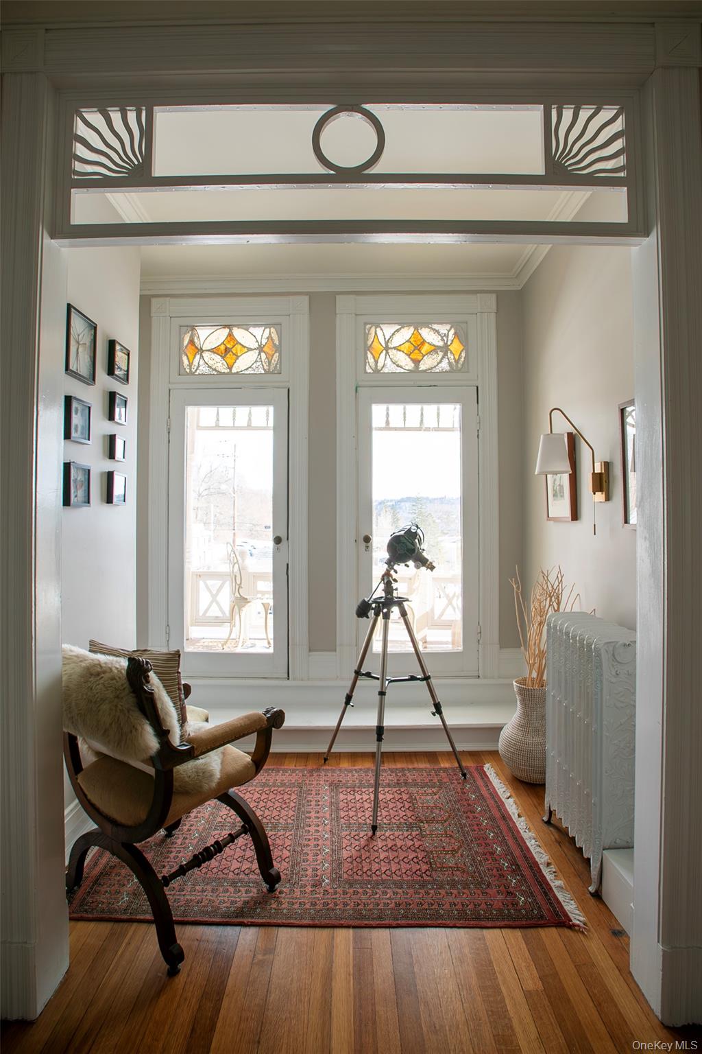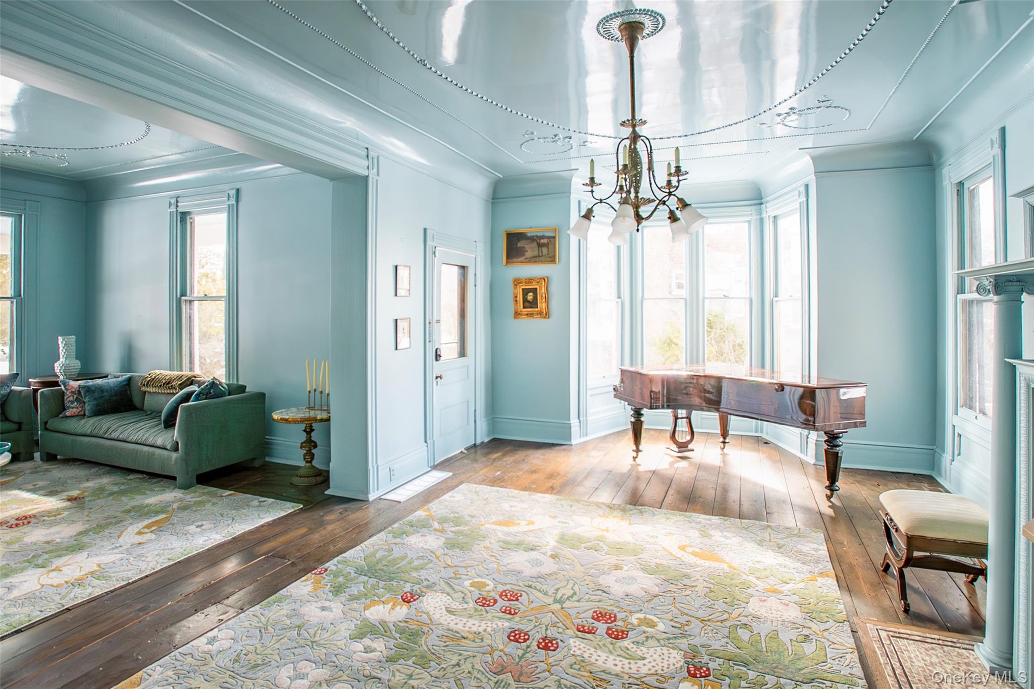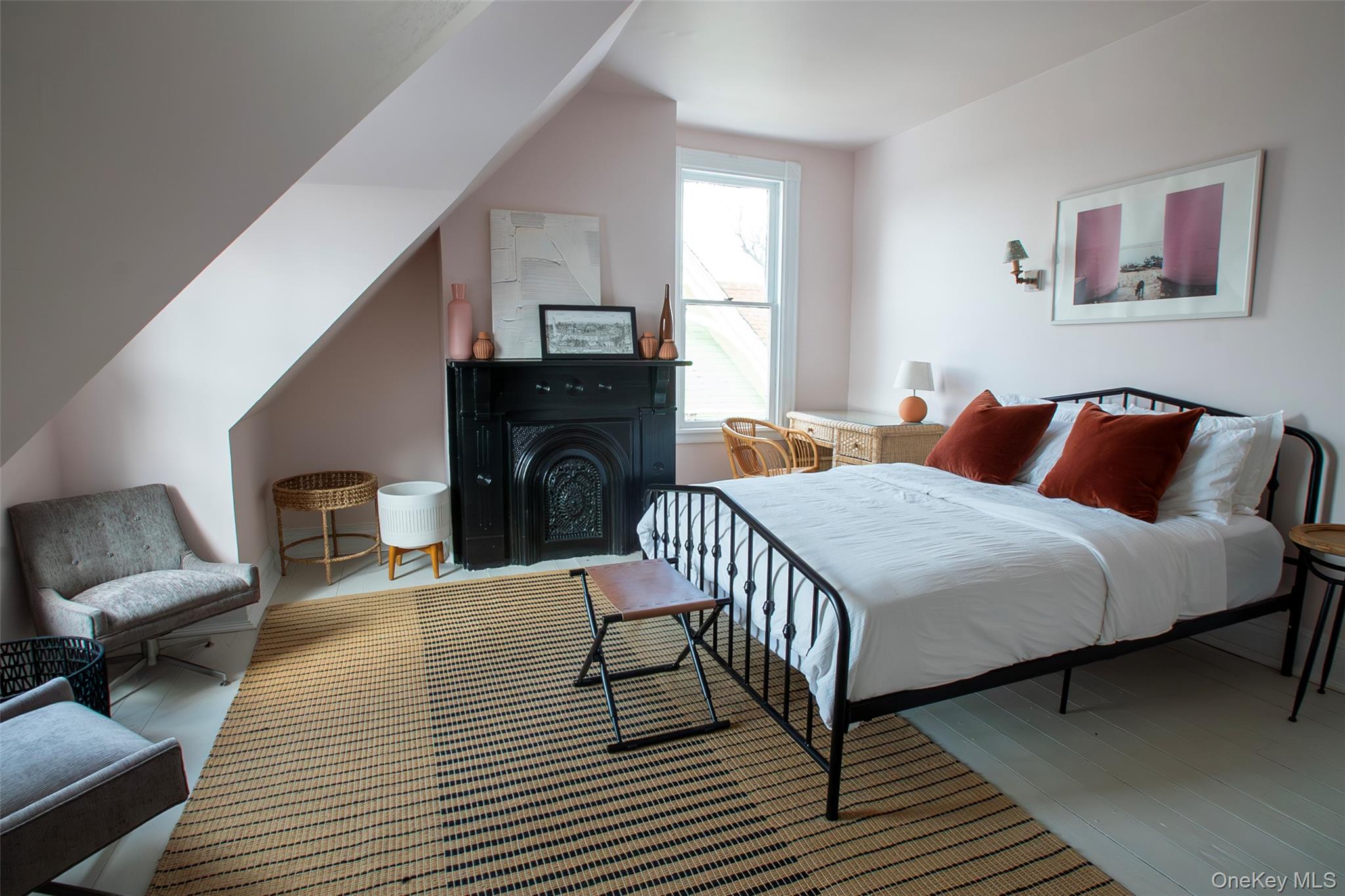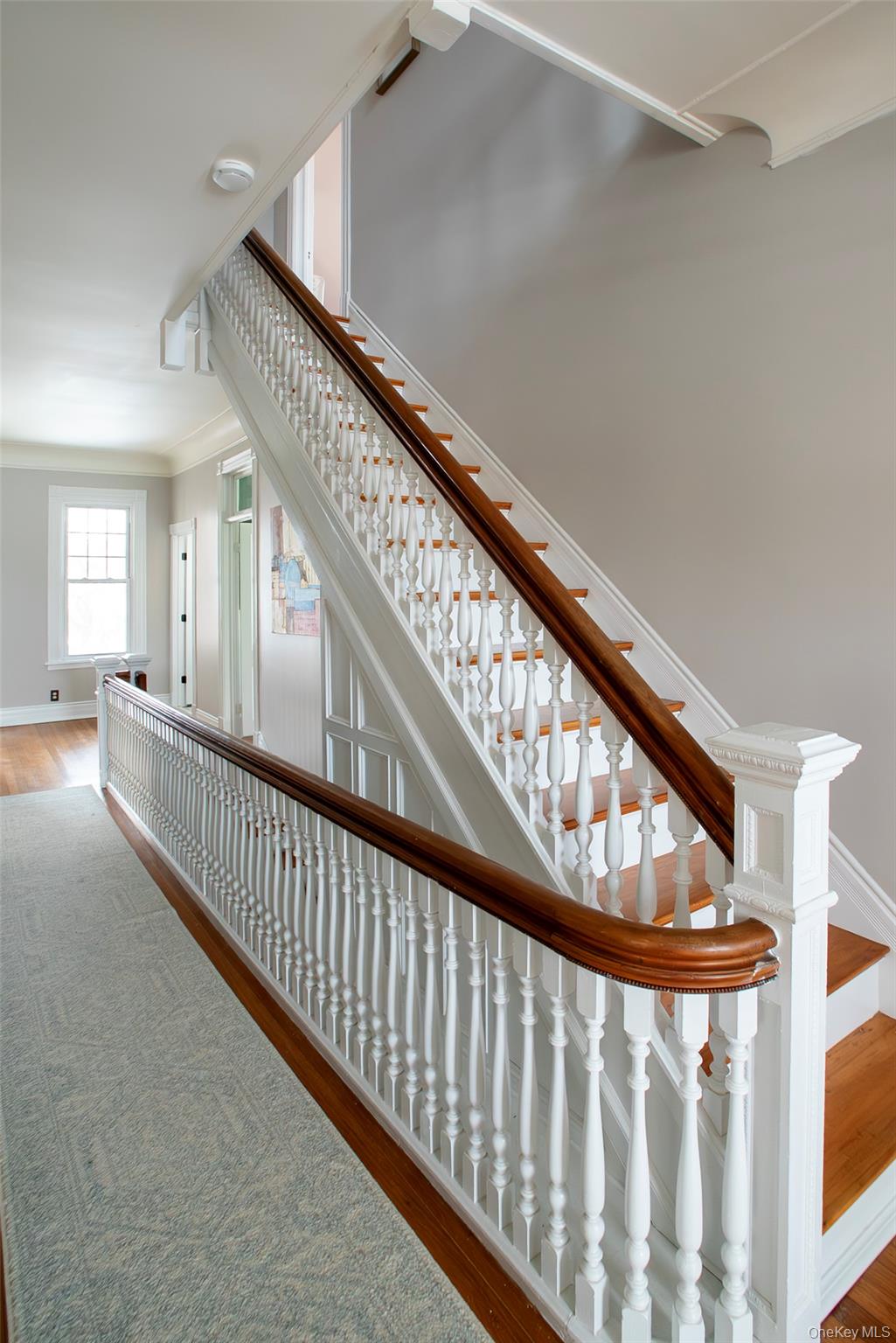 The Judge Emory Chase Residence — A Gilded Age Hudson Valley Masterpiece Presiding over the most distinguished block in Catskill, New York, with sweeping vistas of the Hudson River, the Rip Van Winkle Bridge, and Frederic Church’s storied Olana, stands the magnificent 1880s Victorian home of Judge Emory Chase — a stately symbol of the Hudson Valley’s golden era. Steeped in history and grace, this grand residence once welcomed a U. S. President, an astronaut, and members of New York’s judiciary. Within its storied double parlor, Judge Chase’s daughter celebrated her wedding reception — a reflection of the home’s long tradition of elegant gatherings and refined hospitality. Painstakingly restored, the residence offers nine bedrooms and three and a half baths, harmoniously blending modern comfort with irreplaceable 19th-century craftsmanship. Every detail speaks to an era of artistry rarely seen today — from hand-carved millwork and the soaring three-story staircase to intricate plaster crown moldings, marble fireplaces, wide-plank floors, and original pocket doors. The library, with its original built-in bookcases, remains a sanctuary for quiet reflection. Meanwhile, the newly designed gourmet kitchen — bathed in natural light through an entire wall of glass doors — opens seamlessly to a spacious deck and generous backyard, perfect for grand-scale entertaining or intimate summer evenings. A gracious rocking-chair front porch and second-floor balcony offer ideal vantage points for taking in the stunning views of the river’s ever-changing light, color and majestic sunrises and reflected river sunsets. Behind the main house, a two-story carriage house awaits re-imagination — perhaps as a guest residence, artist’s studio, garage- the possibilities are endless! A discreet service road entrance from Bridge Street leads directly to the yard, offering both convenience and privacy. While currently configured as a private home, the property’s scale and layout lend themselves effortlessly to transformation into an elegant inn or boutique bed-and-breakfast (subject to local approvals). The double parlors, formal dining room, expansive deck, and gardens provide ideal common spaces for hosting guests or special gatherings — a natural extension of the home’s long social history. Nestled between the Beattie-Powers House and a state-maintained trail to the river’s edge, the residence enjoys both privacy and proximity. Just a short stroll leads to Catskill’s revitalized Main Street, home to acclaimed restaurants, breweries, boutiques, the Foreland contemporary art complex, and a classic movie theater. With Hudson’s Amtrak station only 10 minutes away, Windham and Hunter ski resorts 25 minutes, Bard College 25 minutes, and New York City only 2 hours, this historic estate stands at the intersection of cultural vitality and timeless beauty — a rare Hudson Valley offering for those who seek a true Hudson Valley masterpiece steeped in heritage, elegance, timeless craftsmanship coupled with modern conveniences.