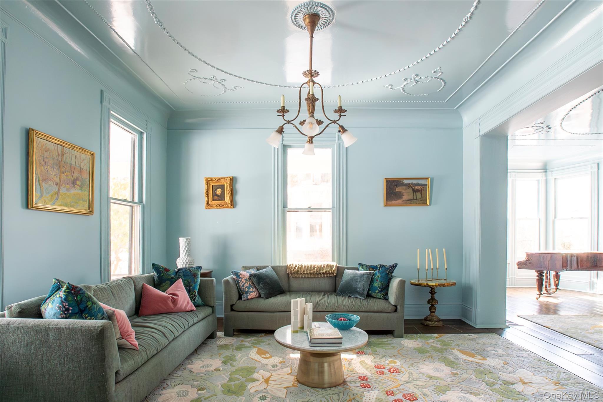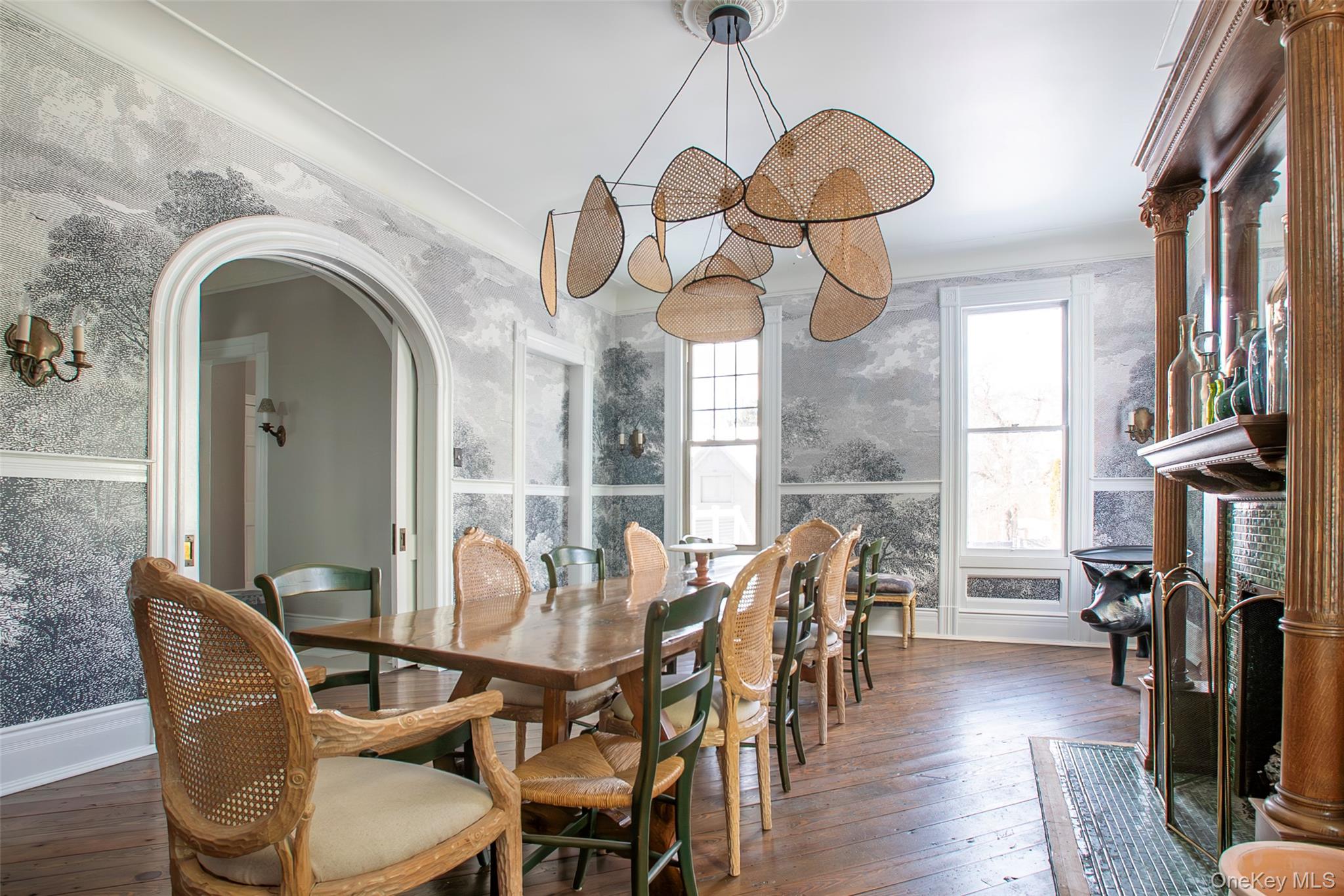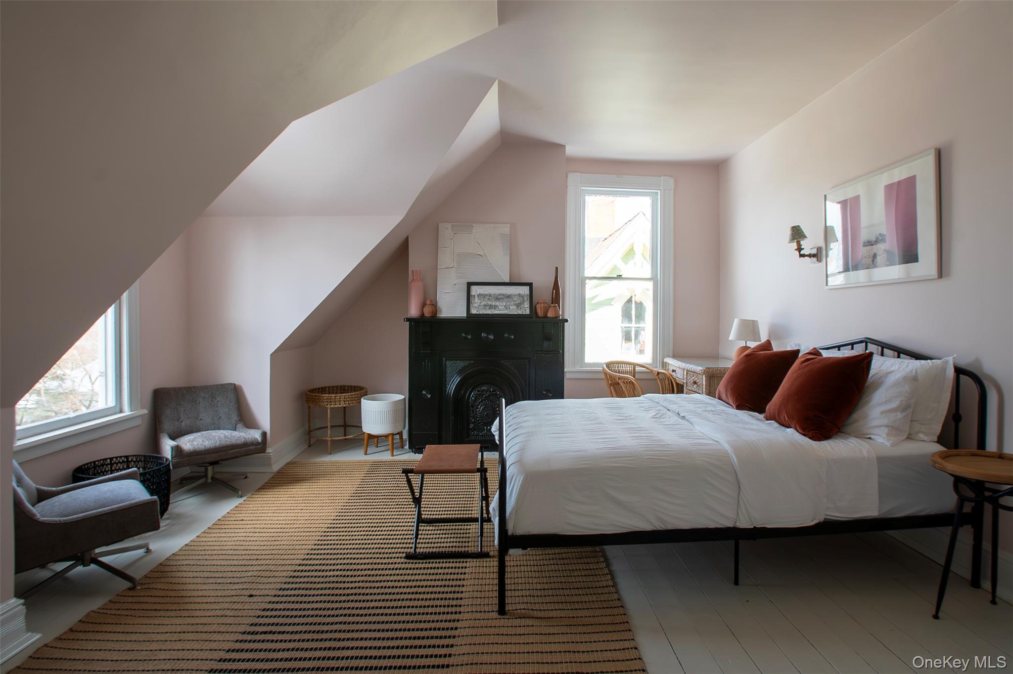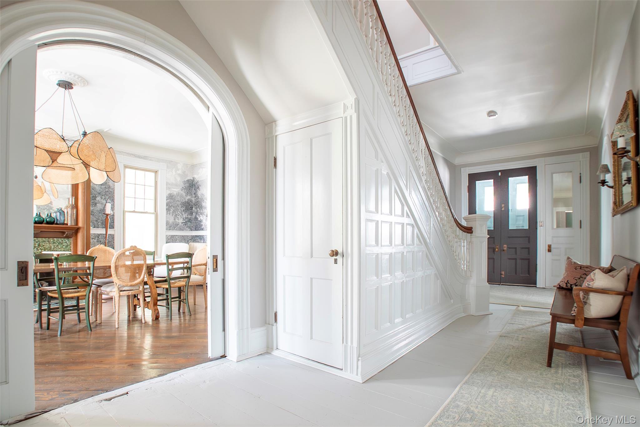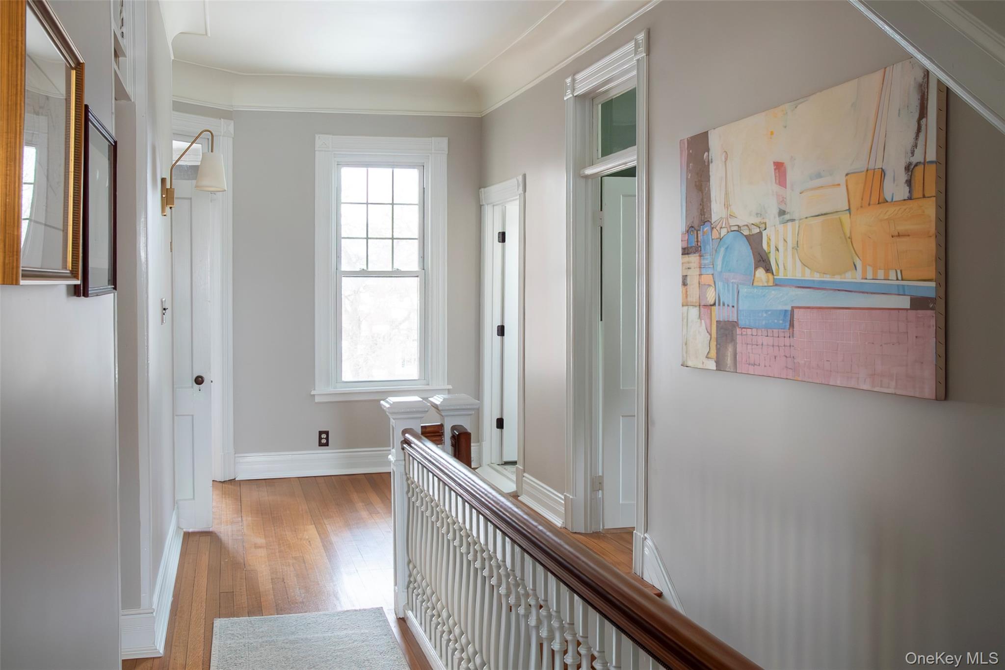 The Judge Emory Chase Residence — A Gilded Age Hudson Valley Masterpiece Presiding over the most distinguished block in Catskill, New York, with sweeping vistas of the Hudson River, the Rip Van Winkle Bridge, and Frederic Church’s storied Olana, stands the magnificent 1880s Victorian home of Judge Emory Chase — a stately symbol of the Hudson Valley’s golden era. Steeped in history and grace, this grand residence once welcomed a U. S. President, an astronaut, and members of New York’s judiciary. Within its storied double parlor, Judge Chase’s daughter celebrated her wedding reception — a reflection of the home’s long tradition of elegant gatherings and refined hospitality. Painstakingly restored, the residence offers nine bedrooms and three and a half baths, harmoniously blending modern comfort with irreplaceable 19th-century craftsmanship. Every detail speaks to an era of artistry rarely seen today — from hand-carved millwork and the soaring three-story staircase to intricate plaster crown moldings, marble fireplaces, wide-plank floors, and original pocket doors. The library, with its original built-in bookcases, remains a sanctuary for quiet reflection. Meanwhile, the newly designed gourmet kitchen — bathed in natural light through an entire wall of glass doors — opens seamlessly to a spacious deck and generous backyard, perfect for grand-scale entertaining or intimate summer evenings. A gracious rocking-chair front porch and second-floor balcony offer ideal vantage points for taking in the stunning views of the river’s ever-changing light, color and majestic sunrises and reflected river sunsets. Behind the main house, a two-story carriage house awaits re-imagination — perhaps as a guest residence, artist’s studio, garage- the possibilities are endless! A discreet service road entrance from Bridge Street leads directly to the yard, offering both convenience and privacy. While currently configured as a private home, the property’s scale and layout lend themselves effortlessly to transformation into an elegant inn or boutique bed-and-breakfast (subject to local approvals). The double parlors, formal dining room, expansive deck, and gardens provide ideal common spaces for hosting guests or special gatherings — a natural extension of the home’s long social history. Nestled between the Beattie-Powers House and a state-maintained trail to the river’s edge, the residence enjoys both privacy and proximity. Just a short stroll leads to Catskill’s revitalized Main Street, home to acclaimed restaurants, breweries, boutiques, the Foreland contemporary art complex, and a classic movie theater. With Hudson’s Amtrak station only 10 minutes away, Windham and Hunter ski resorts 25 minutes, Bard College 25 minutes, and New York City only 2 hours, this historic estate stands at the intersection of cultural vitality and timeless beauty — a rare Hudson Valley offering for those who seek a true Hudson Valley masterpiece steeped in heritage, elegance, timeless craftsmanship coupled with modern conveniences.
