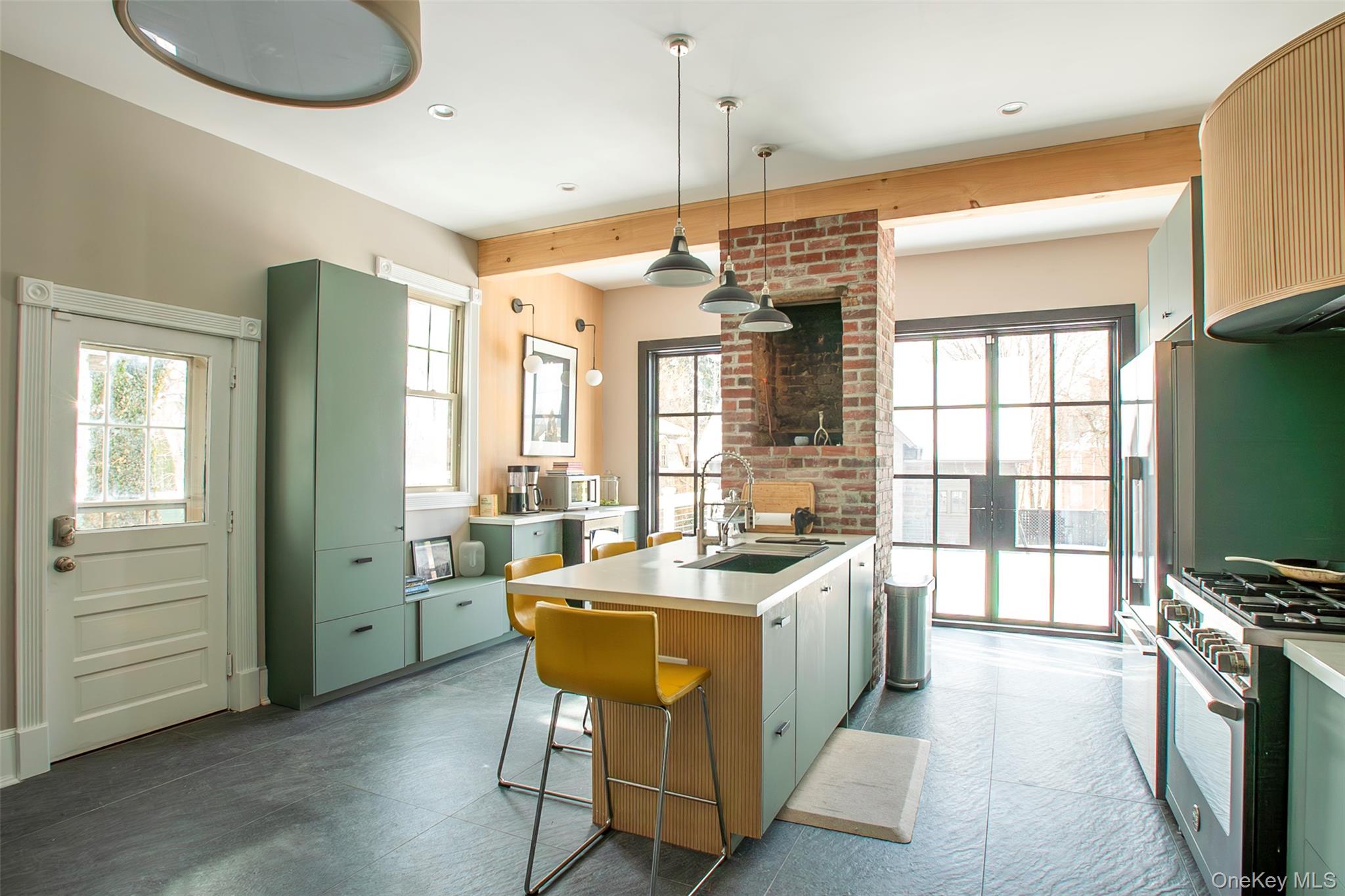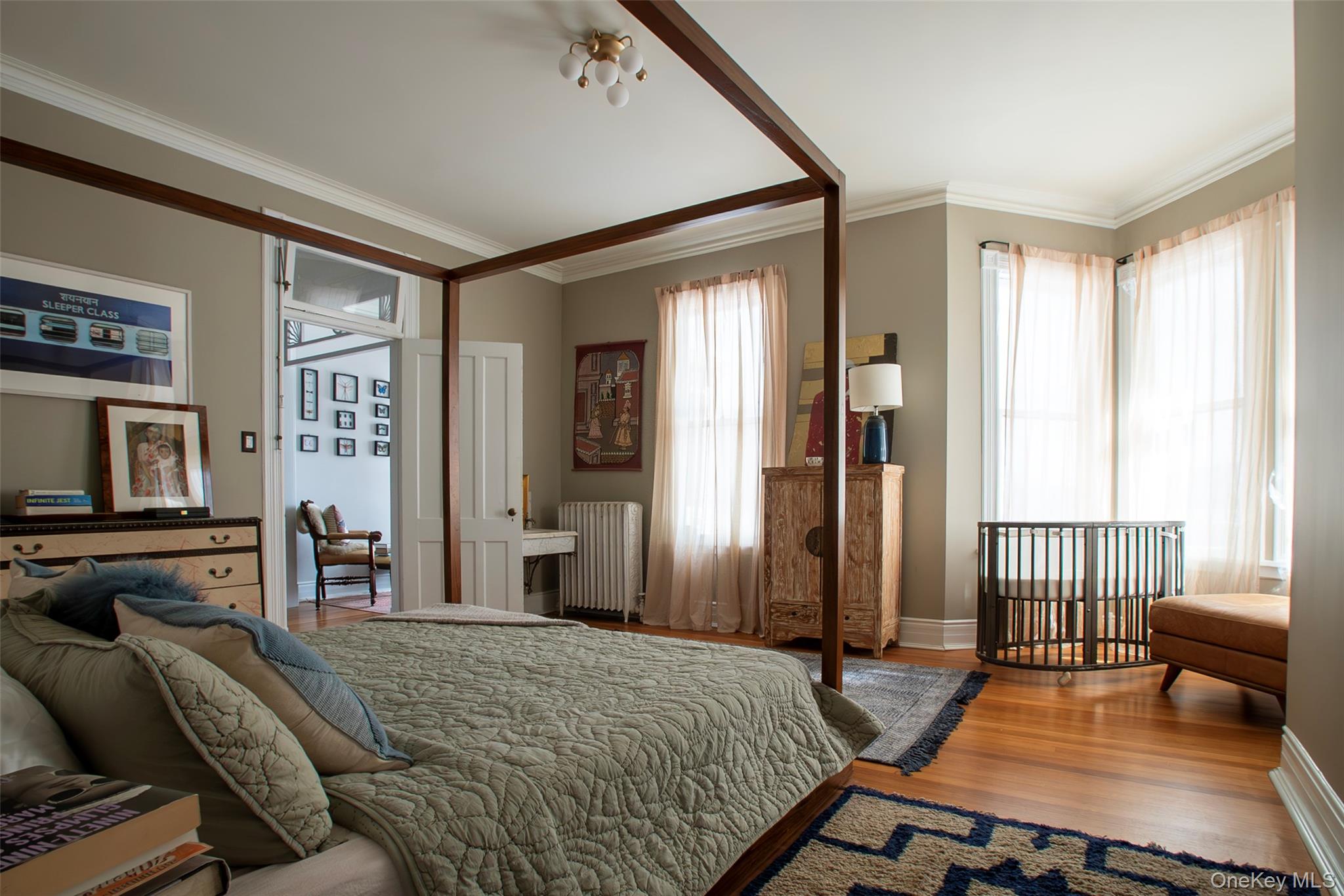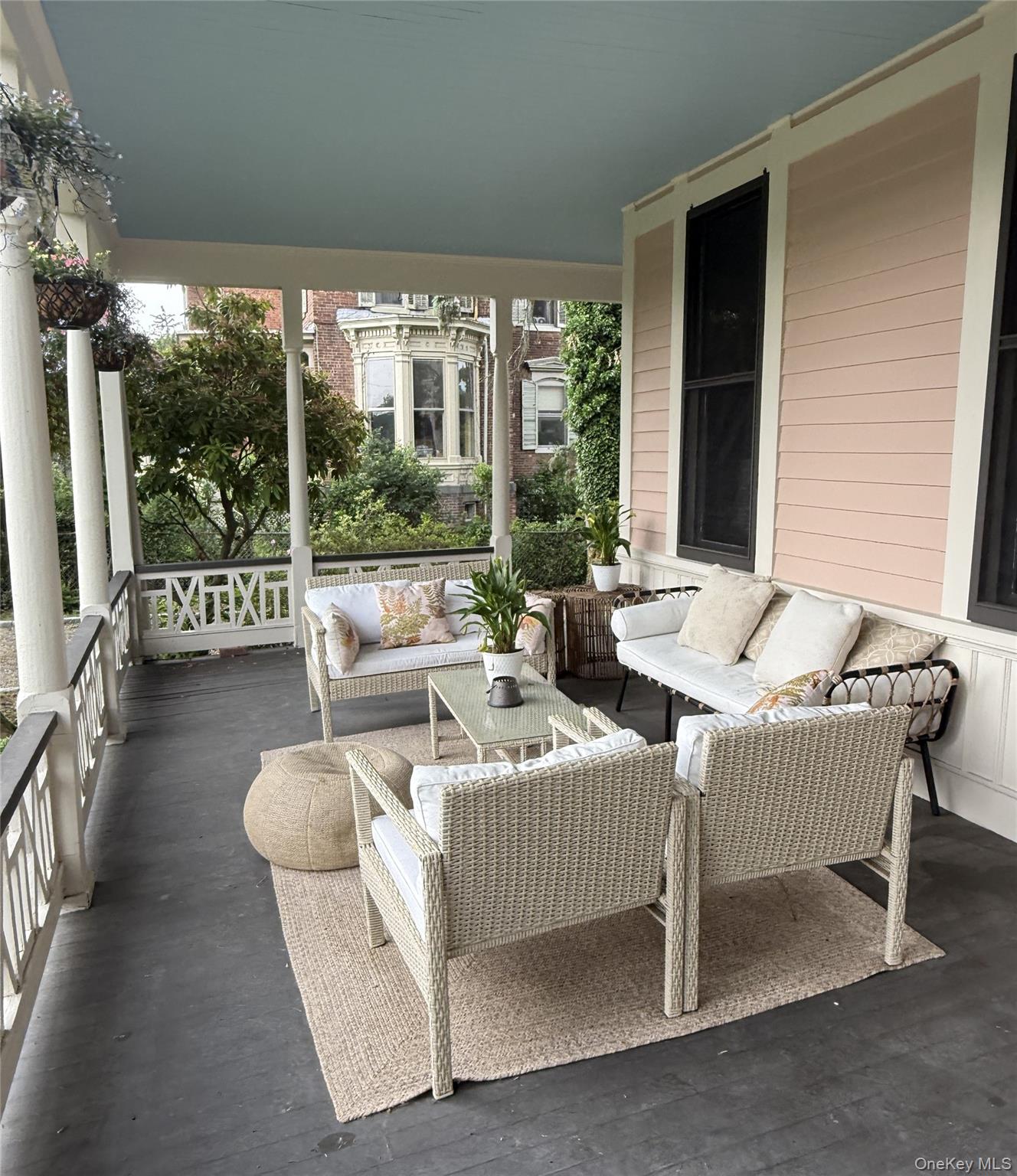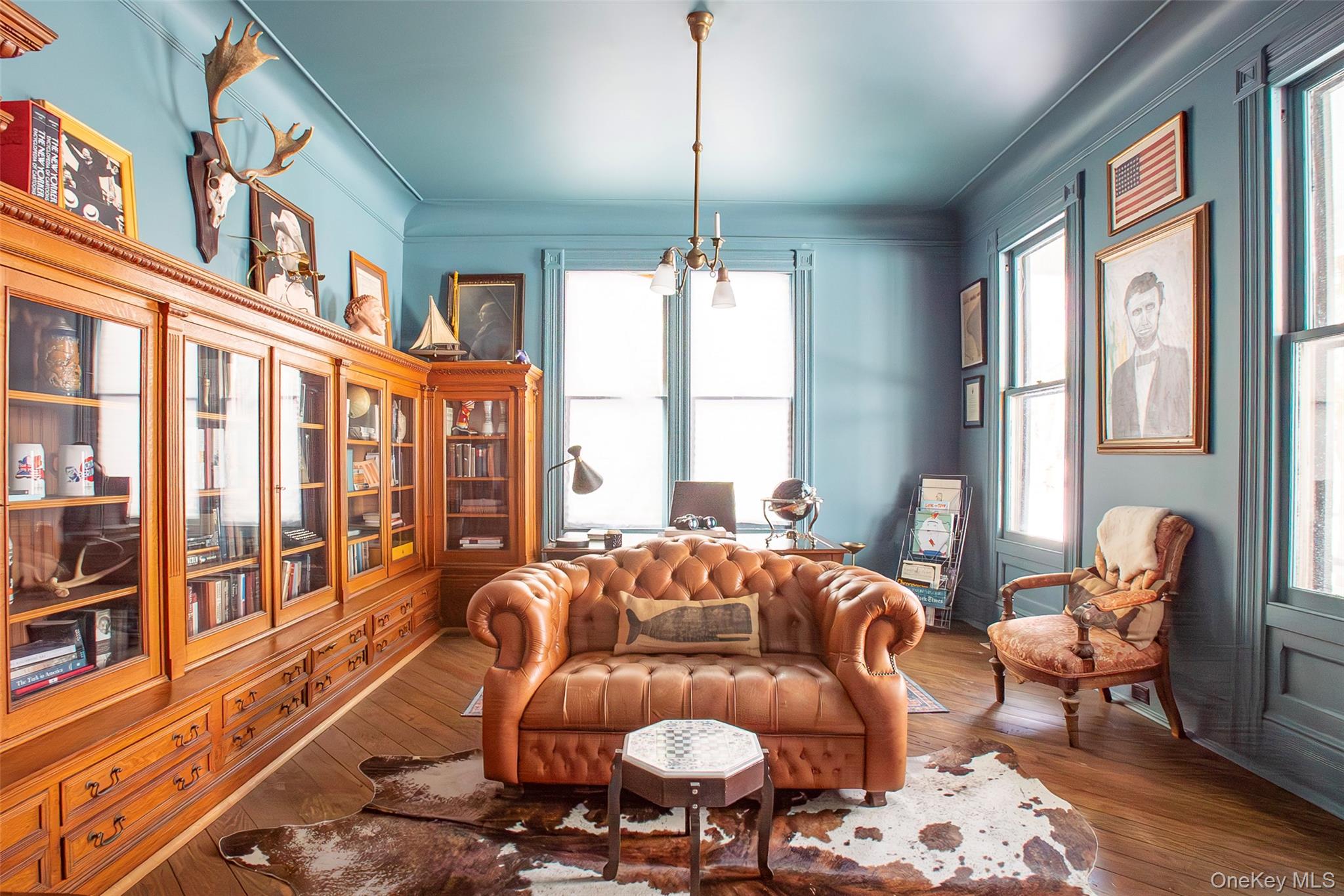 The Judge Emory Chase Residence — A Gilded Age Hudson Valley Masterpiece Presiding over the most distinguished block in Catskill, New York, with sweeping vistas of the Hudson River, the Rip Van Winkle Bridge, and Frederic Church’s storied Olana, stands the magnificent 1880s Victorian home of Judge Emory Chase — a stately symbol of the Hudson Valley’s golden era. Steeped in history and grace, this grand residence once welcomed a U. S. President, an astronaut, and members of New York’s judiciary. Within its storied double parlor, Judge Chase’s daughter celebrated her wedding reception — a reflection of the home’s long tradition of elegant gatherings and refined hospitality. Painstakingly restored, the residence offers nine bedrooms and three and a half baths, harmoniously blending modern comfort with irreplaceable 19th-century craftsmanship. Every detail speaks to an era of artistry rarely seen today — from hand-carved millwork and the soaring three-story staircase to intricate plaster crown moldings, marble fireplaces, wide-plank floors, and original pocket doors. The library, with its original built-in bookcases, remains a sanctuary for quiet reflection. Meanwhile, the newly designed gourmet kitchen — bathed in natural light through an entire wall of glass doors — opens seamlessly to a spacious deck and generous backyard, perfect for grand-scale entertaining or intimate summer evenings. A gracious rocking-chair front porch and second-floor balcony offer ideal vantage points for taking in the stunning views of the river’s ever-changing light, color and majestic sunrises and reflected river sunsets. Behind the main house, a two-story carriage house awaits re-imagination — perhaps as a guest residence, artist’s studio, garage- the possibilities are endless! A discreet service road entrance from Bridge Street leads directly to the yard, offering both convenience and privacy. While currently configured as a private home, the property’s scale and layout lend themselves effortlessly to transformation into an elegant inn or boutique bed-and-breakfast (subject to local approvals). The double parlors, formal dining room, expansive deck, and gardens provide ideal common spaces for hosting guests or special gatherings — a natural extension of the home’s long social history. Nestled between the Beattie-Powers House and a state-maintained trail to the river’s edge, the residence enjoys both privacy and proximity. Just a short stroll leads to Catskill’s revitalized Main Street, home to acclaimed restaurants, breweries, boutiques, the Foreland contemporary art complex, and a classic movie theater. With Hudson’s Amtrak station only 10 minutes away, Windham and Hunter ski resorts 25 minutes, Bard College 25 minutes, and New York City only 2 hours, this historic estate stands at the intersection of cultural vitality and timeless beauty — a rare Hudson Valley offering for those who seek a true Hudson Valley masterpiece steeped in heritage, elegance, timeless craftsmanship coupled with modern conveniences.