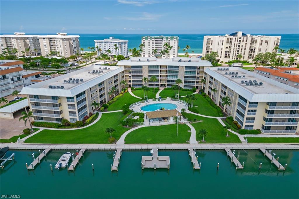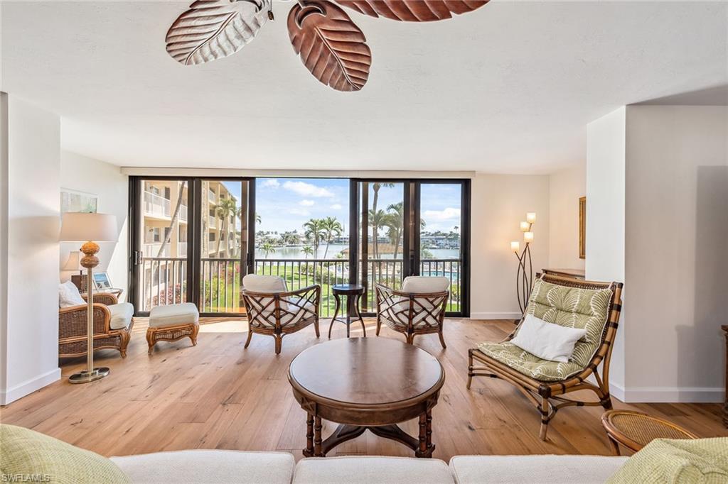 Welcome to this second-floor, three-bedroom, two-bath condominium in Harbour Cove with views of Moorings Bay and partial views of the Gulf. The unit features hurricane glass sliders, GE Cafe stainless steel appliances, granite countertops, tile and engineered hardwood flooring throughout. Enjoy gorgeous bay views from your expanded living room and enclosed lanai or from your western-exposed, open-air balcony from the main suite. Conveniently between two beach access points, this peaceful getaway is ideal for spending the day basking in sunshine and ending the day watching the colorful sunset. For boating enthusiasts, boat slips with and without lifts are available for lease through the association and for those looking for potential income, owners can lease their unit three times per year with a minimum of 60 days. Residents can enjoy the sparkling bayfront pool with an outdoor kitchen and grilling area, chickee hut and a communal fishing pier with kayak launch. The unit also includes a covered parking space, in-unit laundry room and a private storage room adjacent to the kitchen door. Only minutes from Naples renowned Fifth Avenue and Venetian Village, you’ll find world-class dining, shopping and entertainment at your doorstep.