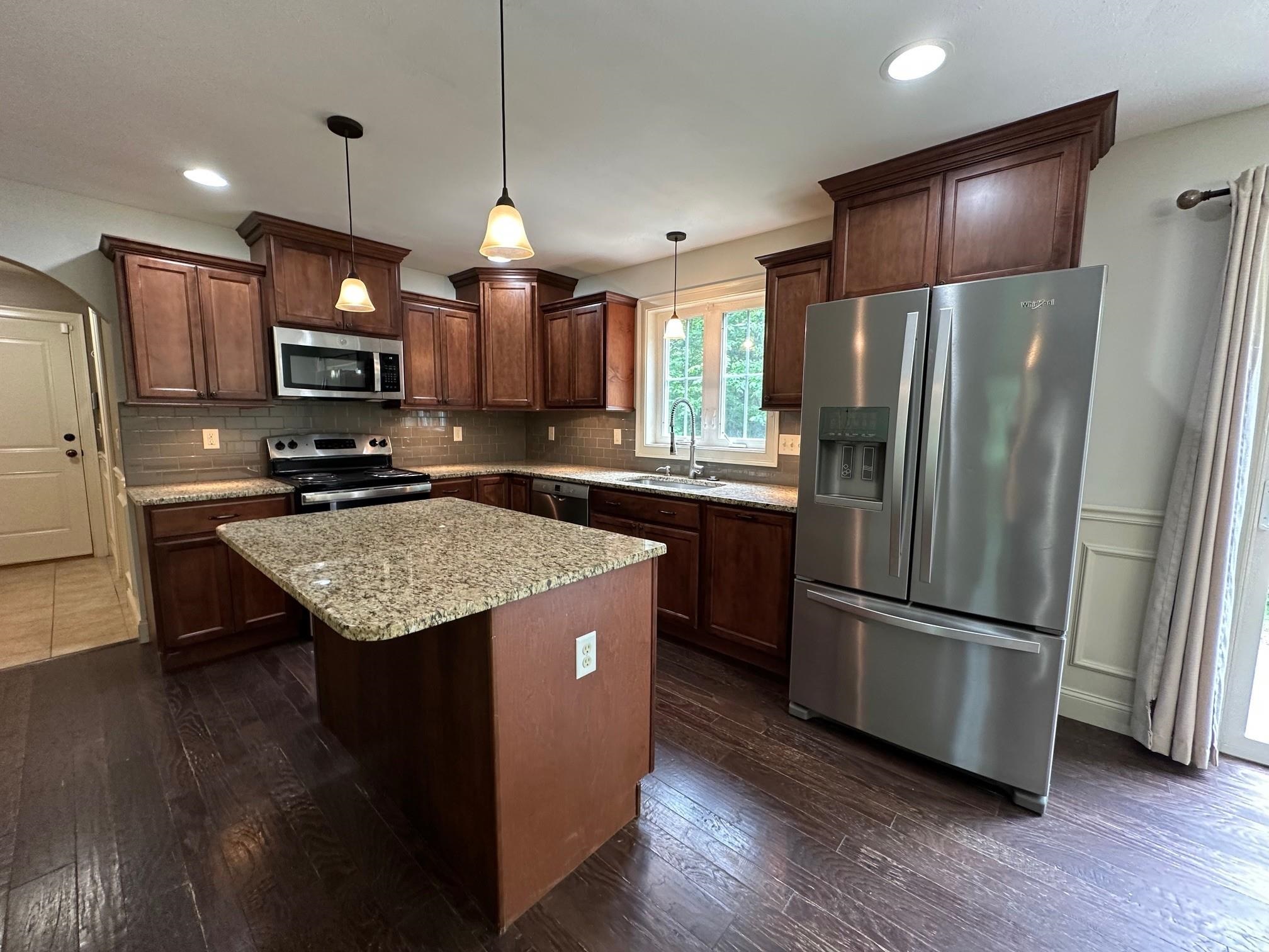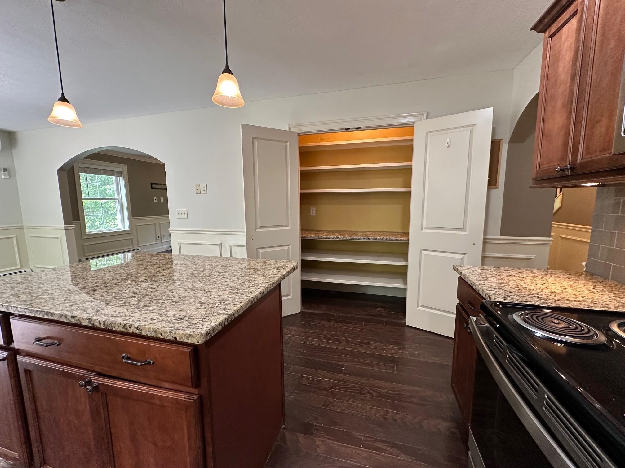 Flexibility is what you get in this expanded colonial with four bedrooms, four bath and bonus rooms. Home sits well off the road on 1. 45+/-acres with privacy and modern country living. The front farmers porch leads you into a formal foyer with paneled wainscoting, corner bench, and arched entry into the hall or the oversized living room/dining room. The dark oak floors warm the space and the oversized windows give a bright and open feel. Eat-in kitchen offers deep mahogany-finished cabinets, stone countertops, coffee bar/pantry and a large slider to stamped concrete patio in the back — perfect spot for private dinners. Two bedrooms upstairs with a full bath, primary bedroom with three-quarter bath, tray ceiling with canned lights and a great walk-in closet. Two spacious bonus rooms to be used how you want complete the upstairs. The lower level has a full in-law apartment — perfect for parents or older children. Standby generator, central air, security system and so much more.