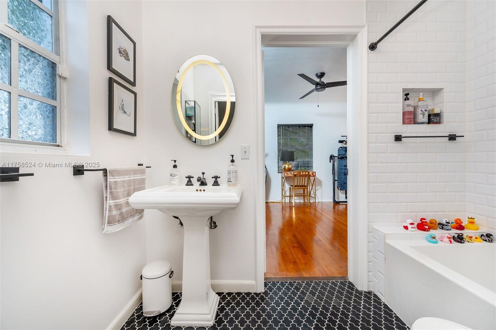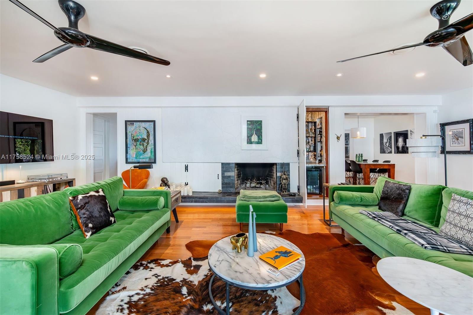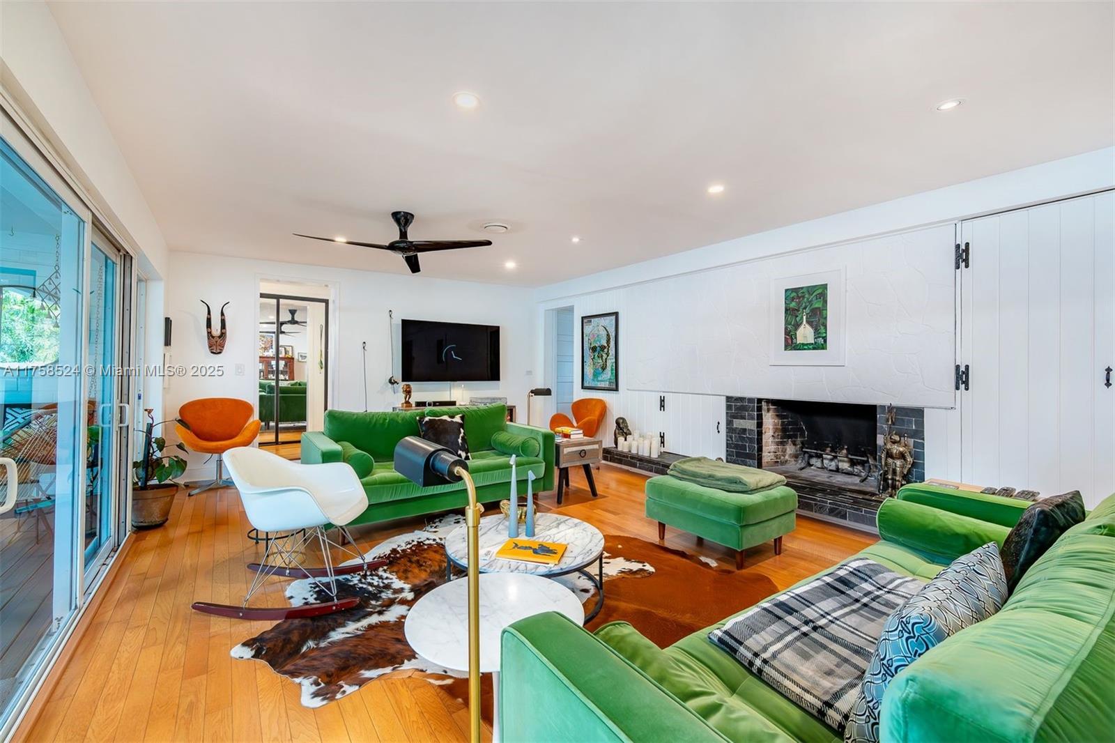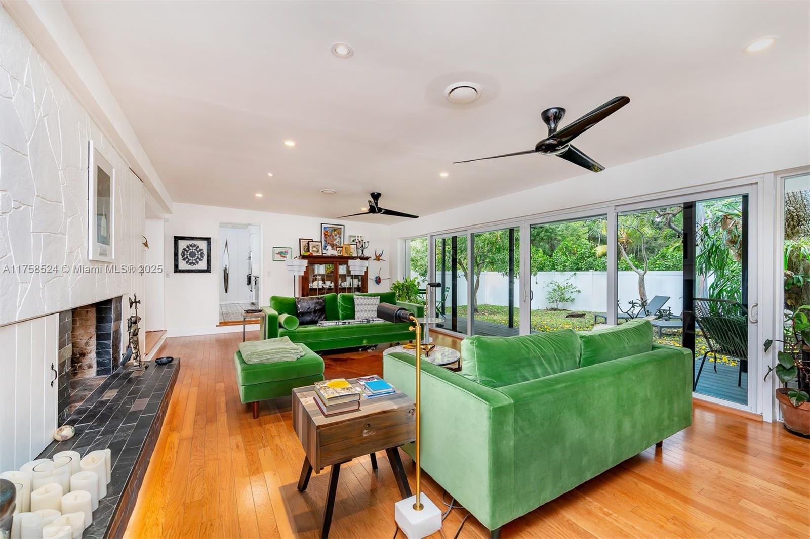 Miami Springs Charm at its Finest!! This Morningside Drive Home has been beautifully maintained by its three owners since 1937. Featuring 3 spacious bedrooms, two bathrooms and a 1-car garage/laundry room, this home is ready to move in and enjoy. Original hardwood floors, 2 wood burning fireplaces, spacious family room, beautiful vaulted tongue and groove ceilings, built ins and more. The primary bedroom is very spacious and features, two walk in closets, sitting area and double sliding doors with tranquil views of the garden and covered patio. The primary bath is complete with double sinks, shower and features imported Moroccan Zellige tile. The split bedroom plan features two additional bedrooms with jack and jill bathroom recently updated with all the modern finishes.